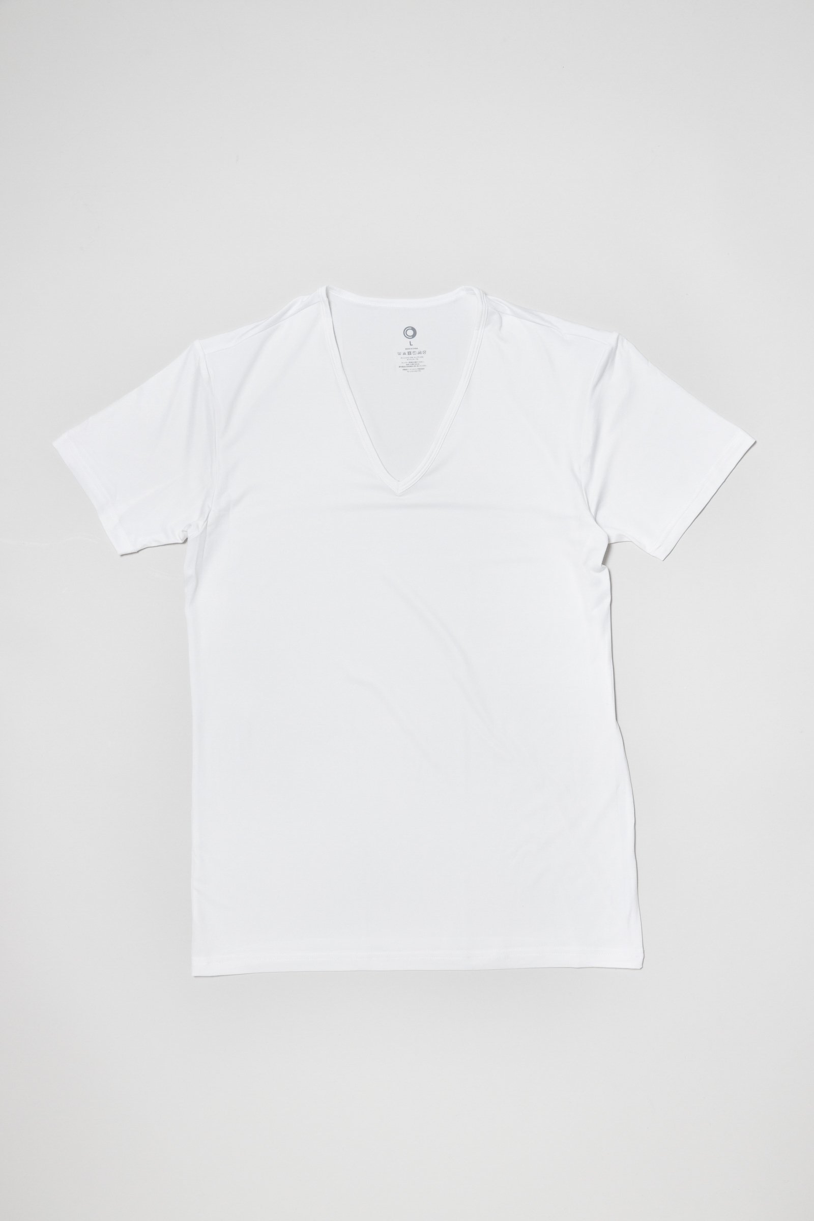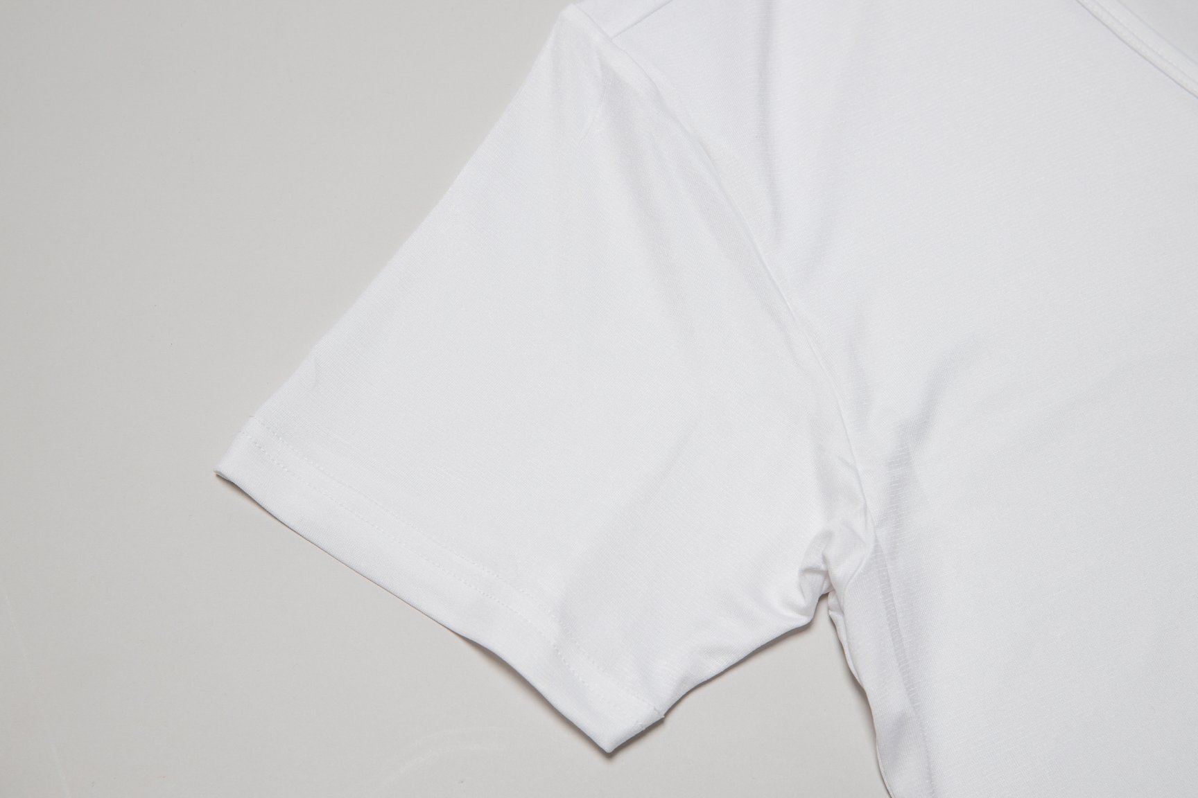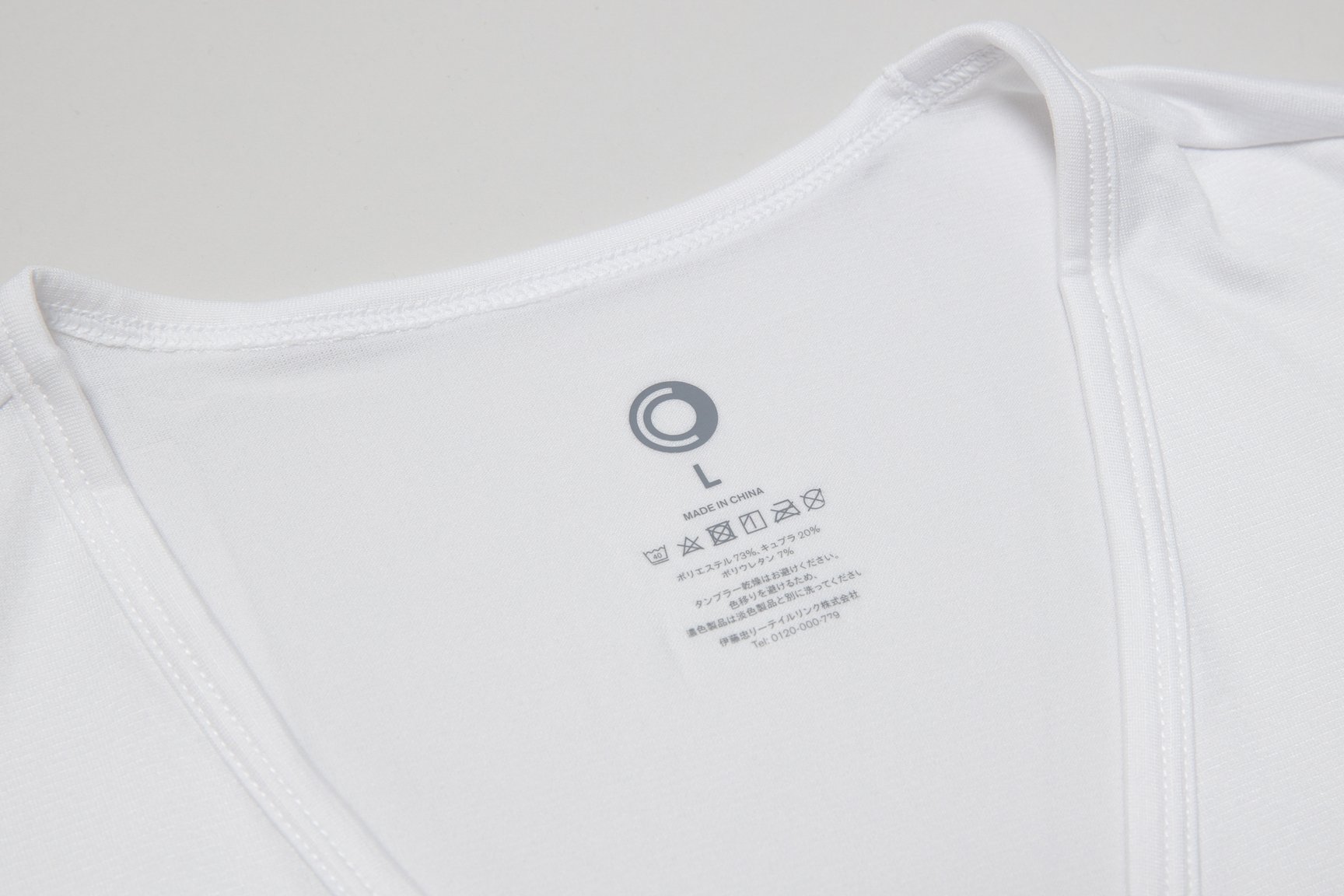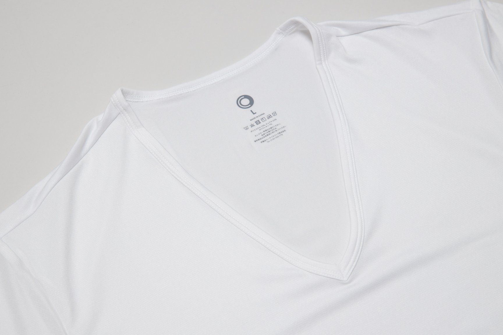 インナーTシャツはVネックとクルーネックを用意しています。生地には旭化成の機能系「Paircool」と、伊藤忠商事の再生ポリエステル糸「Renu」を使用。蒸れにくく速乾性に優れた素材で、抗菌防臭加工が施されています。
