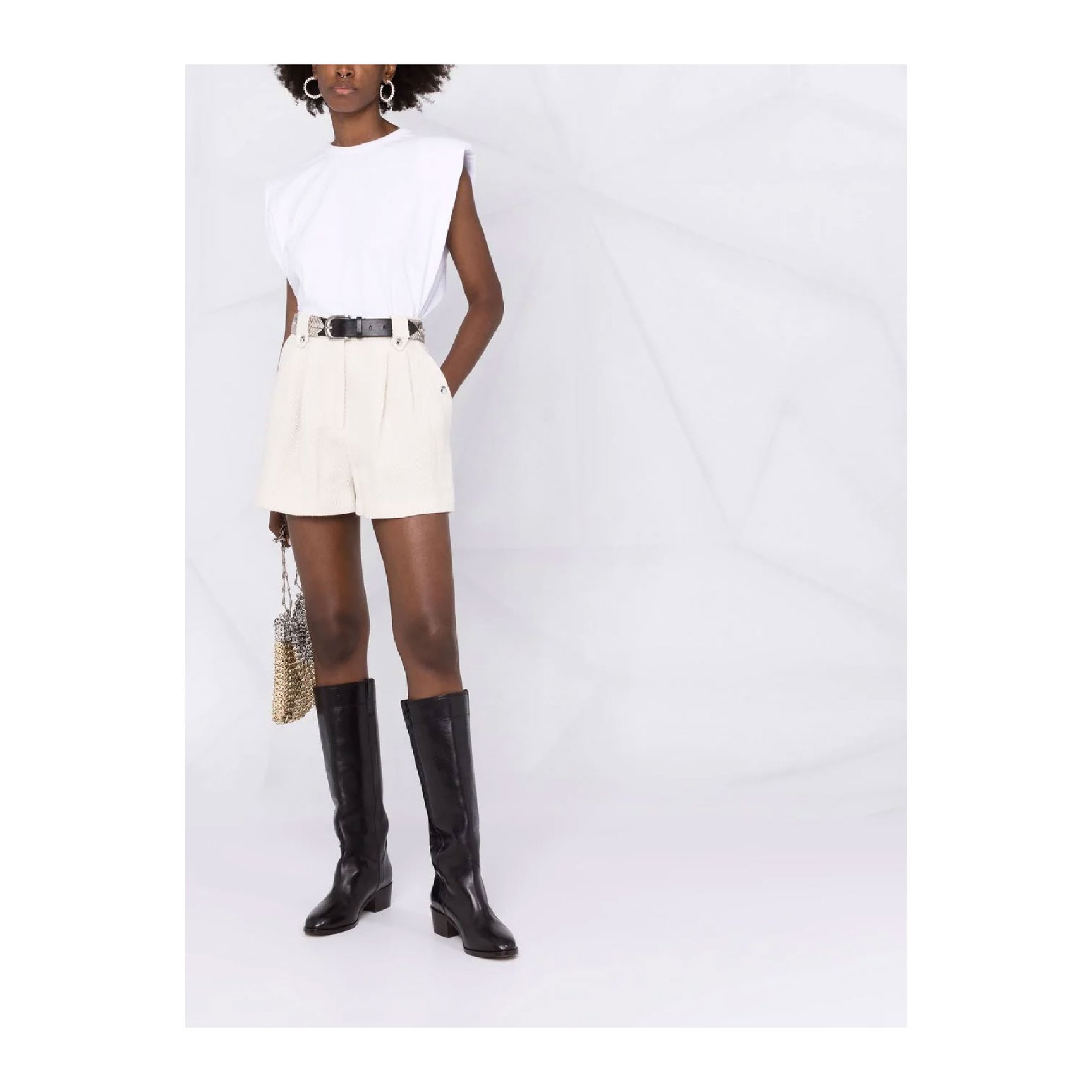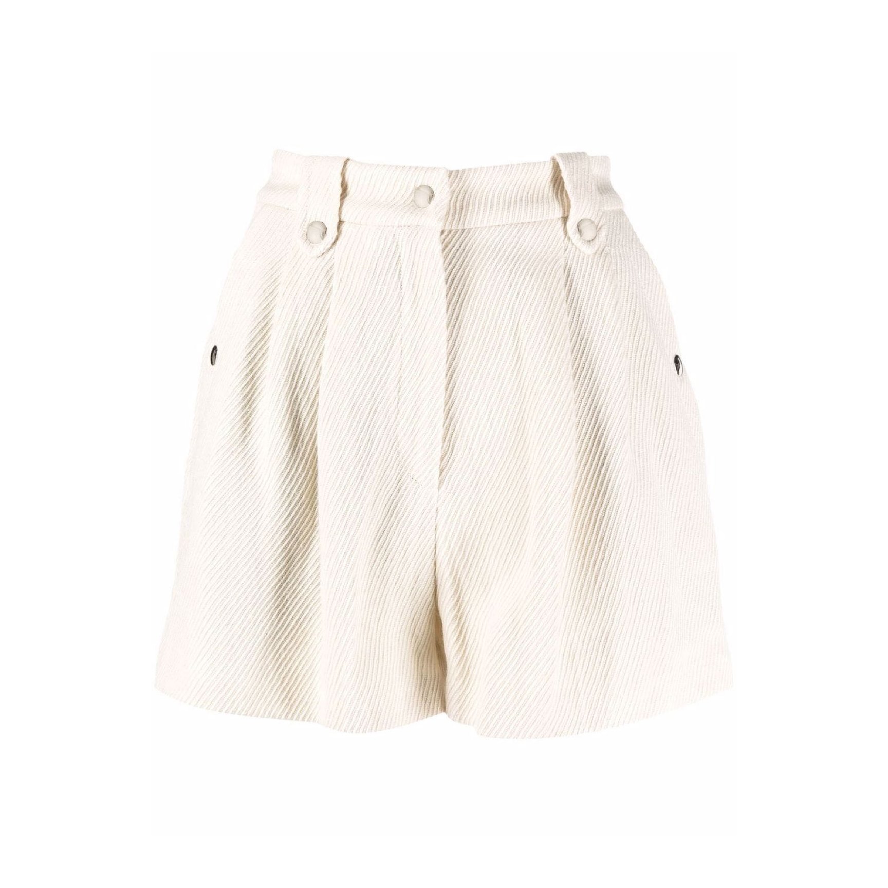 秋先におすすめ「イロ(IRO)」のショートパンツ。ゆるっと着れるシルエットが特徴で、オフホワイトの色味がどんなトップスとも相性抜群です。似たようなカラーのコーデュロイシャツも多いので、あえてセットアップ風に合わせるのもおすすめ。
