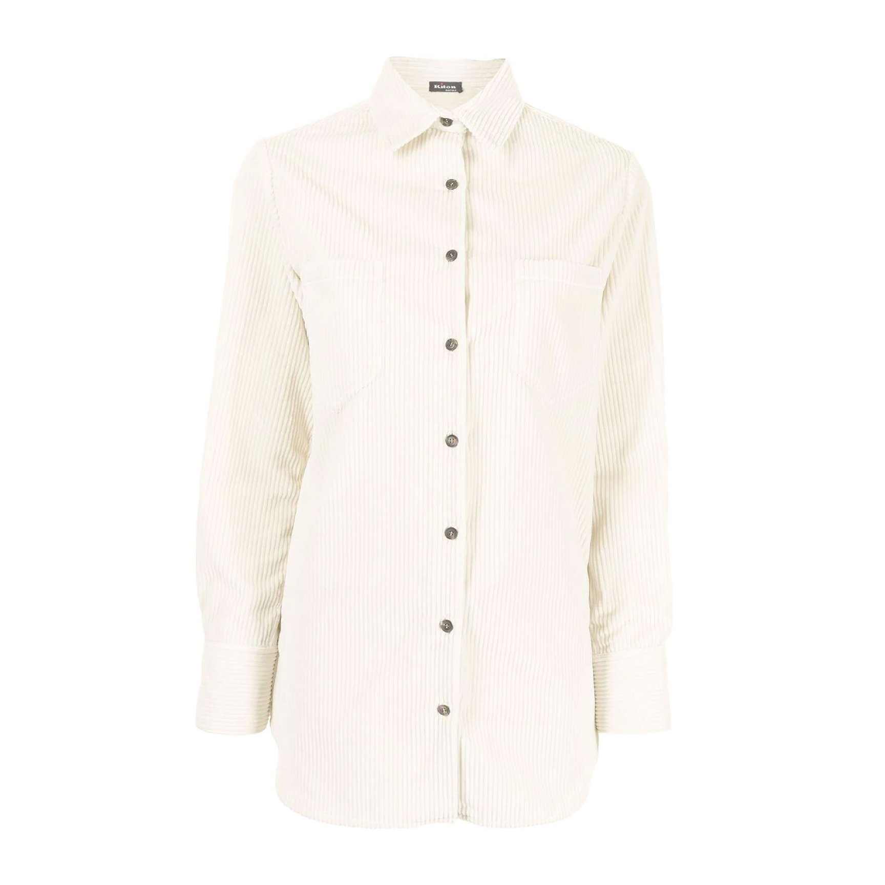 オフホワイトな色合いが合わせやすさ抜群「キートン(Kiton)」のコーデュロイシャツ。細身スタイルなので、ゆるっとしたボトムやフレアスカートを合わせても◎。秋コーデの差し色として取り入れてみては。