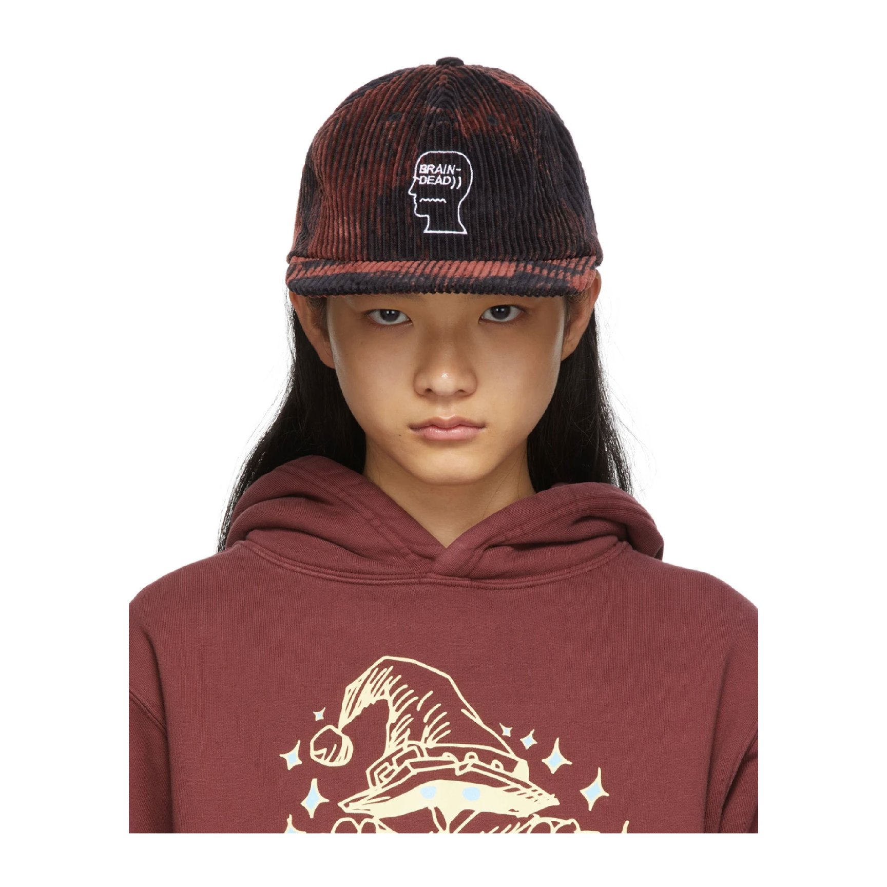 「ブレイン デッド(BRAIN DEAD)」のコーデュロイキャップは、ブラックとレッドの染色模様が特徴。前面にはワンポイントとしてホワイトのロゴ刺繍があり、100%コットンなので長時間かぶっていても快適。商品は色合いにばらつきがあるとして、1つひとつに個性があります。