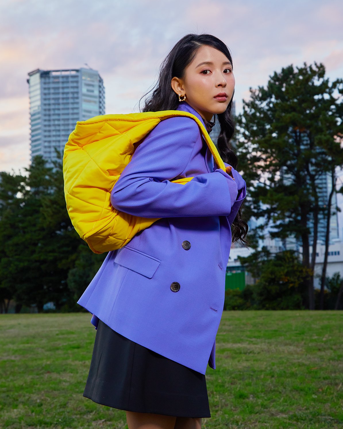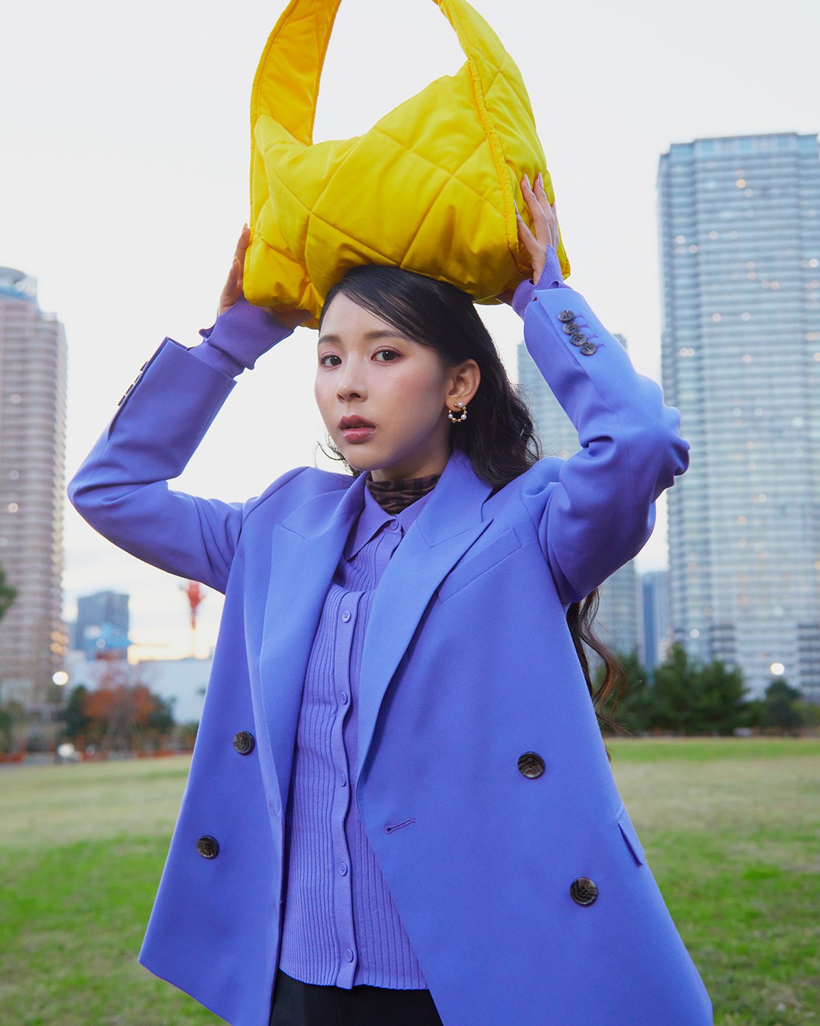 ミチ:同系色で統一したり、「今日のコーディネートは何色以内にしよう!」と自分の中で決めておくと良いかもしれません。ヴィヴィッドカラーのような一見すると難易度の高そうなアイテムもバランス良く取り入れられると思います。スタイリングのカラーリングに合わせたメイクをするのも楽しいですよ。