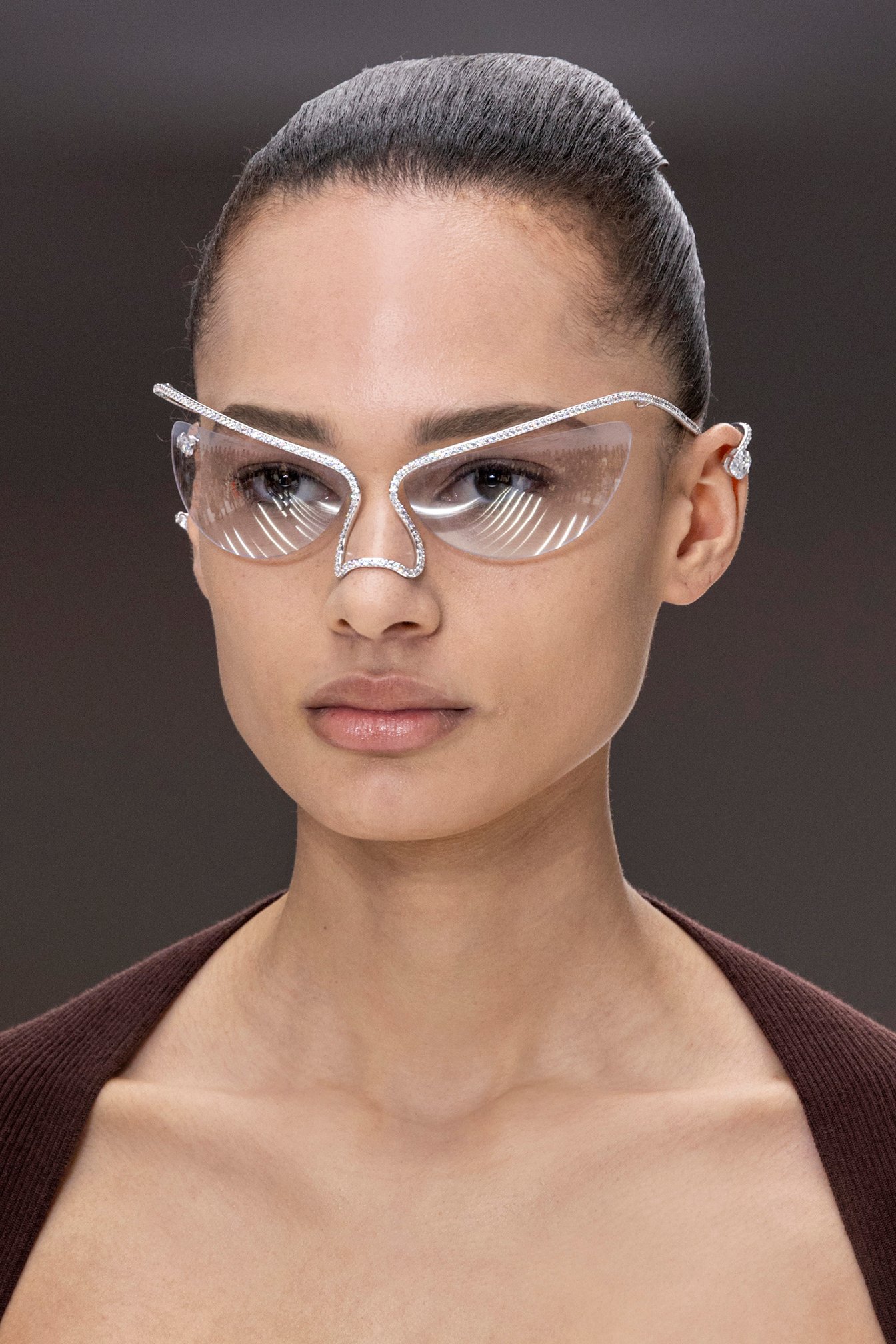 18Kホワイトゴールドとホワイトダイヤモンドのアイウェア「シンギュラー ビジョン(Singular Vision)」、クロコダイルやフリンジ刺繍の「バゲット(Baguette)」バッグなど、"貴重な実用品"の概念がアクセサリーやファインジュエリーに反映されている。