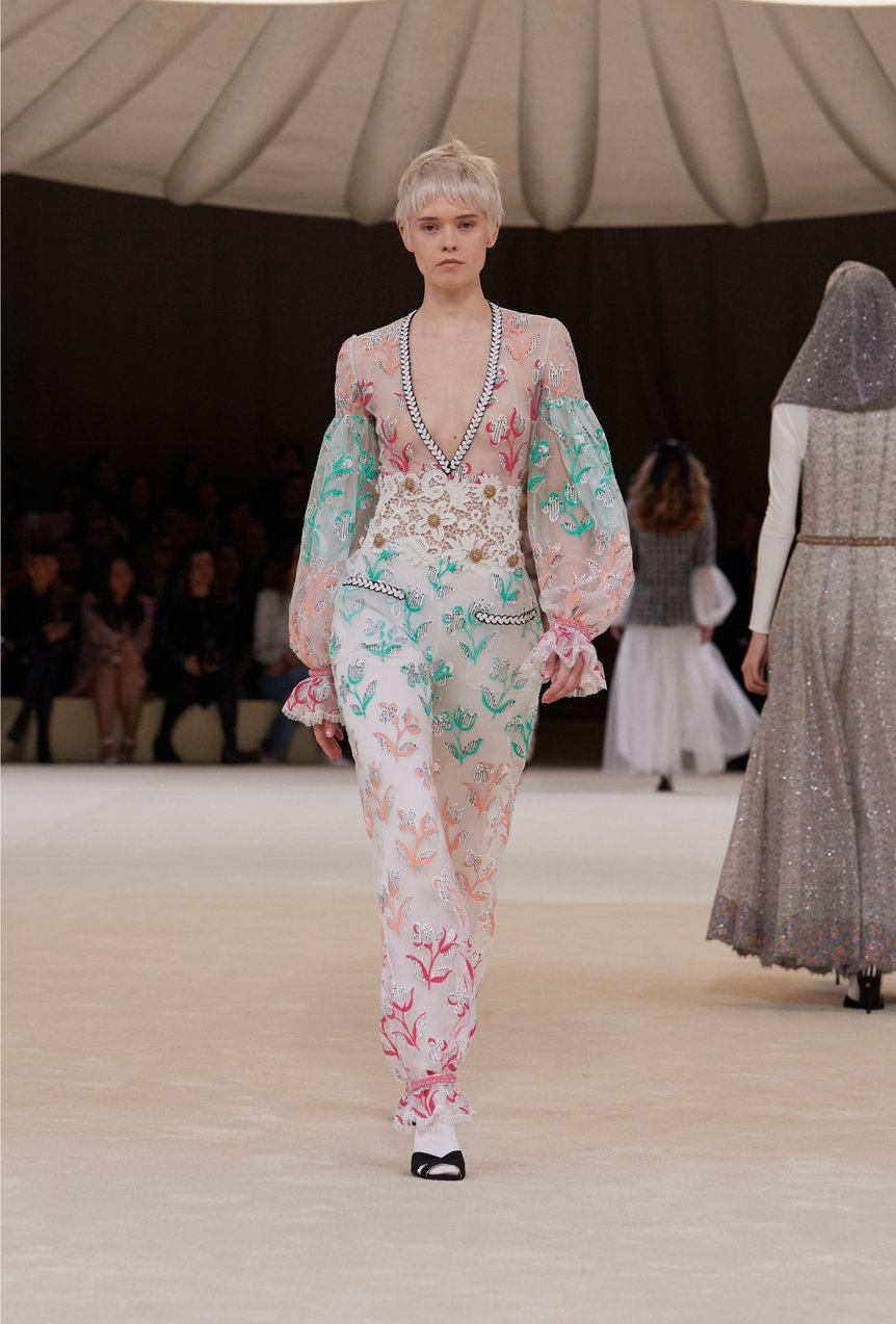 創設者のガブリエル・シャネルが初めてバレエ衣装をデザインしてから、今年で一世紀。シャネルとダンスの親密な関係性が、2024年春夏オートクチュールコレクションに反映された。「私にとってダンスとは、心のなかにある数々の物語や感情を呼び起こすもの。それを後世に伝え、語り継いでいくことに喜びを感じています」(ヴィルジニー・ヴィアール)