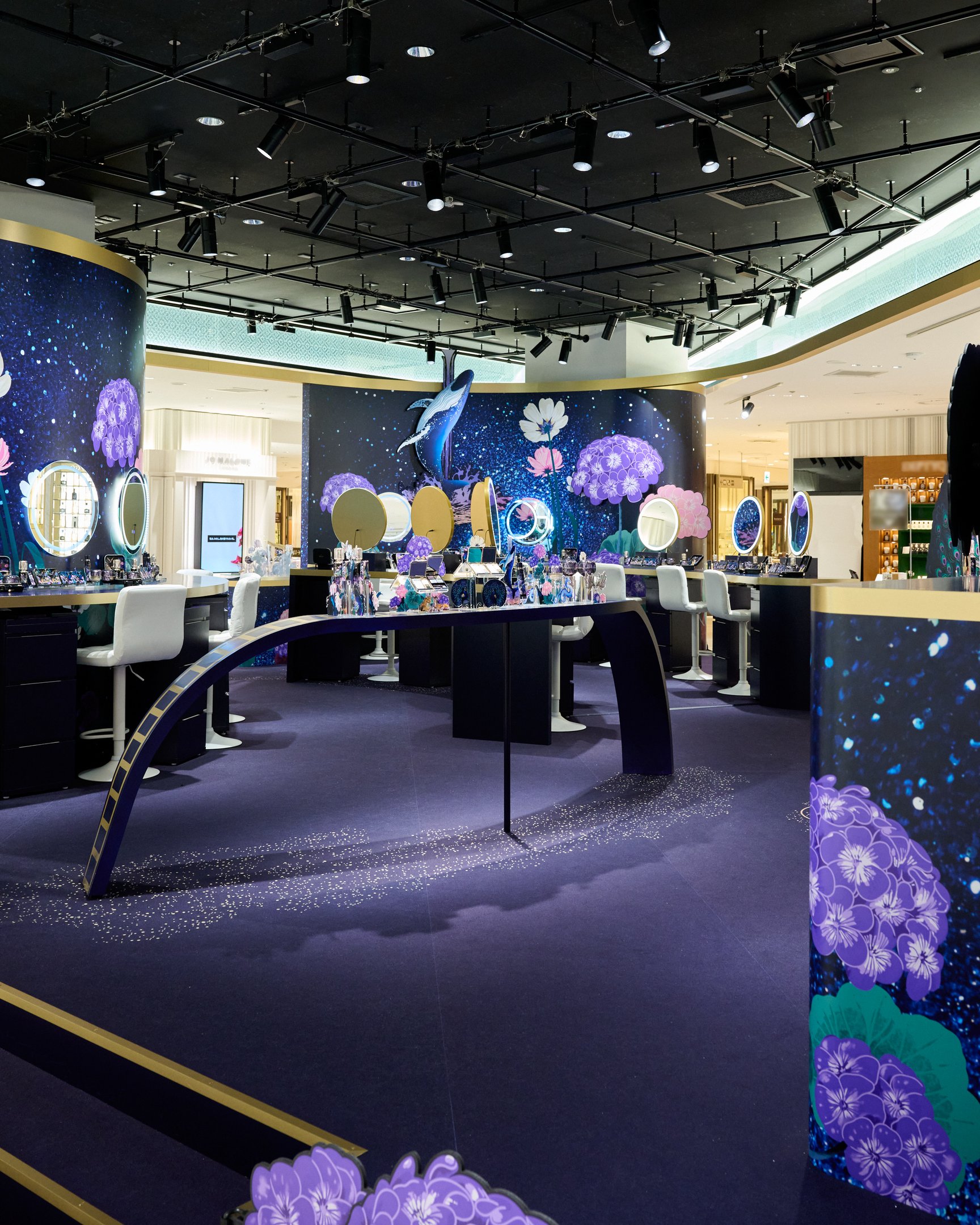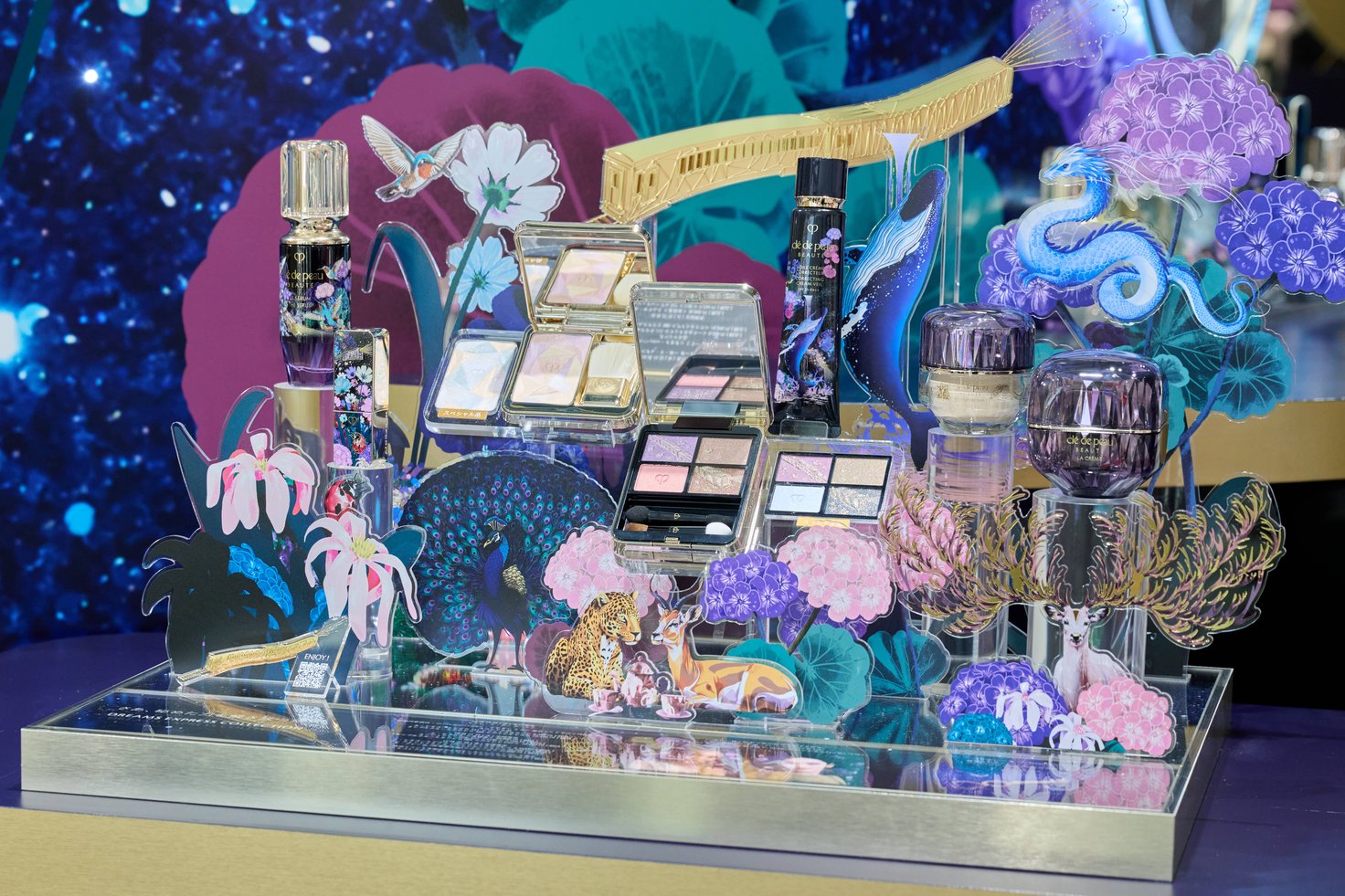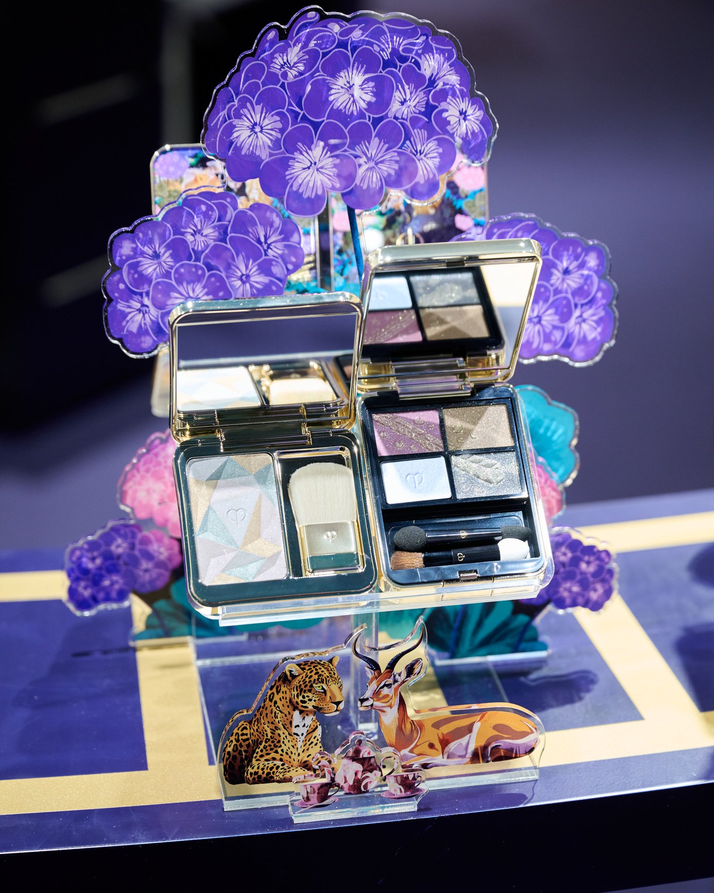 会場には、伊勢丹新宿店など一部店舗*のみで販売する限定カラーも。オンブルクルールクアドリ「505 Jeweled Horizons」は、クリスタルホワイト、ライラックパープル、モカブラウン、ブリリアントブラックの4色がセットされ、神秘的でミステリアスなアイメイクが叶います。ル・レオスールデクラ「111 Pastel Plumes」は、孔雀の尾羽を思わせる水晶玉のようなきらめきが上品なツヤをもたらし、表情を美しく際立たせてくれます。