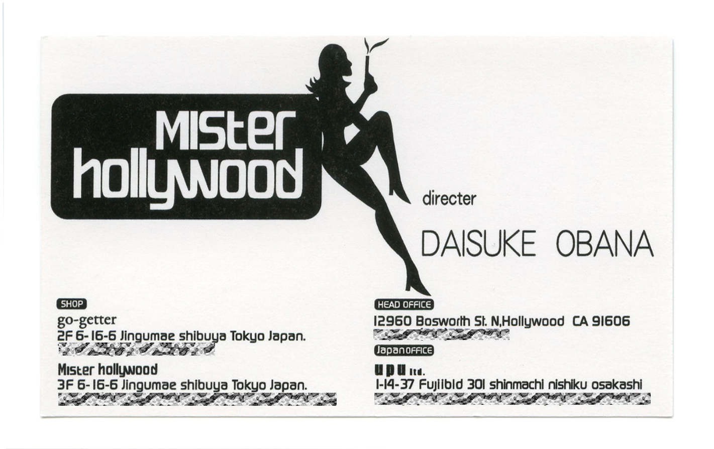 ミスターハリウッド初期は、得意ではないイラストレーターを使って名刺も自分で作っていた。アメリカの家や、go-getterの詳細も載せている。