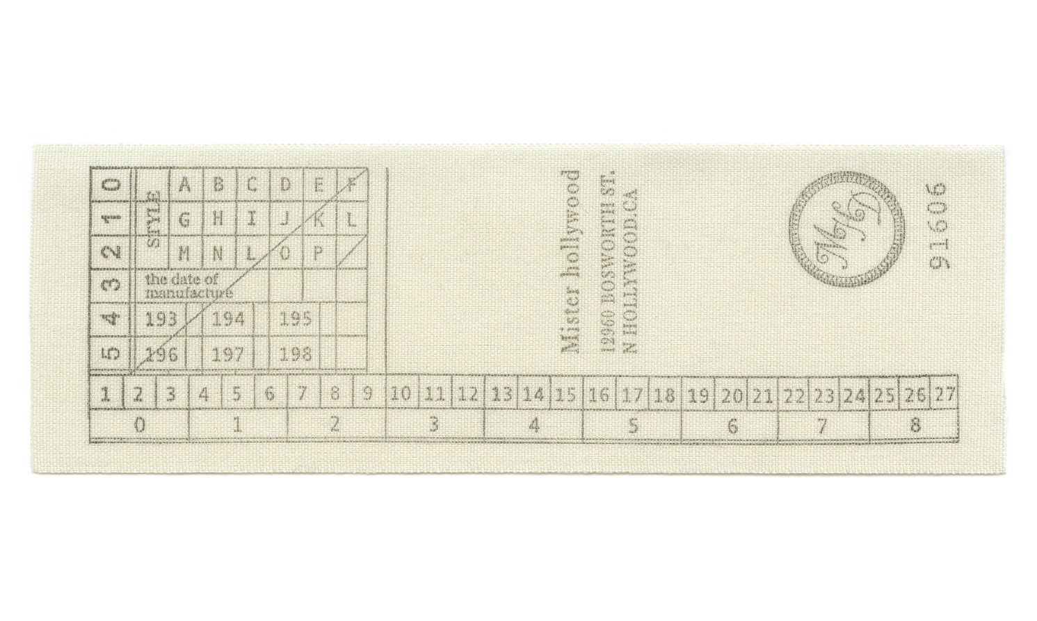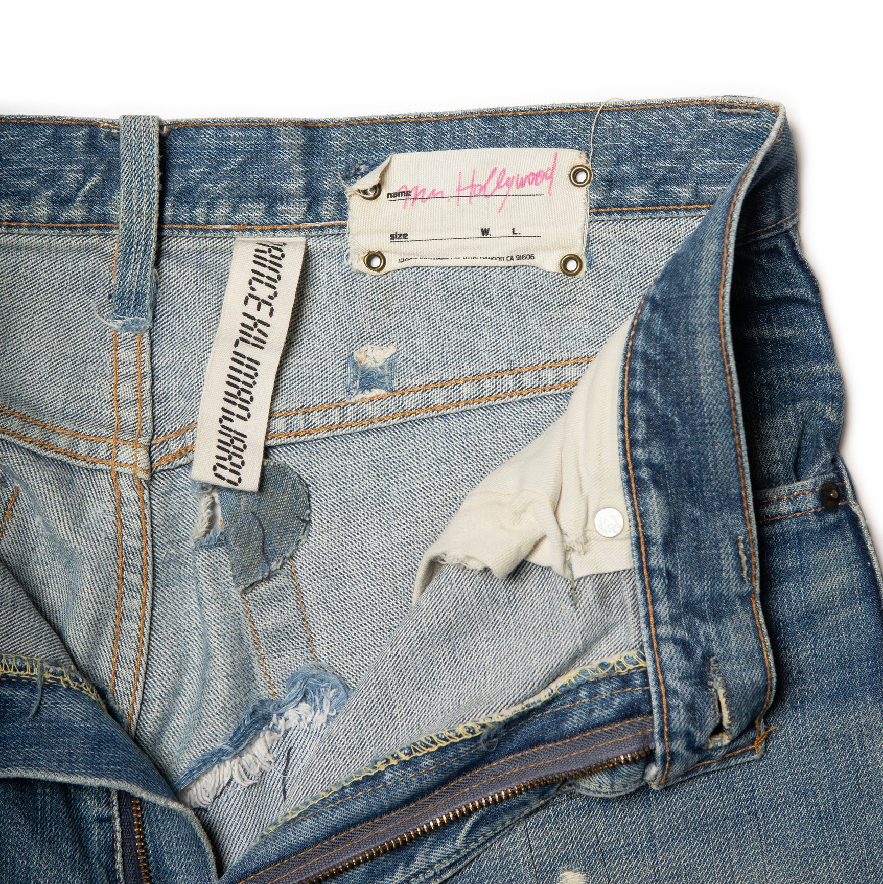 2000年に制作した「ミスターハリウッド」のリメイクジーンズとブランドタグ。