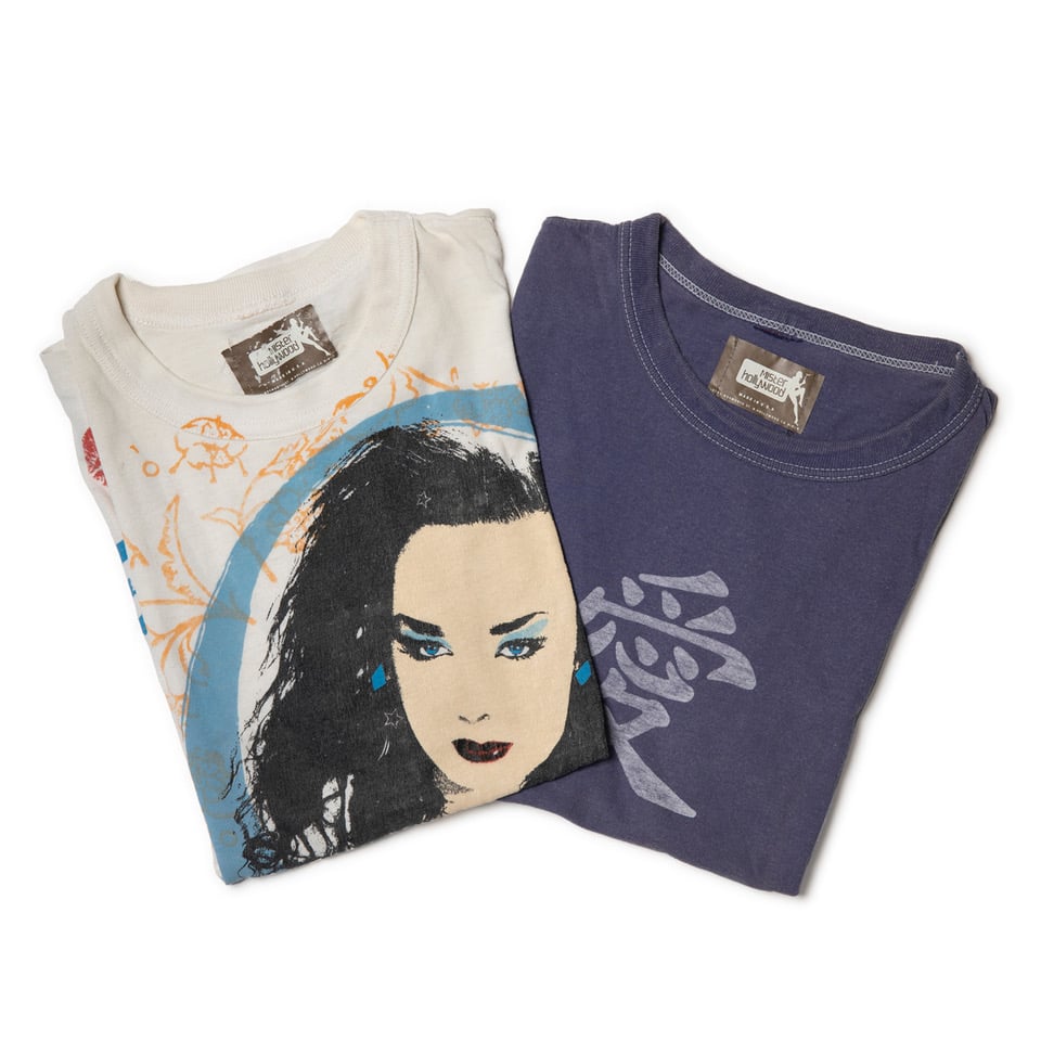 ミスターハリウッド初期のリメイクTシャツ。尾花がセレクトしたヴィンテージTシャツを、年代や価値にとらわれないよう、元のタグを外してミスターハリウッドのタグに付け替えたもの。ヴィンテージに対する新しい価値観で、新作を販売するのと同じように全て同一プライスで販売していた。