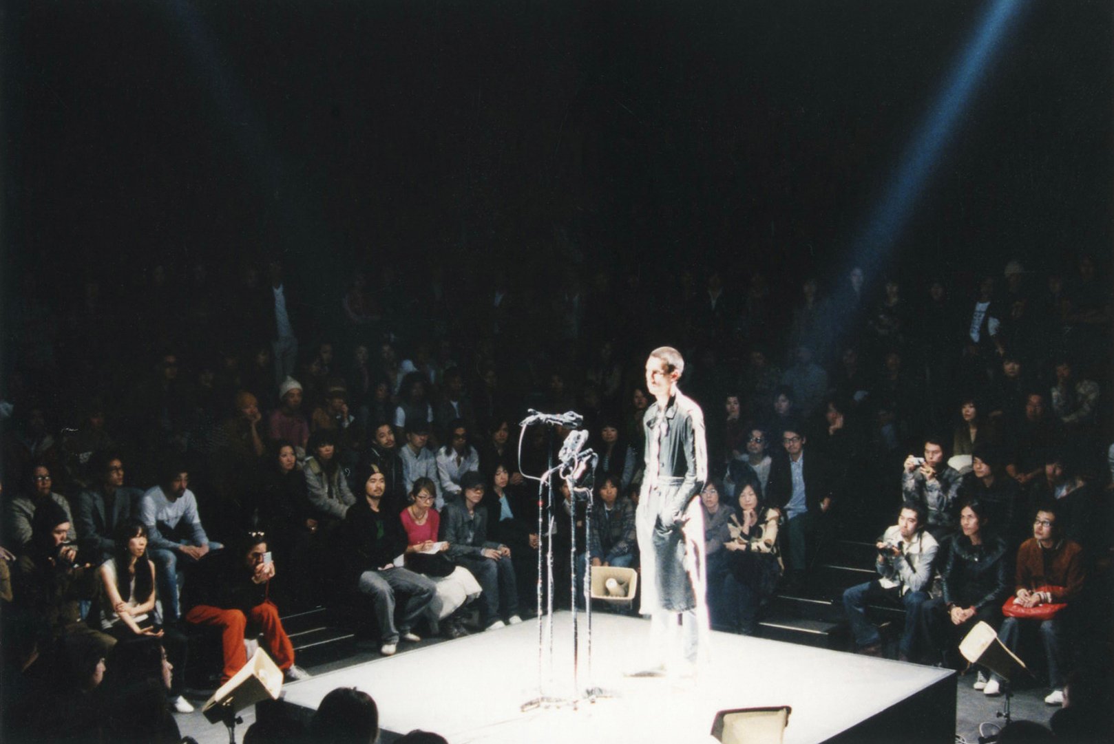2004年春夏「ACTIVIST」のショー。ステージにマイクスタンドを設置し拡声器で音を流すといった、かなり攻撃的なショー演出。