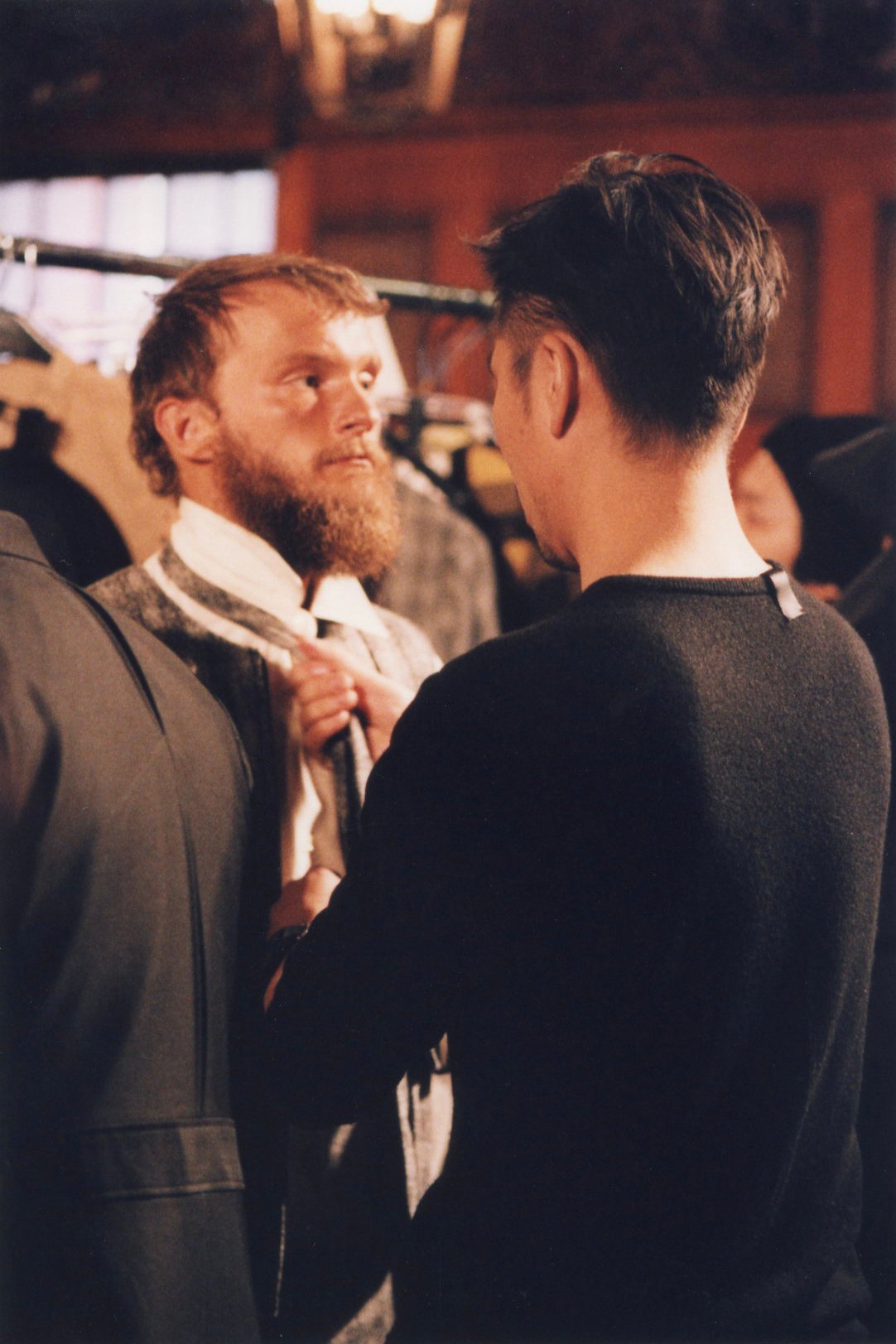 NYで2シーズン目、初のランウェイショーとなった2011-12年秋冬「HALF DOME」のバックステージにて。最終フィッティング中の尾花。
