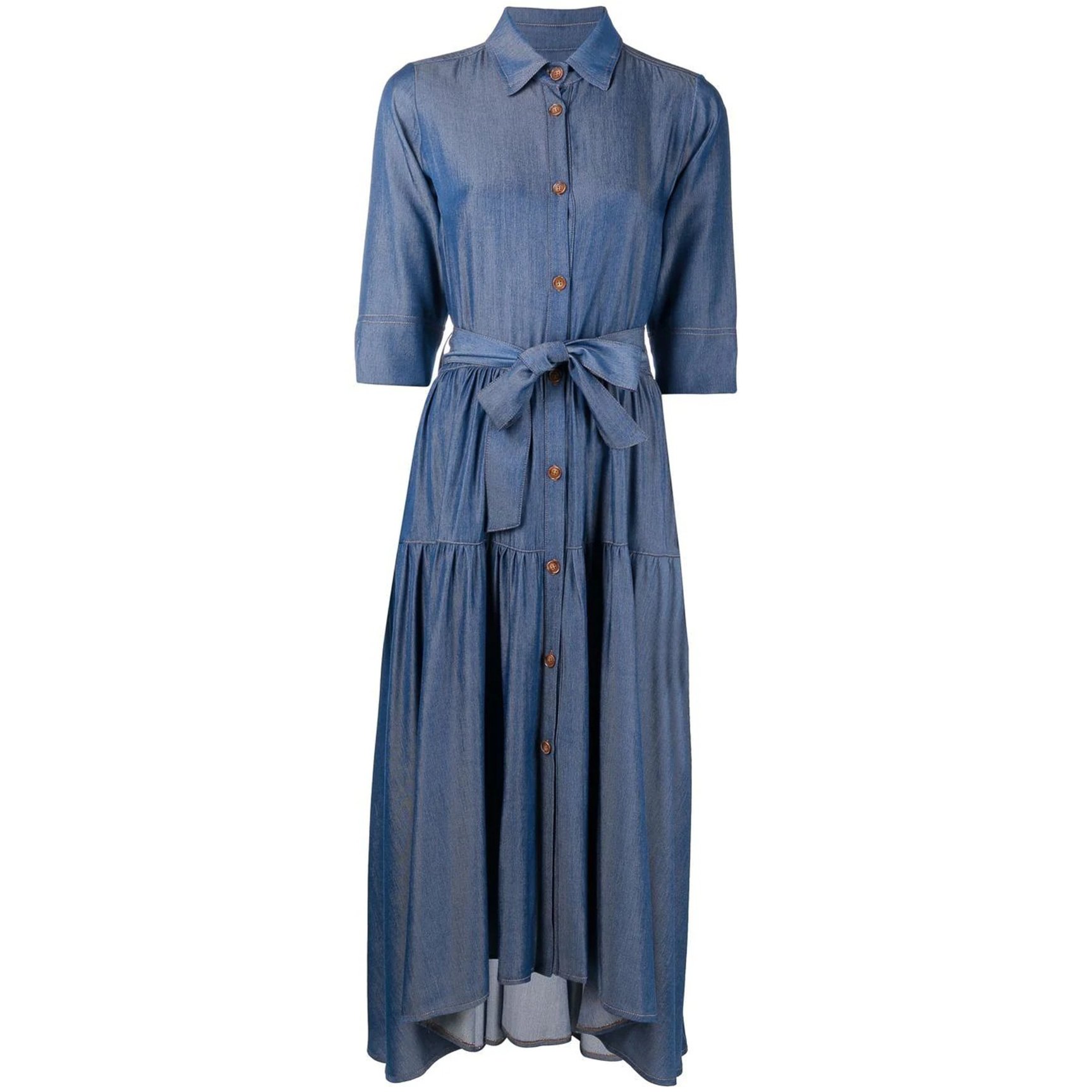 艶やかに揺れ動く、「ディーエクステリア(D.EXTERIOR)」のティアードデニムドレス。ボタン留めの七分袖シャツデザインと、ウエストのリボンでスタイルアップを実現する、清楚なムード溢れる爽やかな一着です。