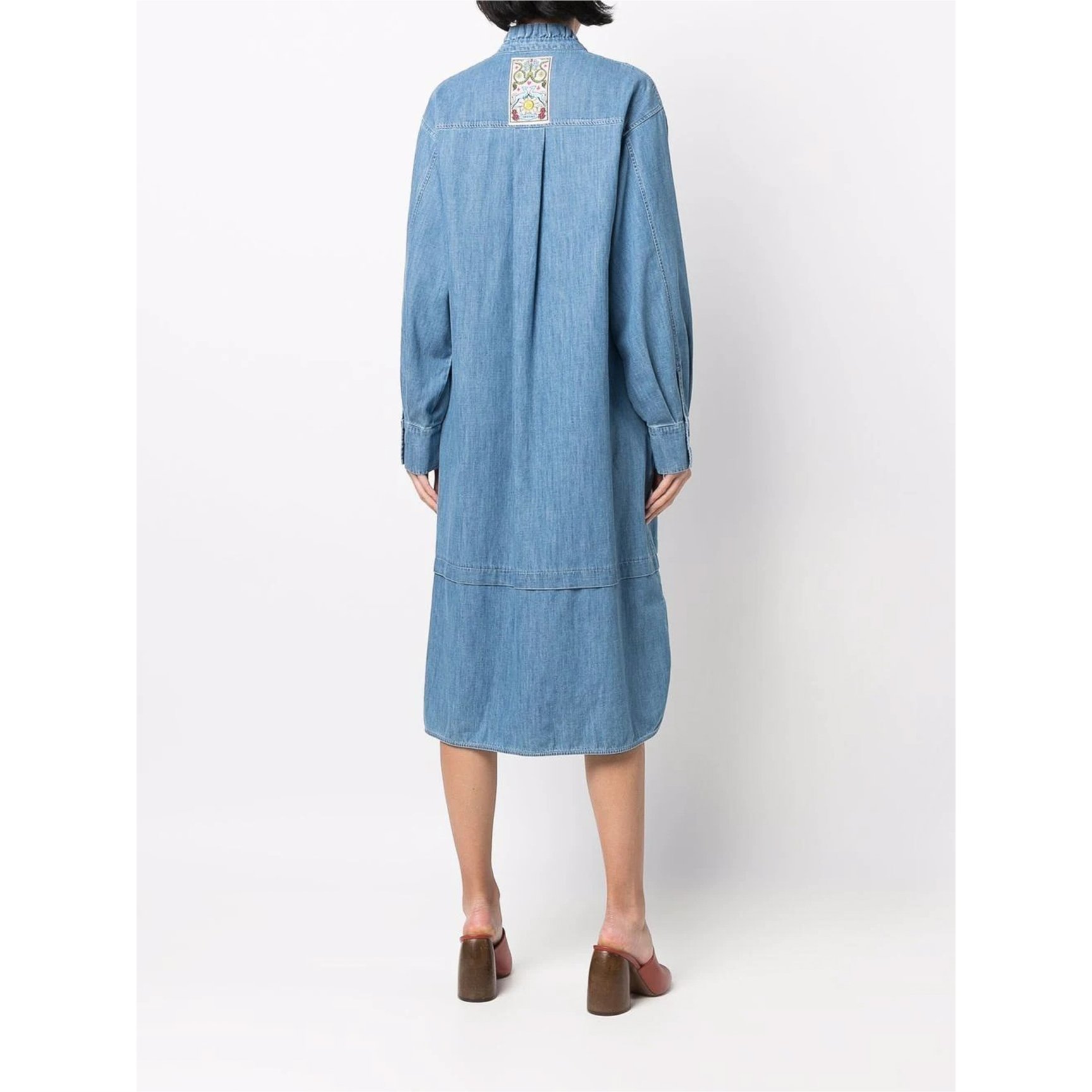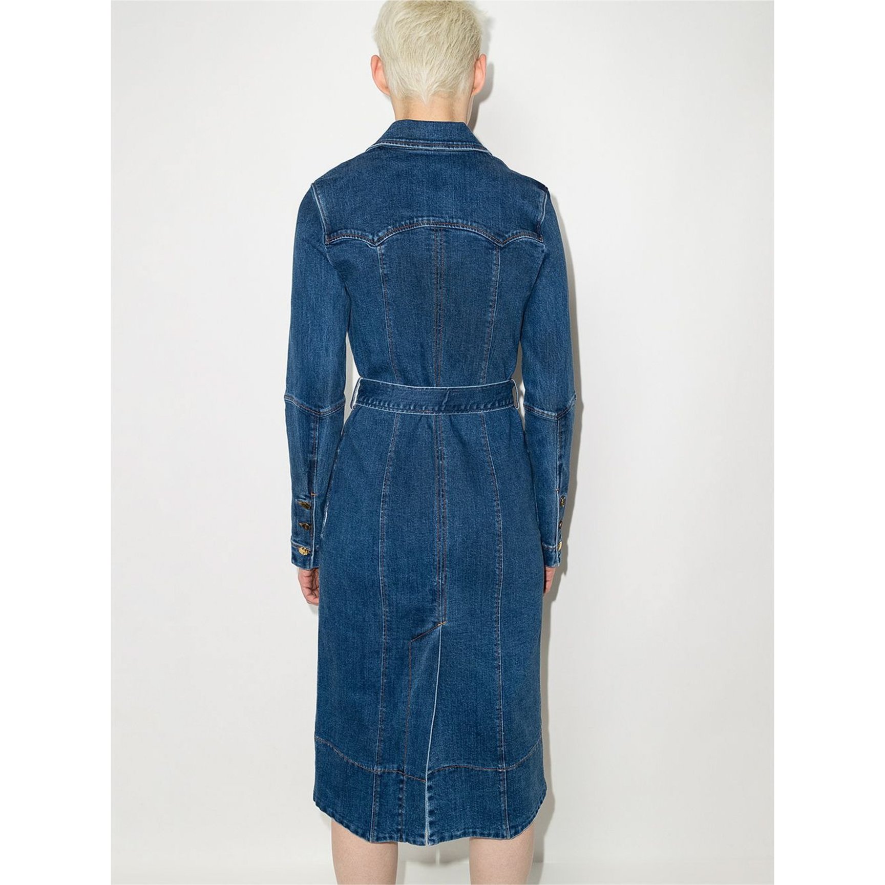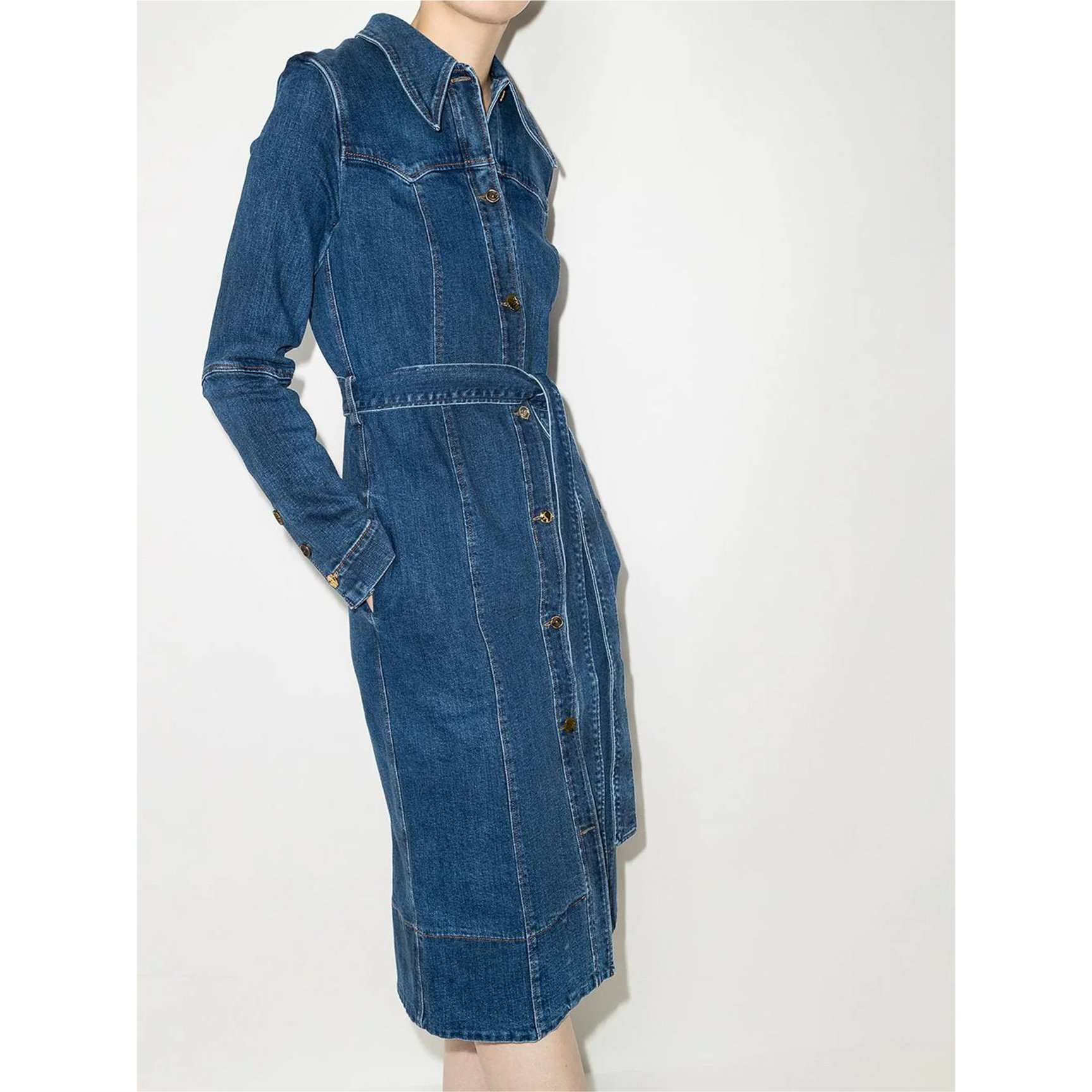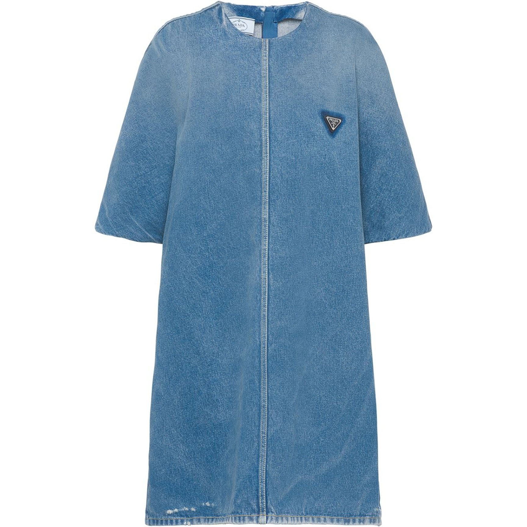 最後にご紹介するのは、プレーンなシルエットがエフォートレスなルックを完成させる「プラダ(PRADA)」のデニムドレス。装飾を削ぎ落としたボディにシグネチャーのトライアングルロゴがパッチされた、シンプルなものの美しさと、足し算のスタイリングを楽しめる一着です。