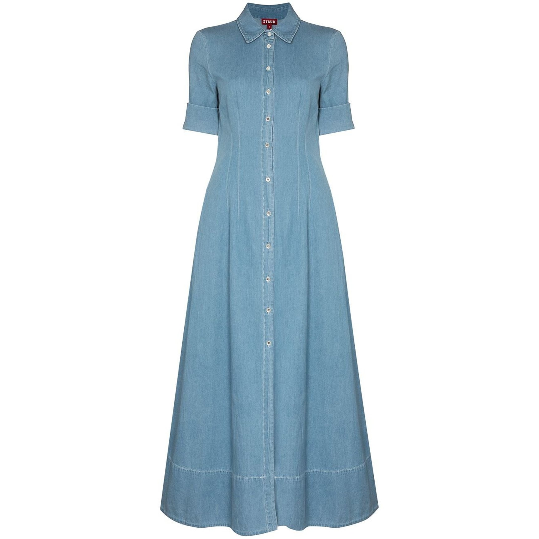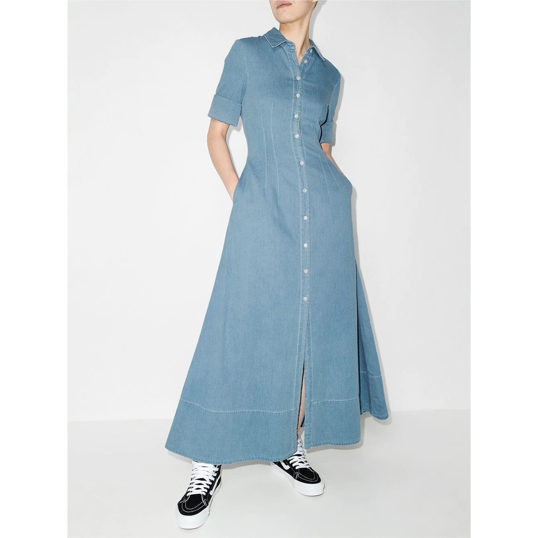 優雅なシルエットに魅了される、「スタウド(STAUD)」のデニムロングドレス。ボタンを留めて着用すると、正統派なお嬢様スタイルに。スニーカーやレギンスを合わせると、スポーティなストリートスタイルへ。シンプルなデザインだからこそ、コーディネートの幅が広がります。