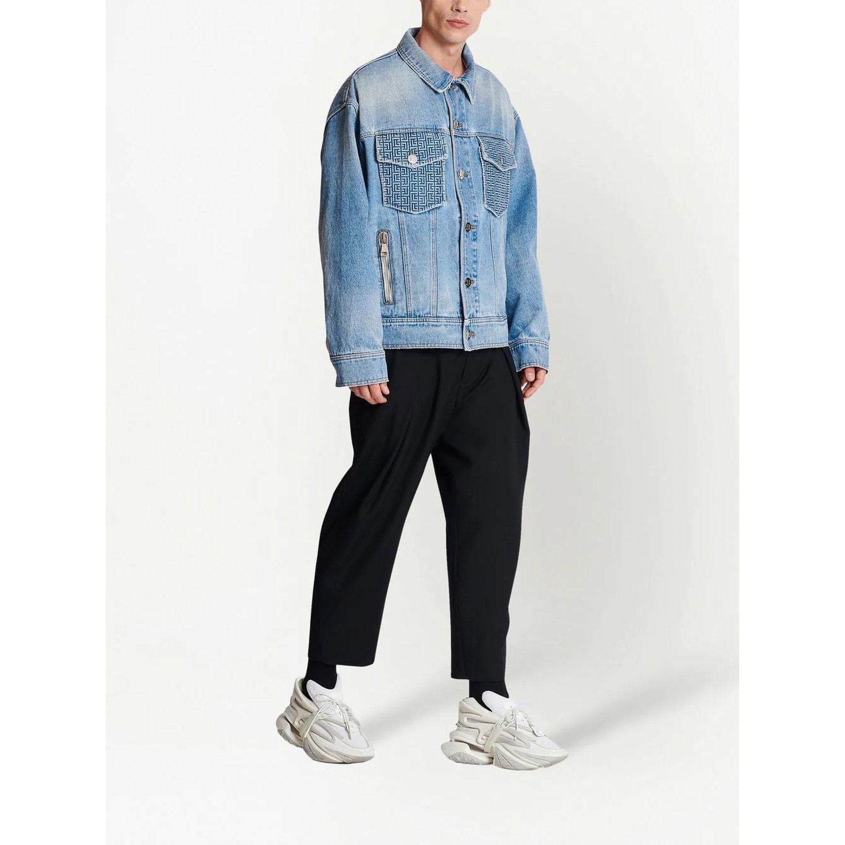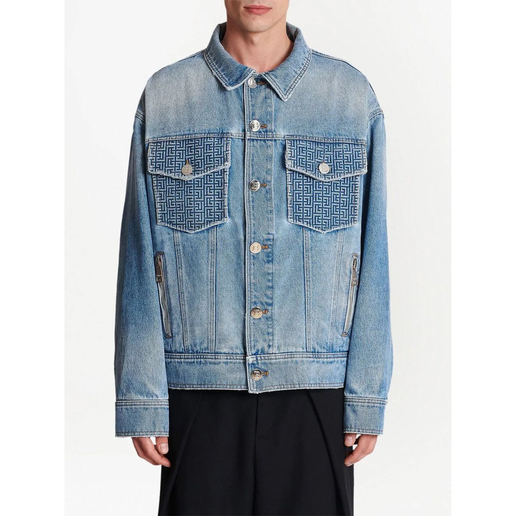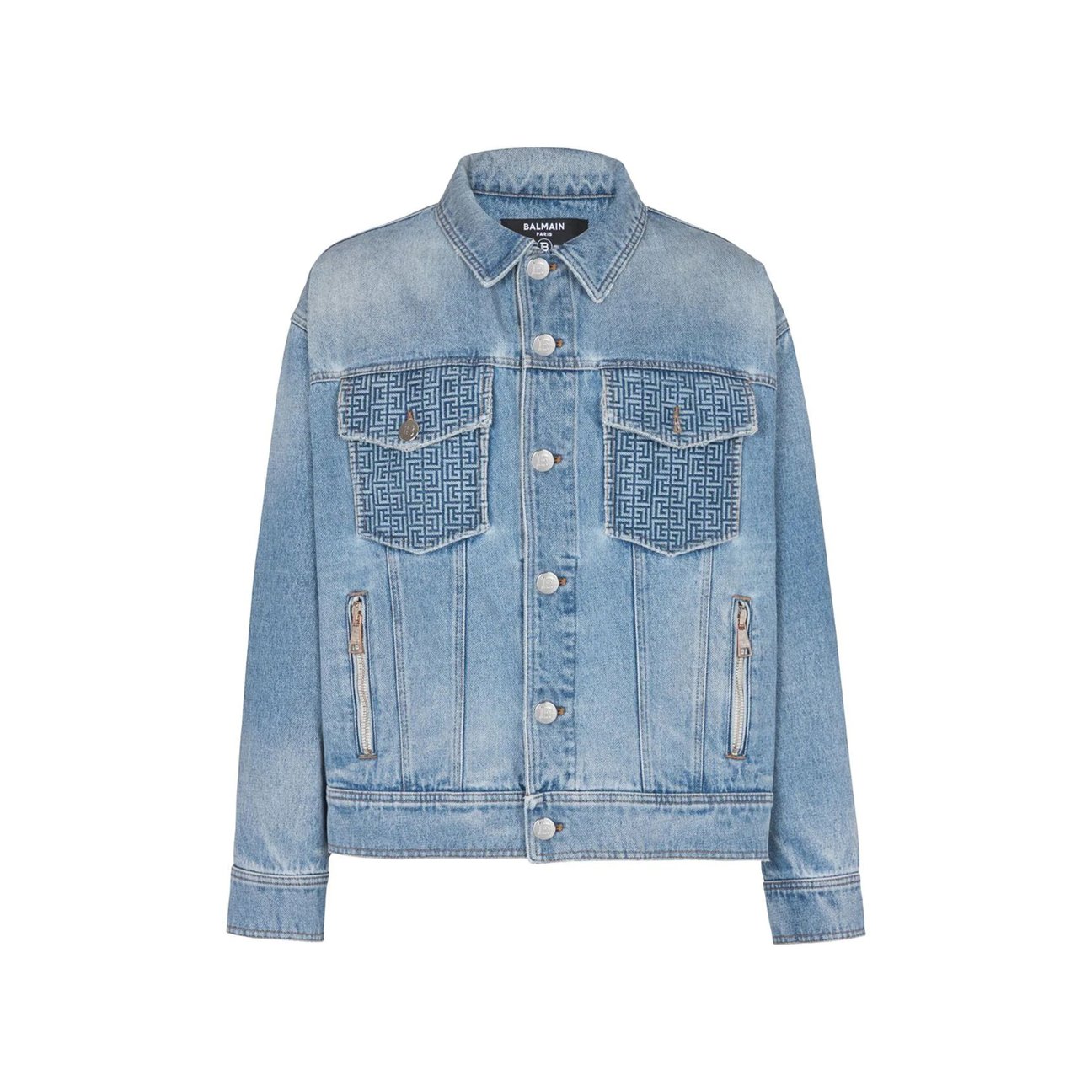 爽やかなブルーのデニムジャケットに、ブランドの魅力が詰め込まれた「バルマン(BALMAIN)」のアイテム。すっきりとしたフォルムながら、フラップポケットにはモノグラムを、バックにはロゴを描きラグジュアリーな雰囲気に仕立てています。