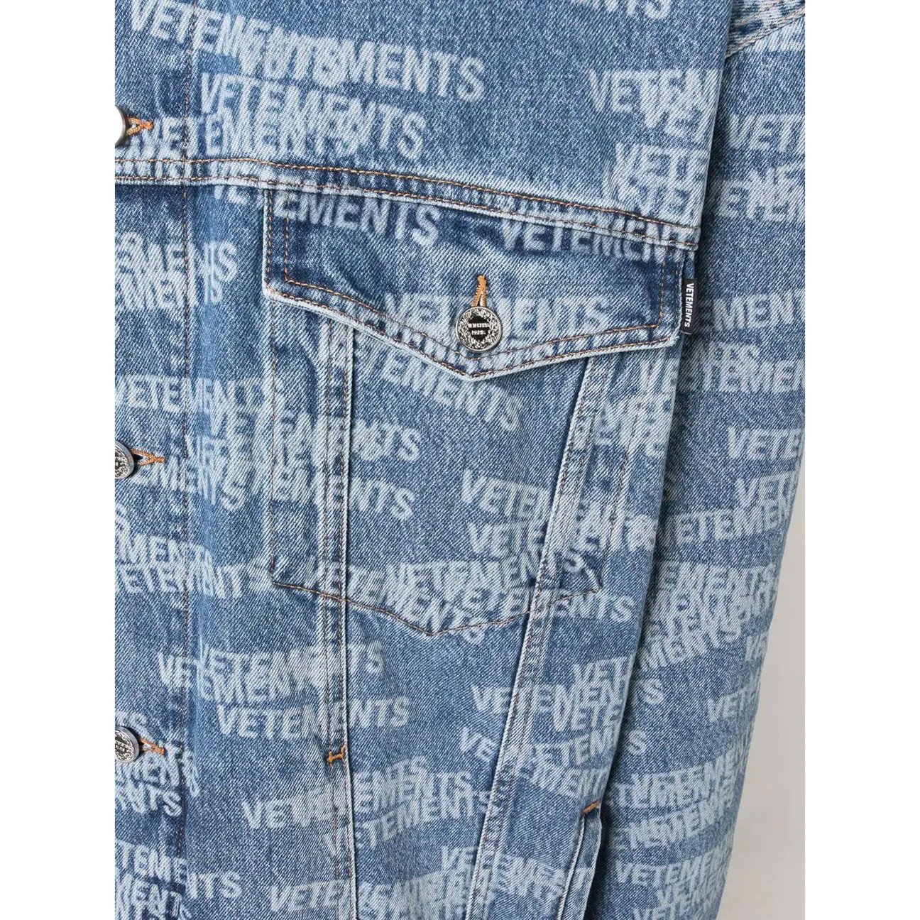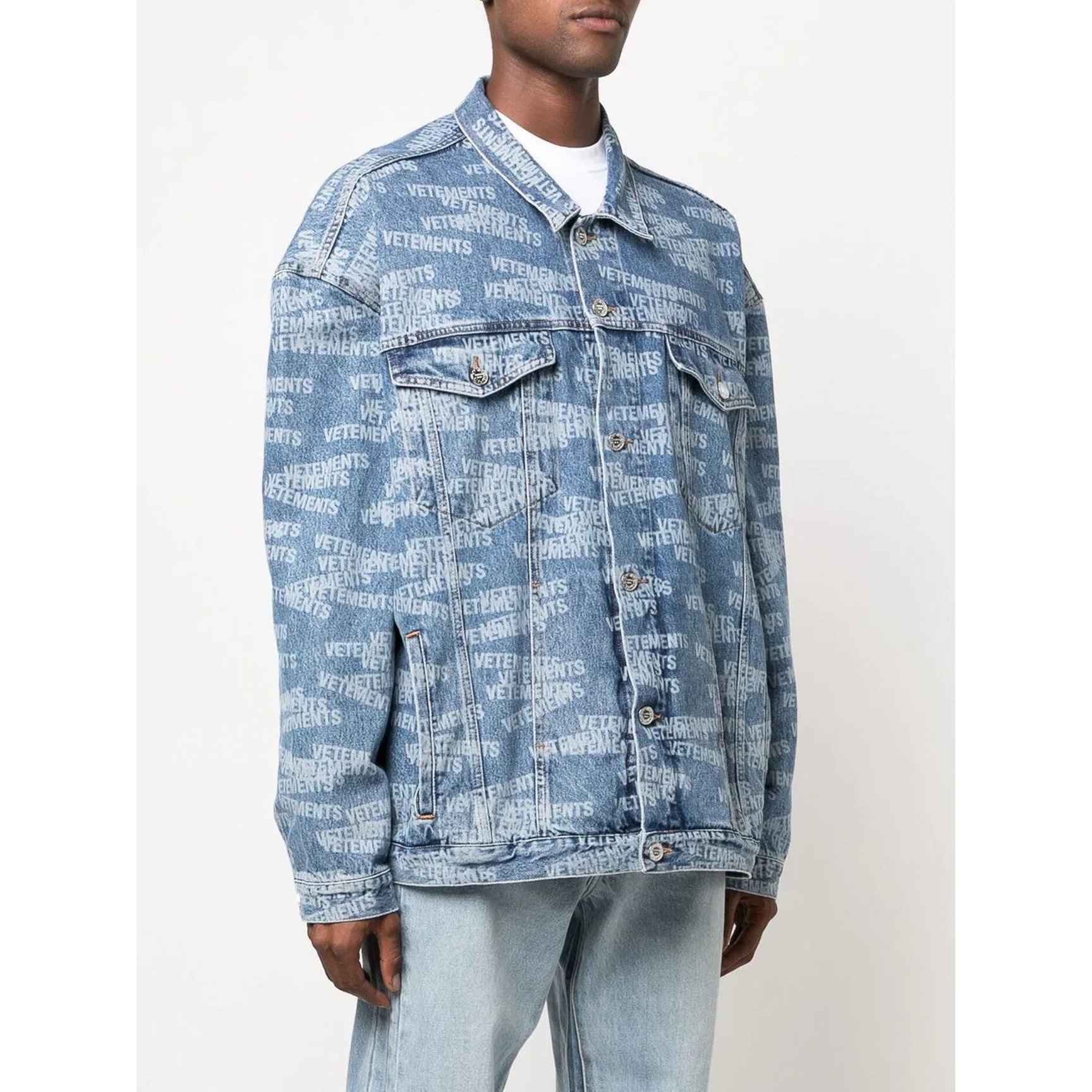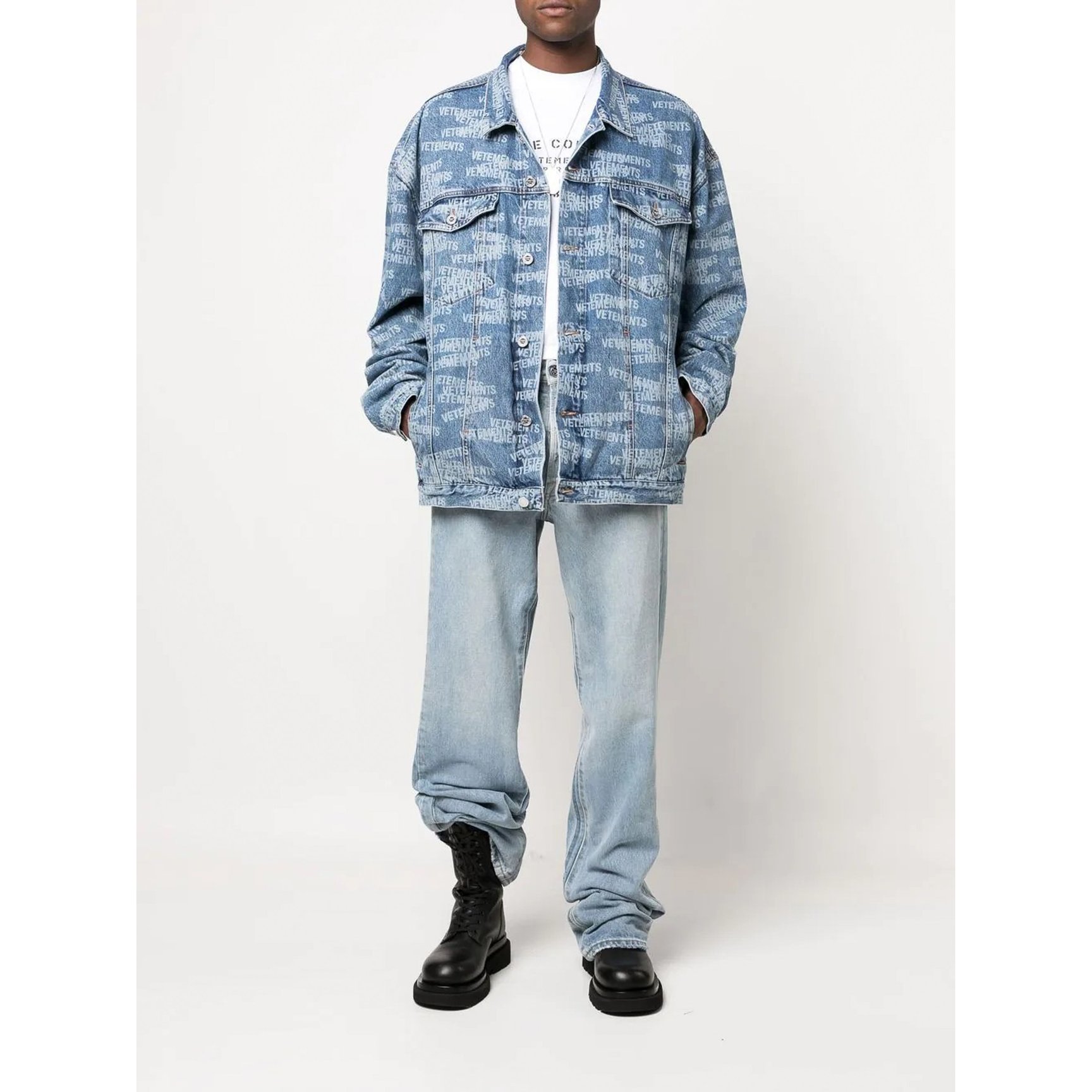 ロゴを全面にスタンプした、「ヴェトモン(VETEMENTS)」のデニムジャケット。ゆったりとしたサイズ感と、フラップポケットのみをパッチしたプレーンなシルエットで、やりすぎ感のないストリートスタイルを満喫できます。