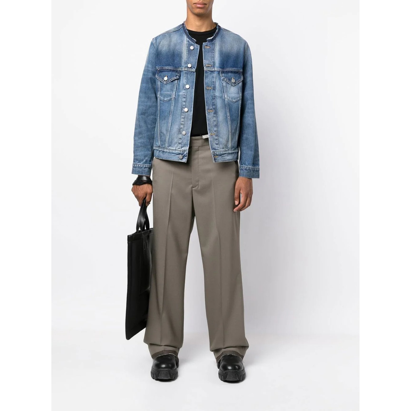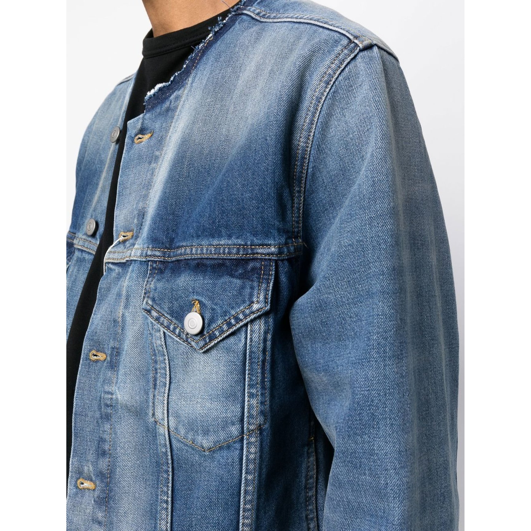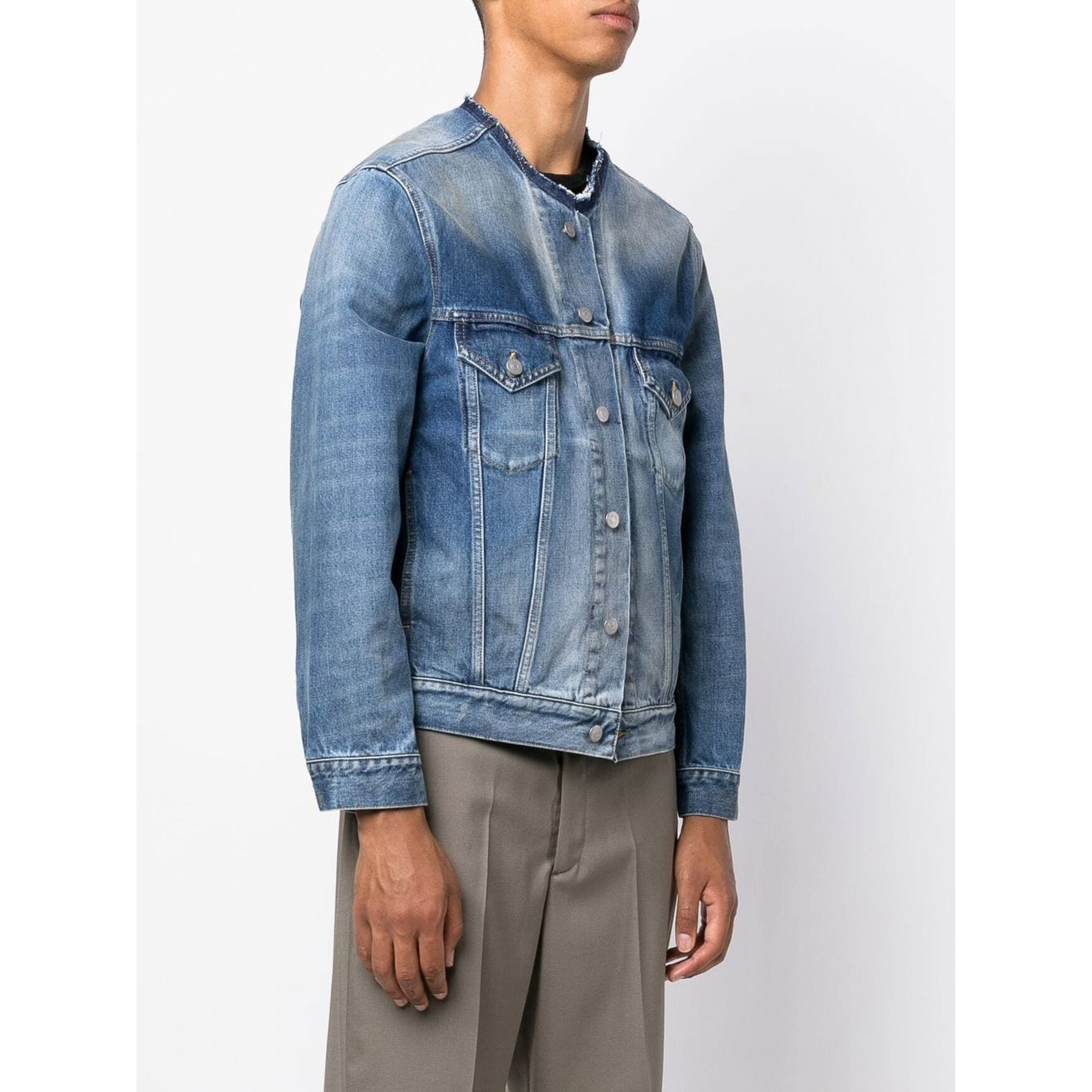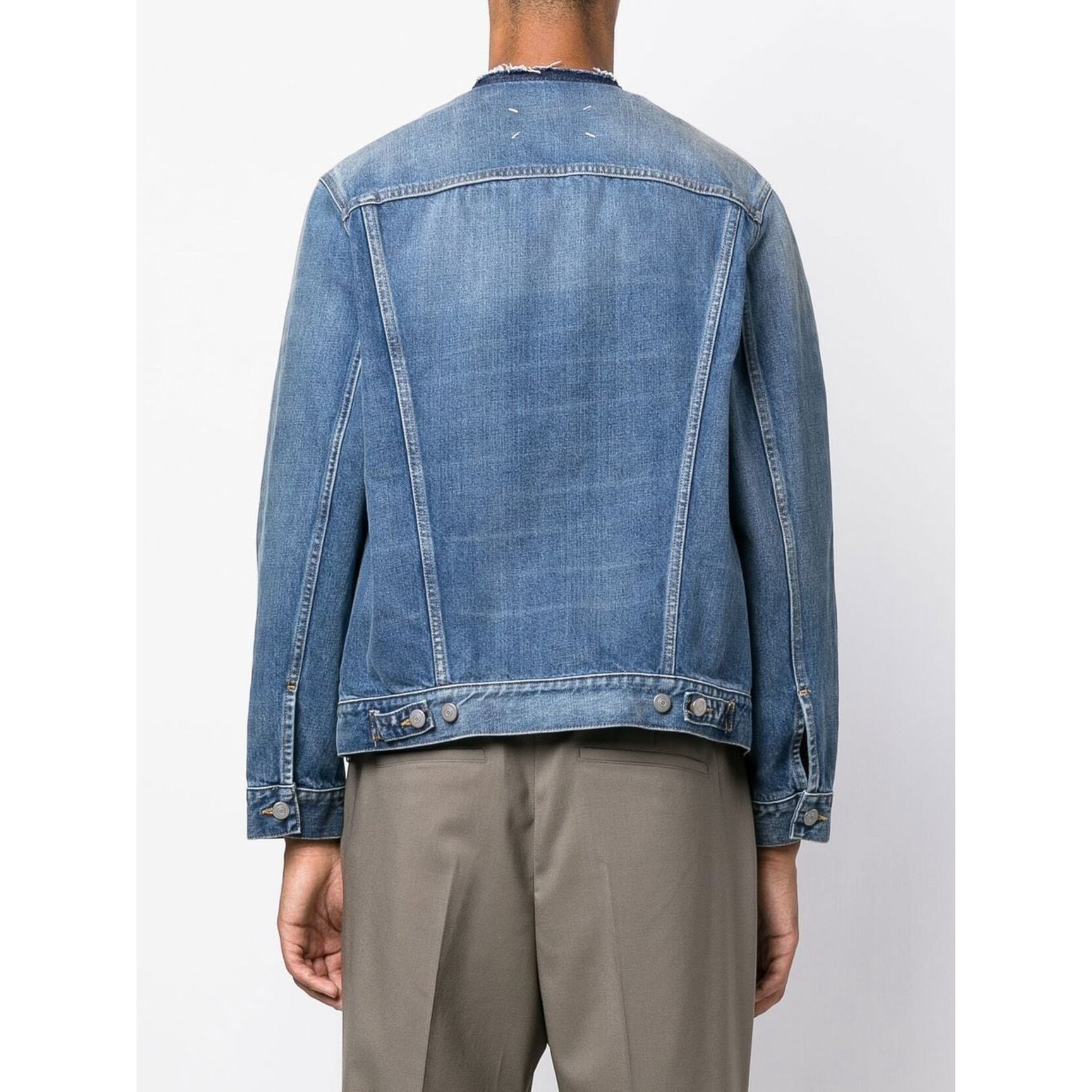 ばっさりと襟を切り取った、「メゾン マルジェラ(Maison Margiela)」のノーカラーデニムジャケット。ウォッシュ加工により浮かび上がった、美しいグラデーションに魅了されます。シグネチャーのステッチが際立つ、ミニマムかつモードな一着。