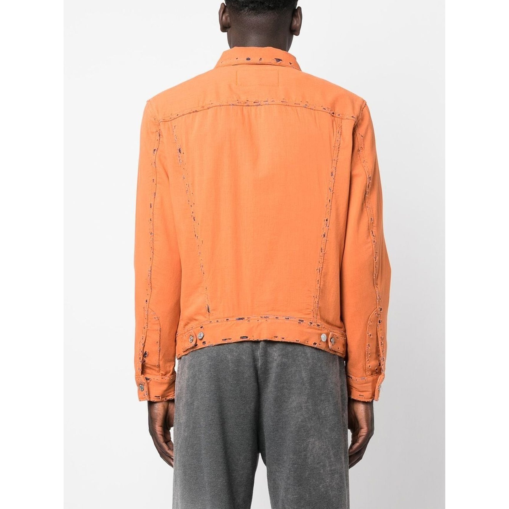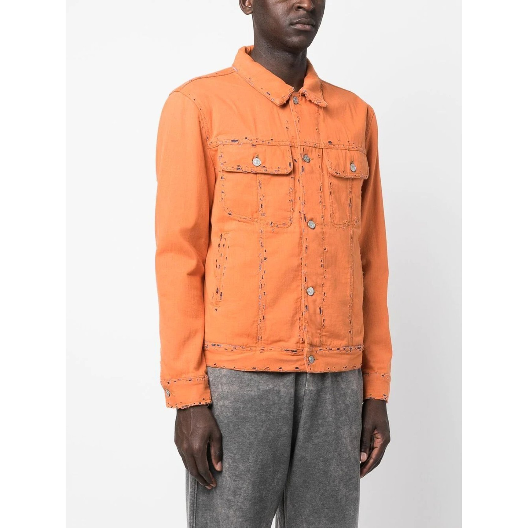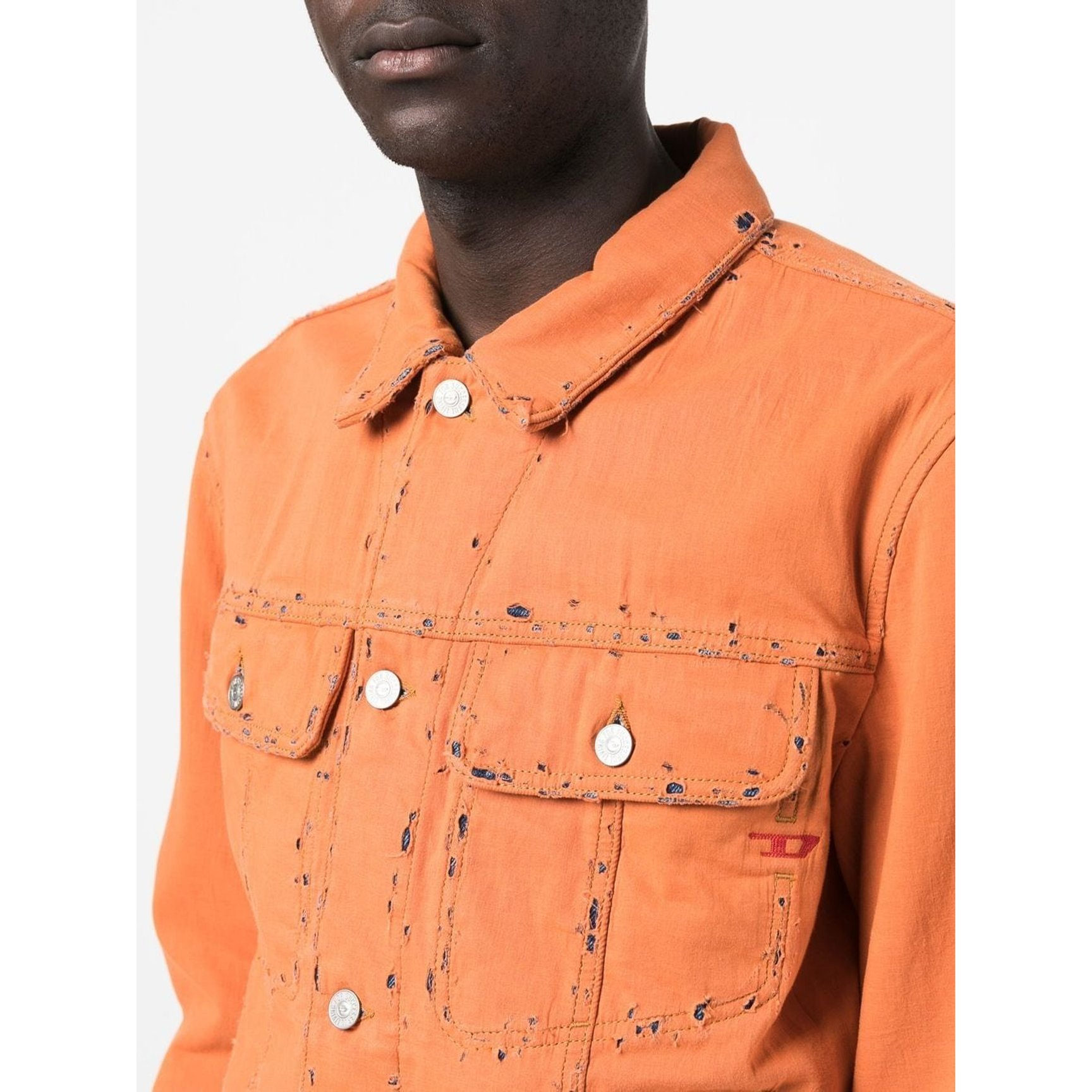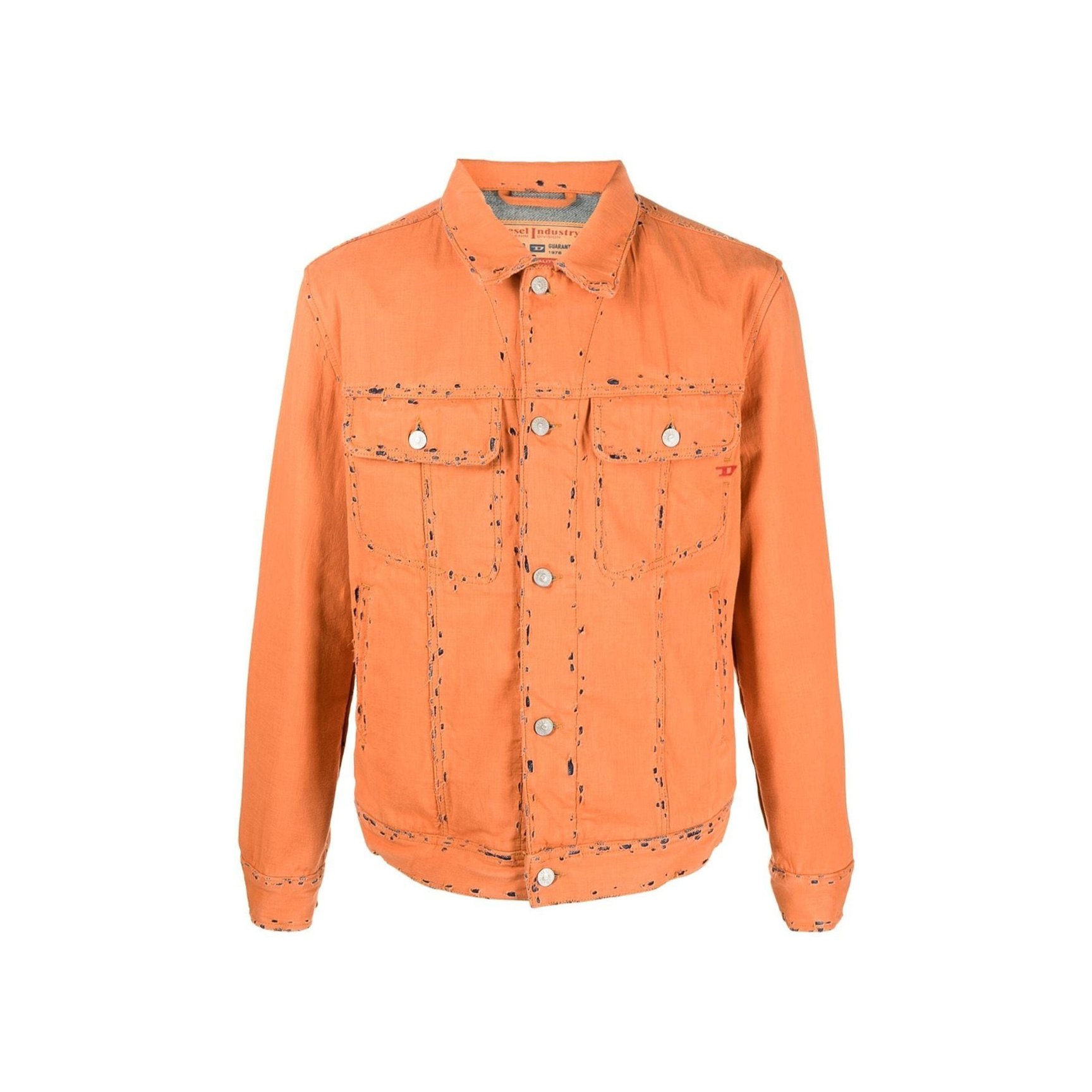 春夏のコーディネートに一点投入したい、「ディーゼル(DIESEL)」のデニムジャケット。目を惹くポジティブなオレンジのボディには、コンパクトなイニシャルロゴとシームに沿ったダメージ加工を施しています。やわらかな着心地も◎。
