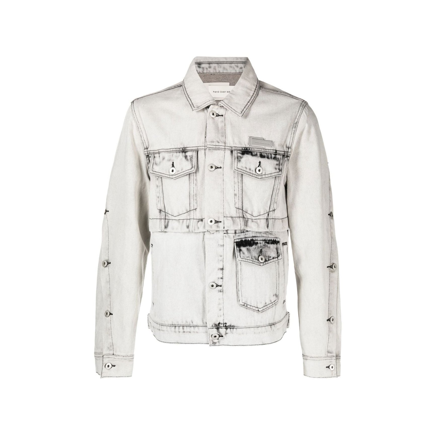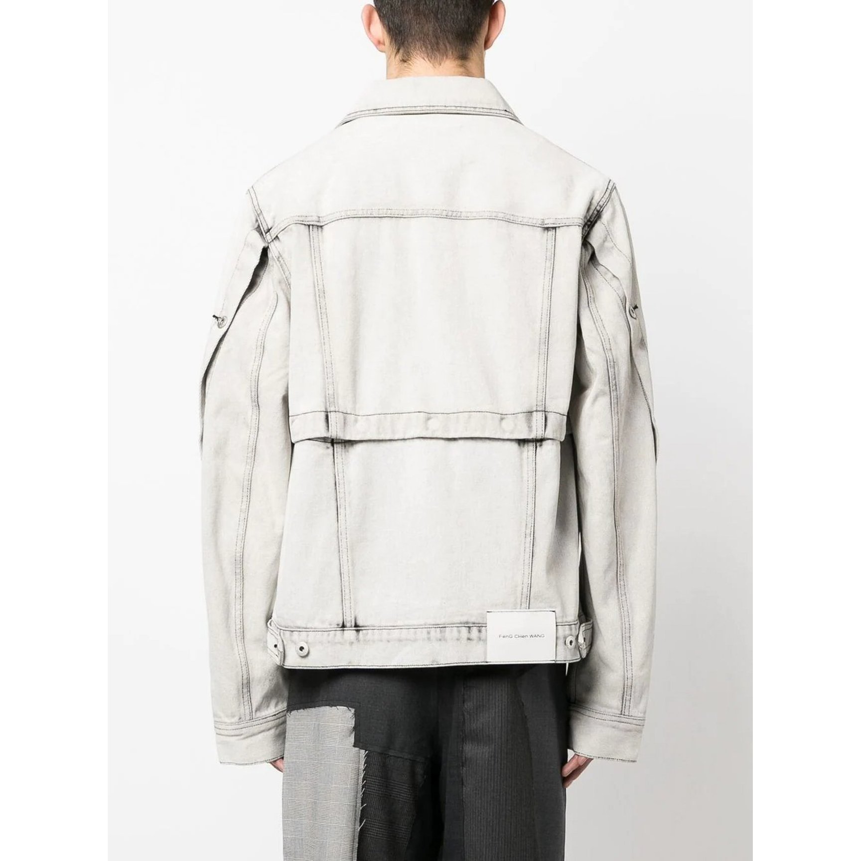 最後にご紹介するのは、ウェアを重ね合わせた独特のデザインで注目を集める「フェン チェン ワン(FENG CHEN WANG)」のデニムジャケット。ボタンやステッチで巧みに繋げ完成させた一着には、シルバーのロゴプレートが輝きます。