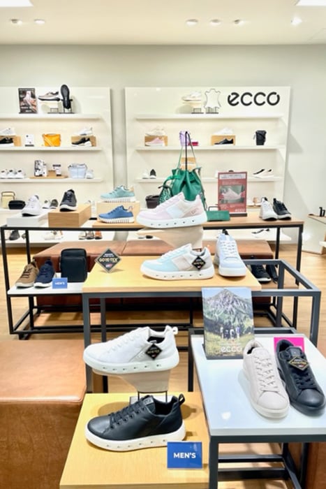 シューズではトレンドも相まってスニーカーが同20%以上売上が伸長。百貨店顧客のニーズにあった「お洒落で履きやすい」を実現したブランド「エコー(ecco)」が人気です。エコーでは、レザーを使用した高級感あふれるデザインと、柔軟性と軽さに優れたラバーソールを使用した商品を多く展開しています。