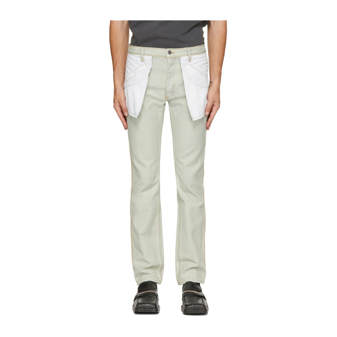 井野将之率いる「ダブレット(doublet)」からは遊び心溢れる一本。ユーズド加工を施しているデニムのフロント部分にはポラロイド写真が刺繍で縫い付けられ、アルバムの1ページのようなデザインになっています。そしてスマートフォンなどでフラッシュを焚くと、ポロライド写真に画像が浮かび上がってくるというダブレットらしい唯一無二のギミックが。