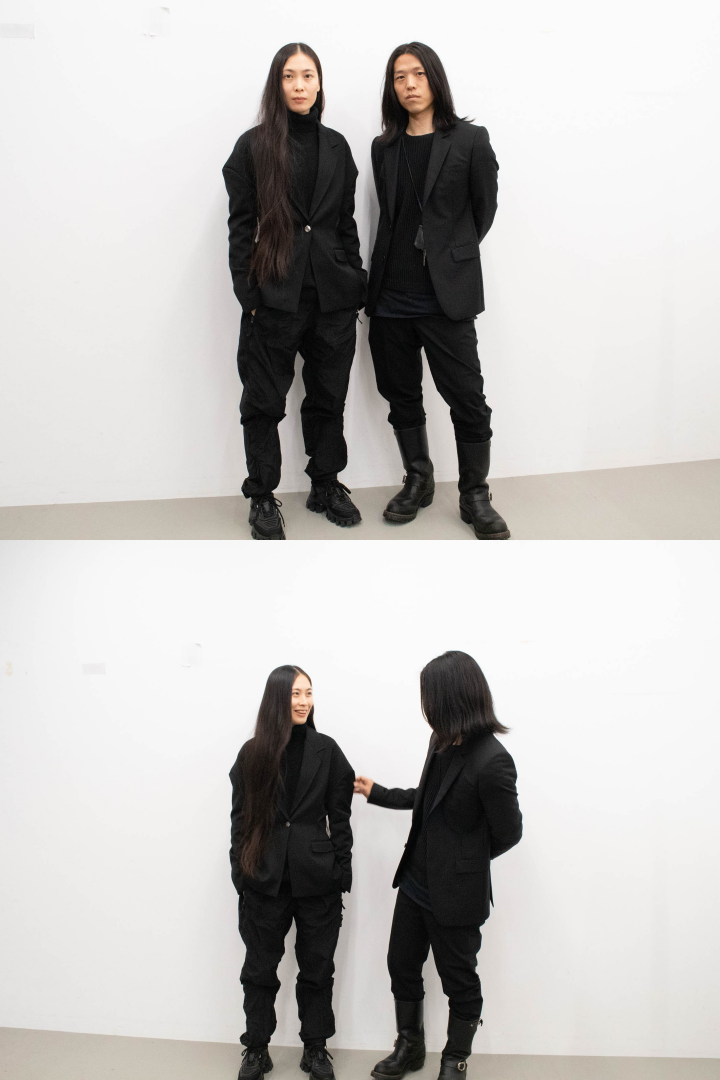 第2回は、「ガーウィン(GURTWEIN)」デザイナーの長谷川照洋とウィング・ライ(“Jianying” Wing Lai)。セントラル・セント・マーチンズ(以下、セントマ)で出会い、「ジバンシィ(GIVENCHY)」、「バーバリー(Burberry)」を率いたリカルド・ティッシ(Riccardo Tisci)のもとで経験を積んだ。私生活でもパートナー関係にある2人は、日本と中国で生まれ、イギリスでファッションを学び、フランスのメゾンでイタリア人のデザイナーと働き、現在は日本でコレクションを作るという国際的なバックグラウンドを持つ。東京での初めての展示会を終えた2人は、これから日本という環境でどのようなものづくりを目指すのか。学生時代から現在までの軌跡を紐解く。