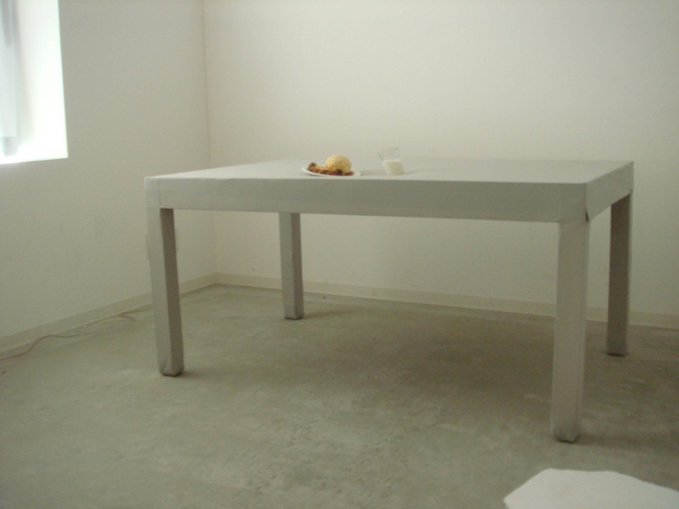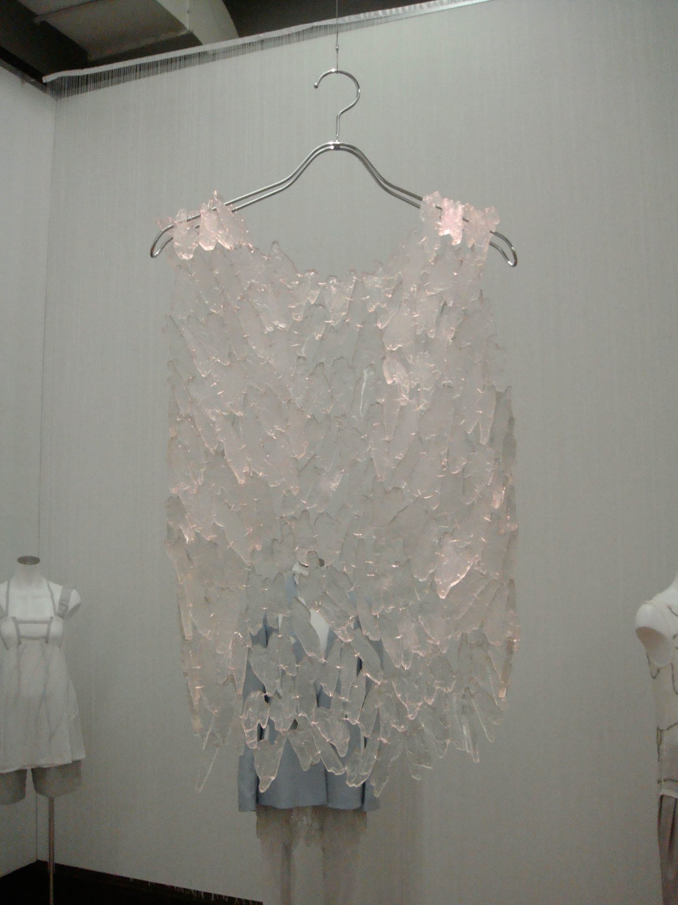 卒業制作では友人3人と架空のブランドを立ち上げて服を作りました。木の破片を型に取って、樹脂で透明のピースを作って、それを繋ぎ合わせてベストを作ったり。他にも、服ではなく「不安定も楽しむ」ためのダイニングテーブルというものを作りました。食事の際に食器を置く場所の統計を取って導き出された、テーブルの上の「多くの人が食器を無意識に置きやすい場所」をあえてくり抜いて柔らかい素材に差し替えたテーブルです。何気なく食器を置くとテーブルが柔らかくて食器が安定しないんです。