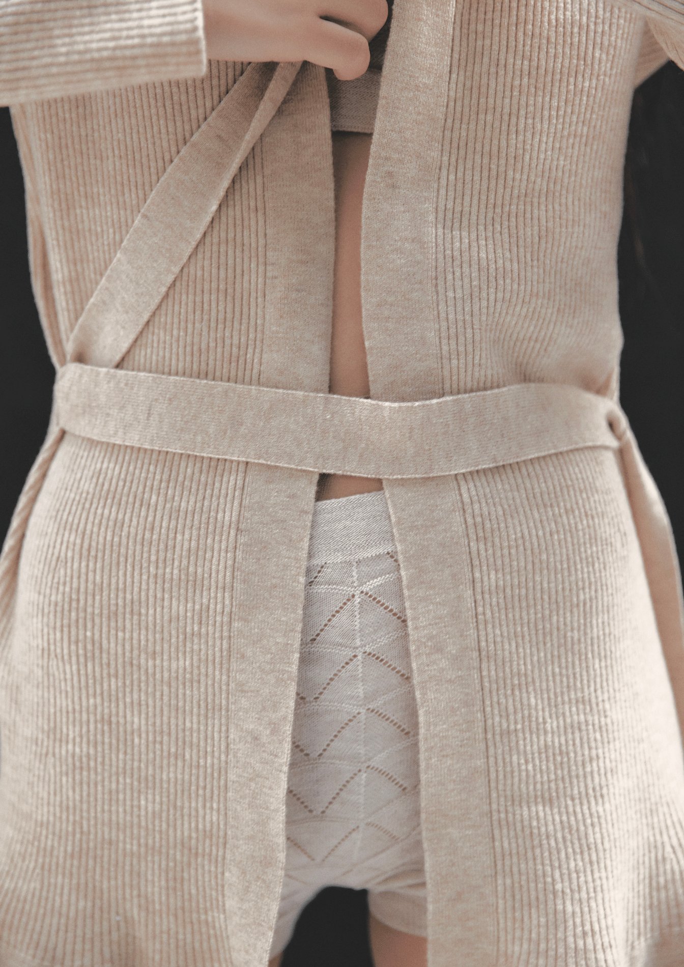 杉田:抑圧の中にあるからこそ自由を感じることができる。ニットという素材の特性上、肌への密着感はありつつも、自分の身体に沿って服の形が自由に変化していくなと、私も実際に今シーズンのアイテムを着させていただくことで実感しました。
