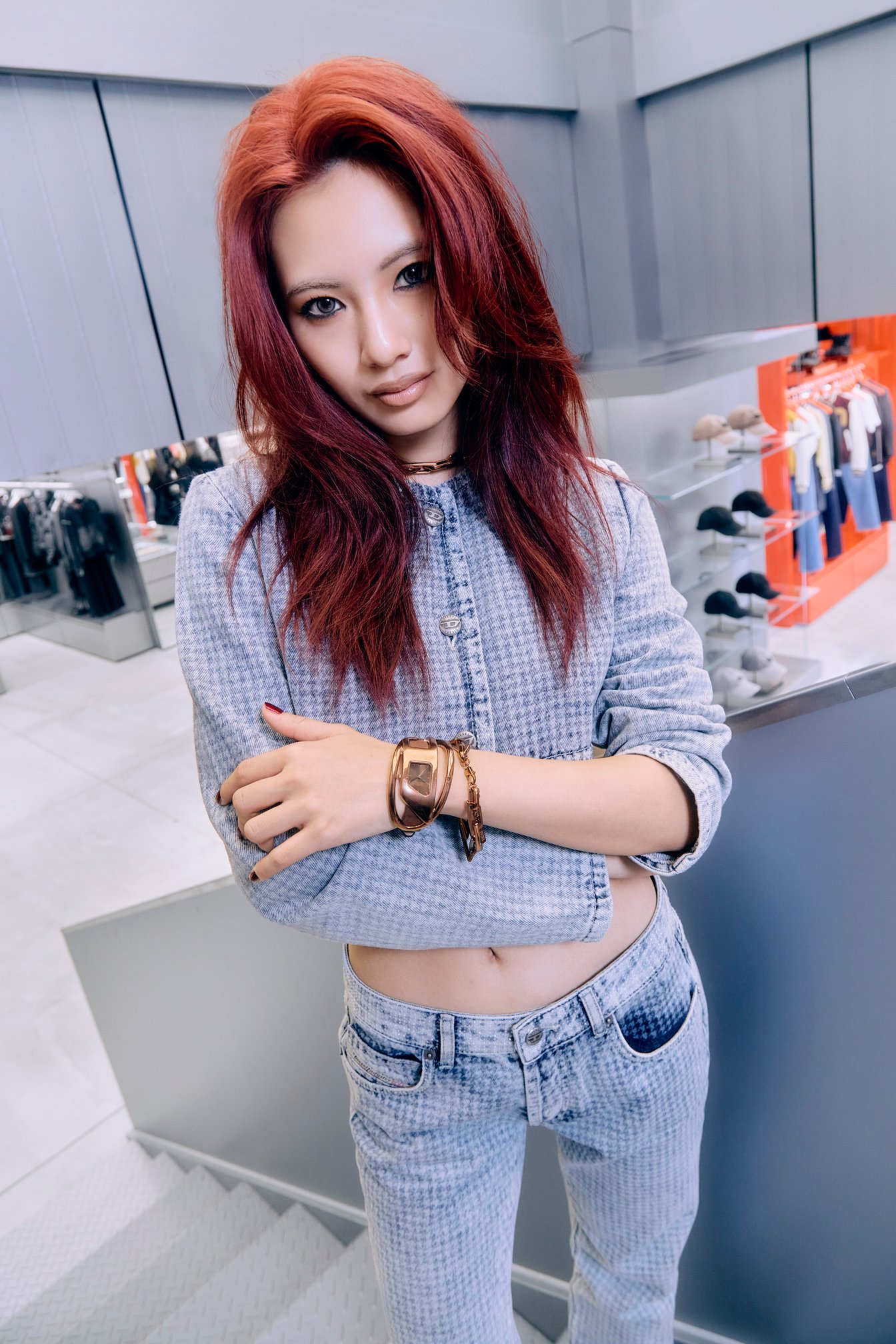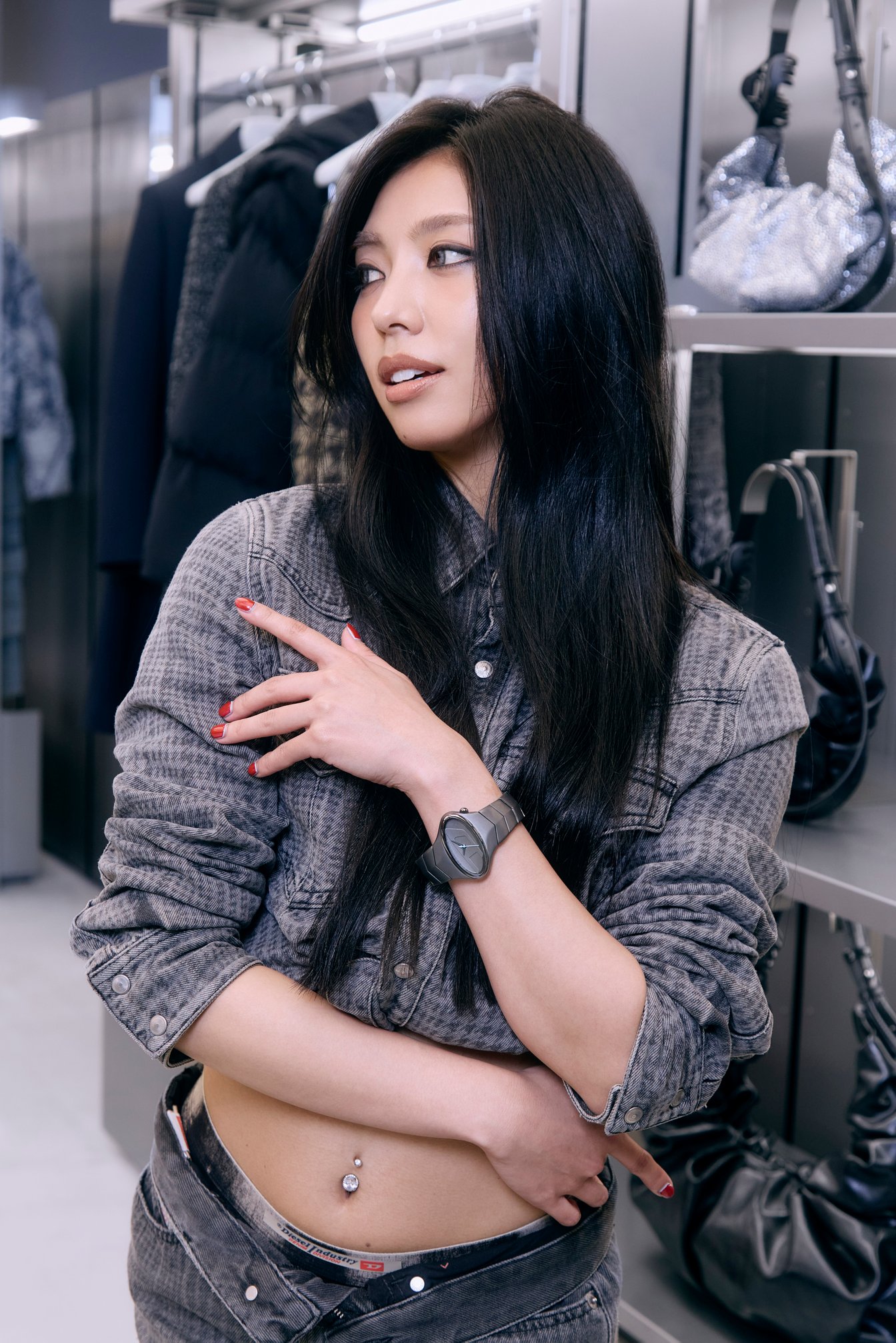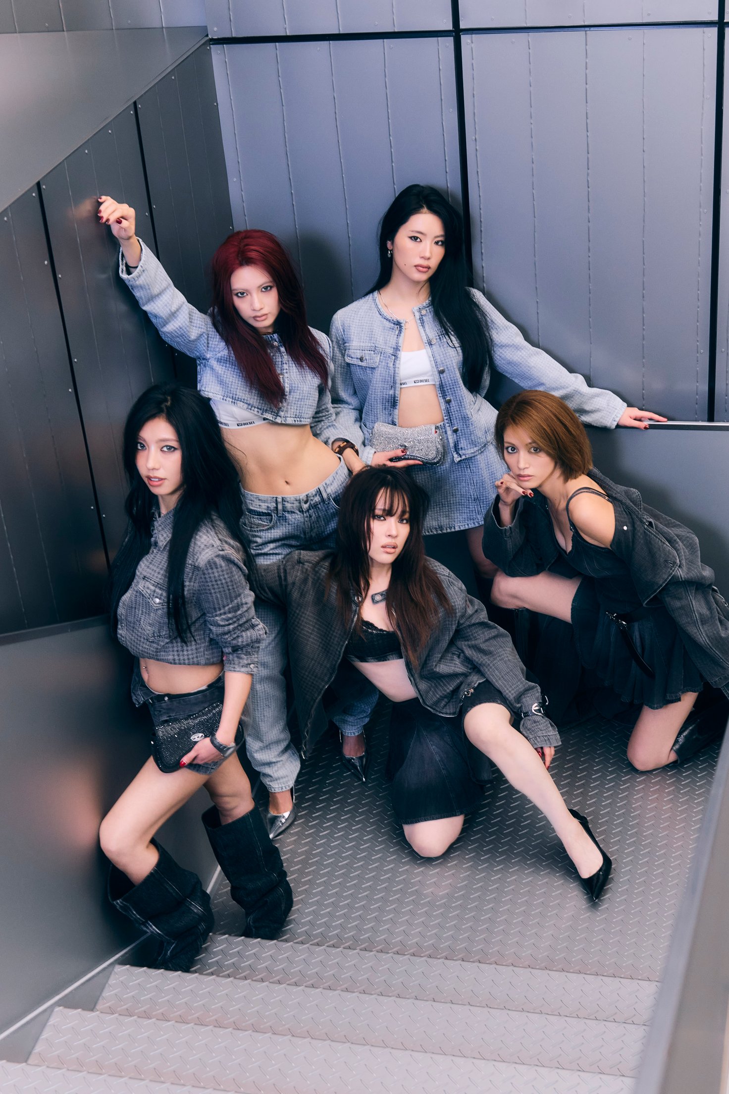 衣装やプライベートでもディーゼルを愛用しているというf5ve。デニムセットアップを軸にした多様な着こなしは、メンバーそれぞれの個性を際立たせ、5人によって生み出されるエネルギッシュなアティチュードと呼応する。ディーゼルのエッセンスを手軽に取り入れられるアクセサリーやウォッチをプラスすれば、よりパワフルなガールクラッシュスタイルが完成。