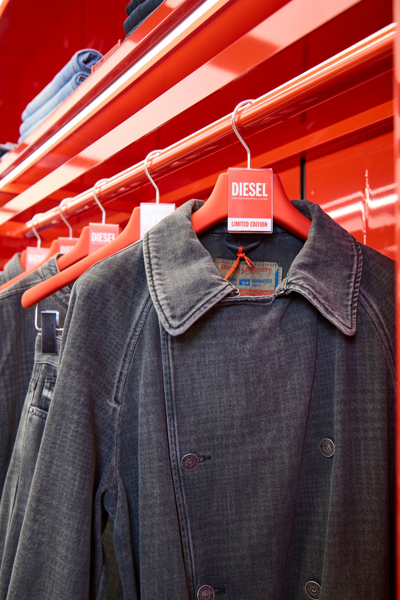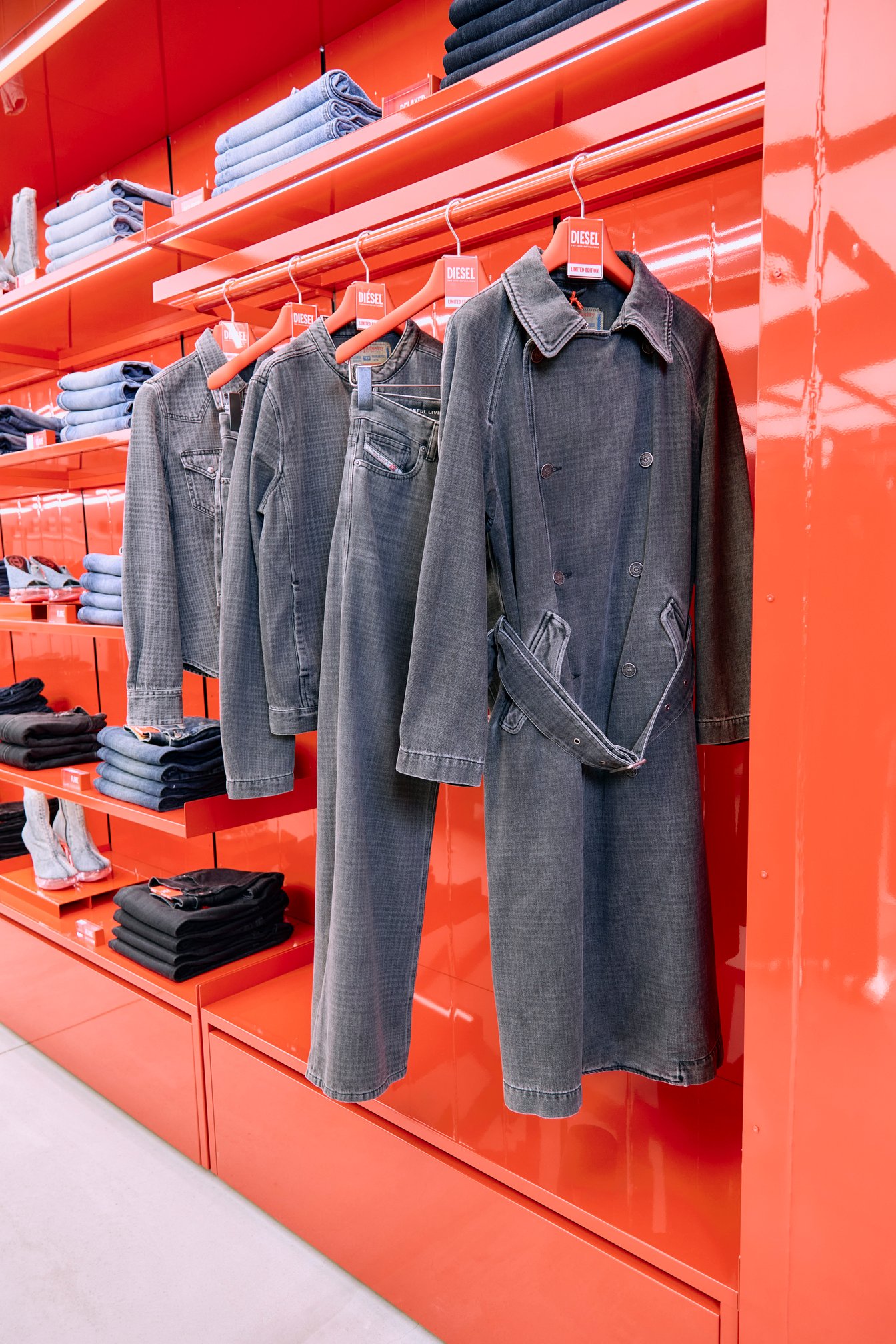 2025年秋冬コレクションに連動した〈DIESEL FUKUOKA〉限定カプセルコレクションも登場。千鳥格子柄のデニムアイテム8型がダークグレーとブルーでラインナップ。ロングコート(¥151,800)やジャケット(¥71,500)、デニムシャツ(¥45,100)はユニセックスで楽しむことができる。