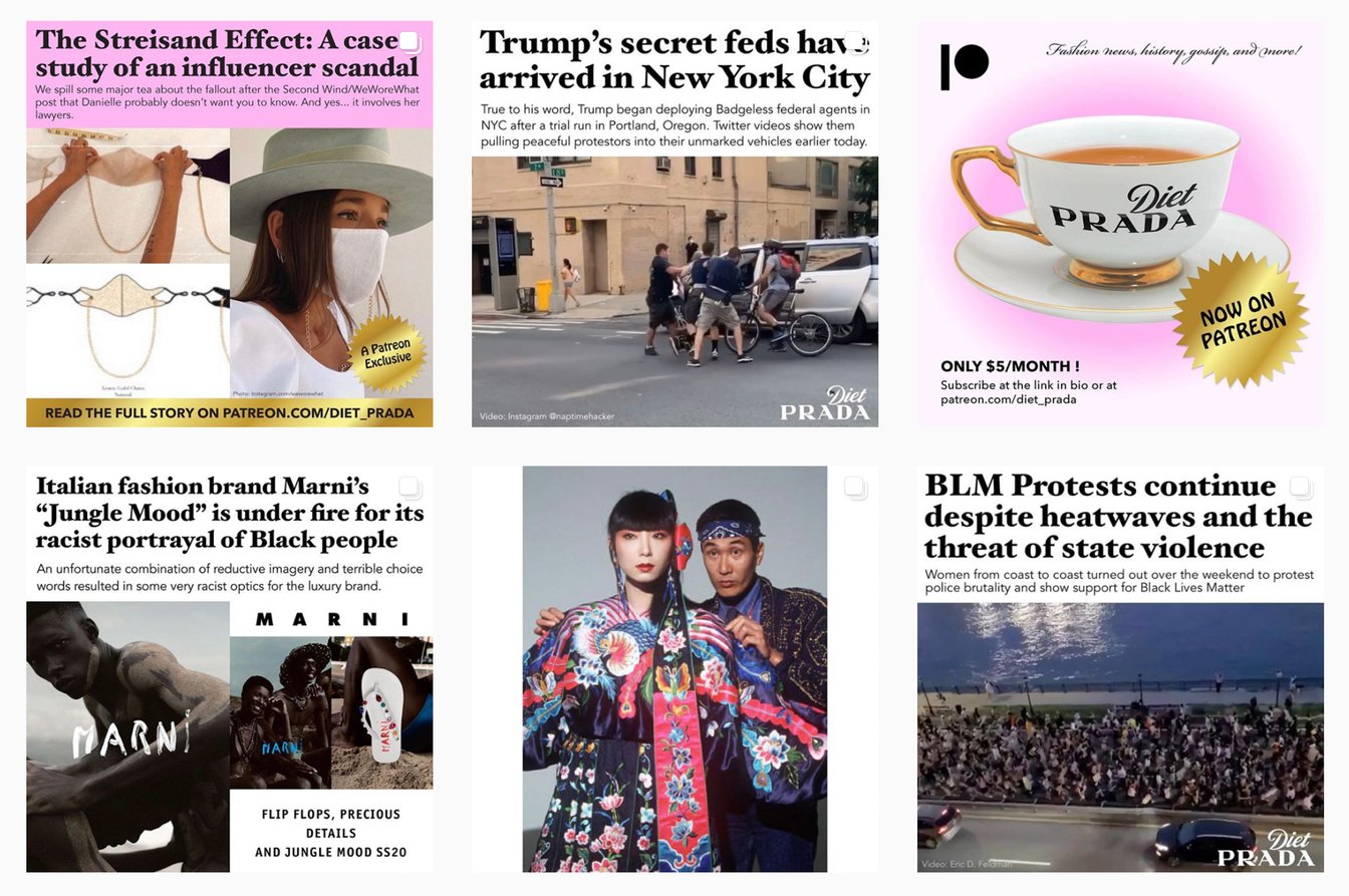 人気が拡大するにつれて、DPはジェンダーや人種にまつわる社会正義を語る政治的プラットフォームの色を増していった。最大のトピックは、宿敵ガッバーナを相手取った中国市場追放危機だろう。2018年、ドルチェ&ガッバーナのキャンペーン動画を人種差別的だとする議論を盛り上げたのも、のちにガッバーナがDMで放った中国人罵倒をリークしたのもDPである。同年、グッチのフェイスマスクも人種差別的だと糾弾した彼らは、賛否両論を呼び起こしつつも、攻撃の手をゆるめることはなかった。その矛先は、ファッションが専業ではないセレブリティにも及ぶ。2019年には、米歌手アリアナ・グランデ(Ariana Grande)のツアー衣装の資料集をリークし、そこにリアーナなど黒人アーティストの写真が多く掲載されていることを理由に「アリアナが黒人の美学を盗用している証拠」だと突きつけた。マジョリティたる白人がマイノリティ文化とされるクリエイションを流用する「カルチュラル・アプロプリエーション(文化の盗用)」批判と言える。この概念には西洋でも賛否がある為、DP側の主張に頷けない人も多かった。そのうちの一人であるアリアナのスタイリスト、ロウ・ローチ(Law Roach)は、黒人男性である自分が当該資料を制作した旨を説きながら「盗用・盗作」批判に怒りの反論をぶつけている。「ファッション産業にリアーナから影響を受けていない人間が存在するとでも!?」。このような経緯によって、DPはファッションにおける「キャンセルカルチャー」の象徴となった。DPの運営者が「コールアウト」と呼ぶその活動は、おもに問題とされる言動をとった人物や企業を公的に批判して罰を下す手法だ。インターネットを介した「炎上」が増加した近年、こうした"告発"は、批判対象のキャリア自体を"キャンセル"しようとする「キャンセルカルチャー」と呼ばれることが多い。