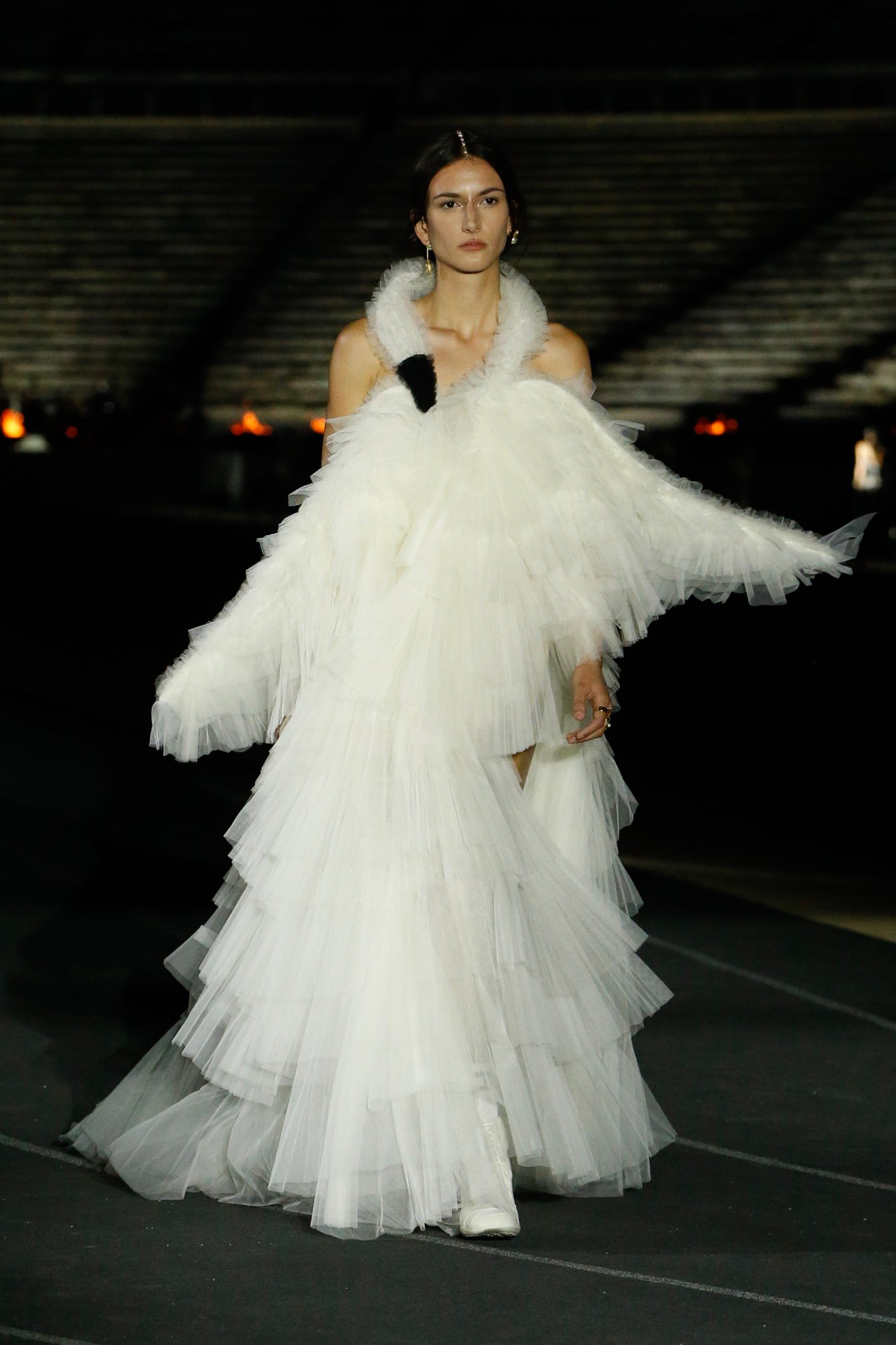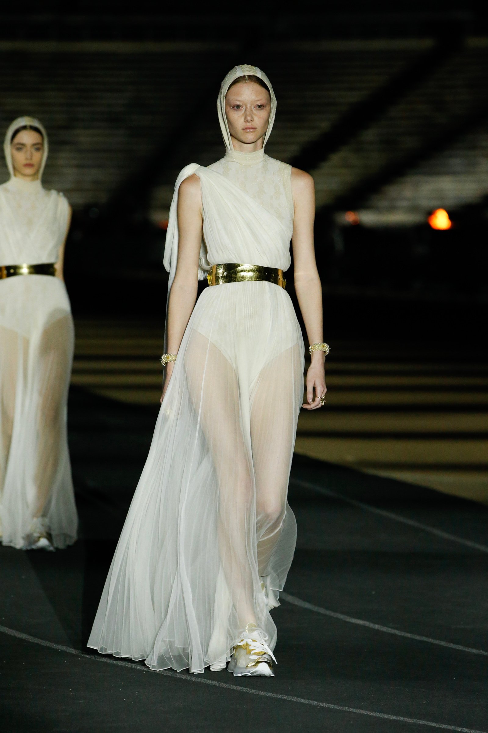 なお、今回のコレクション映像は事前に撮影されたものではなく、一部観客を招いてフィジカルでショーを開催しライブ配信した。オーケストラの生演奏とギリシャ系アメリカ人のシンガーソングライターIoanna Gikaの歌声が総大理石のスタジアムに響き、フィナーレでは花火が打ち上がる圧巻の演出。聖地アテネとメゾンの歴史をつなぐショーとなった。