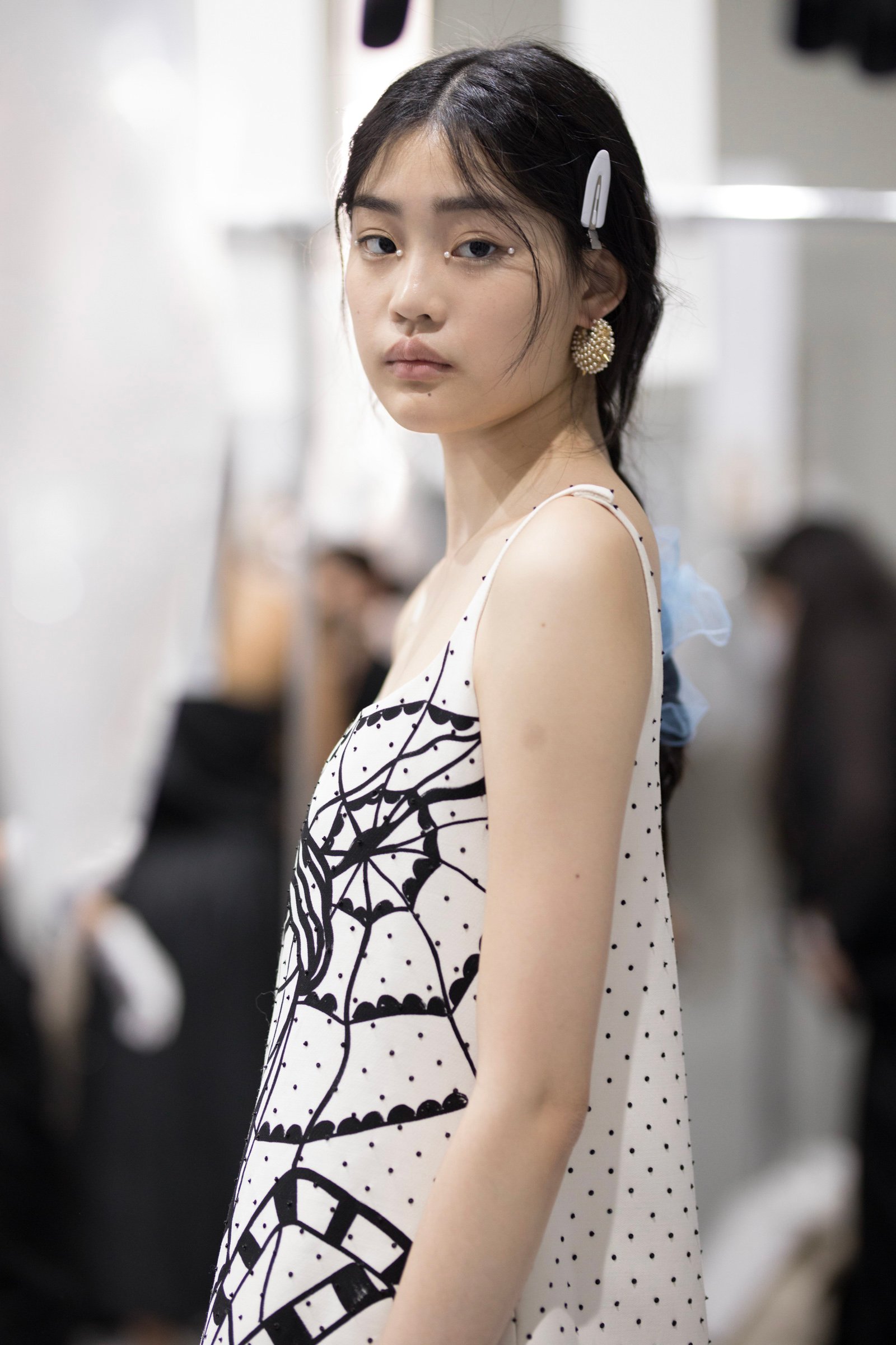 メゾンのコードのひとつでありマリア・グラツィアがこれまでも提案してきたペプロス(長衣)のドレープや、カリアティード(女像柱)を連想させるシルエットのドレスが多く登場したが、今回はより現代的な解釈が取り入れられた。テクニカルな素材で仕立てたり、斬新なカットワークやフードがデザインされていたり、多様な手法でアップデートしている。