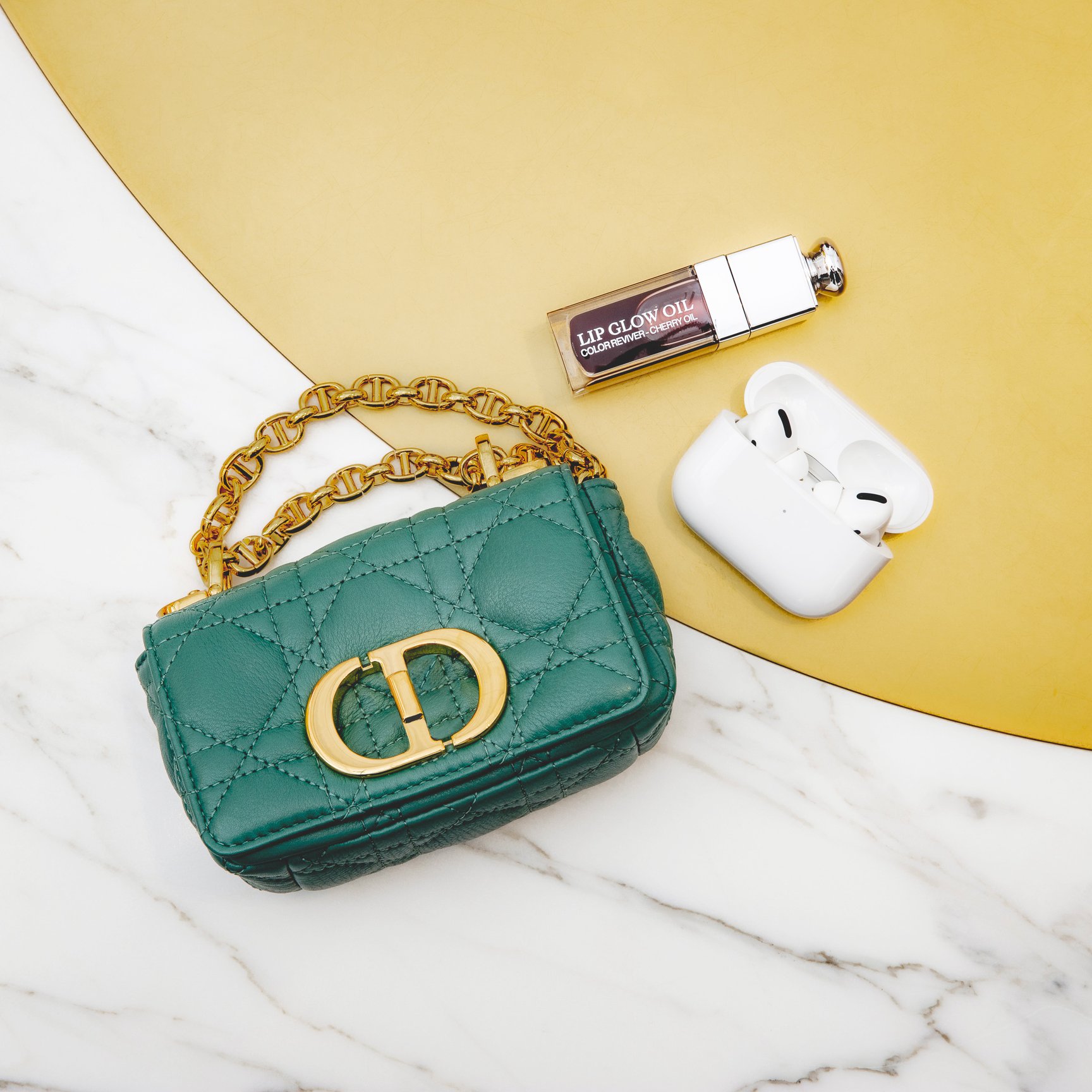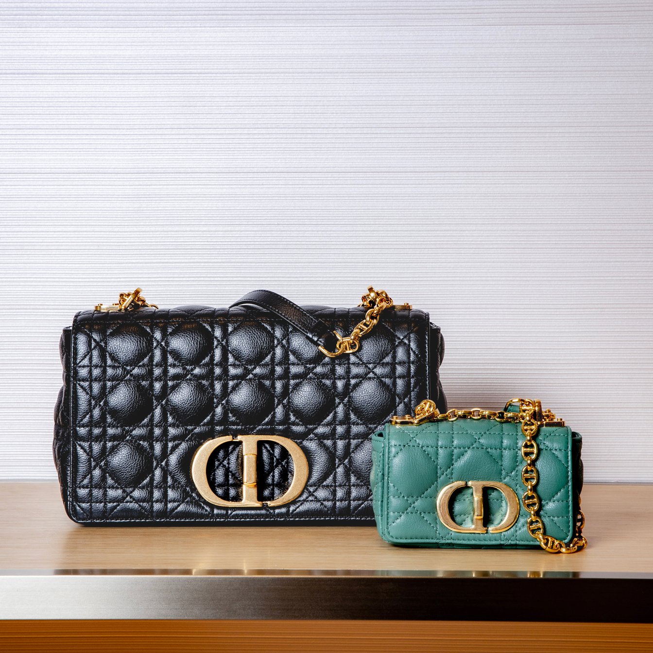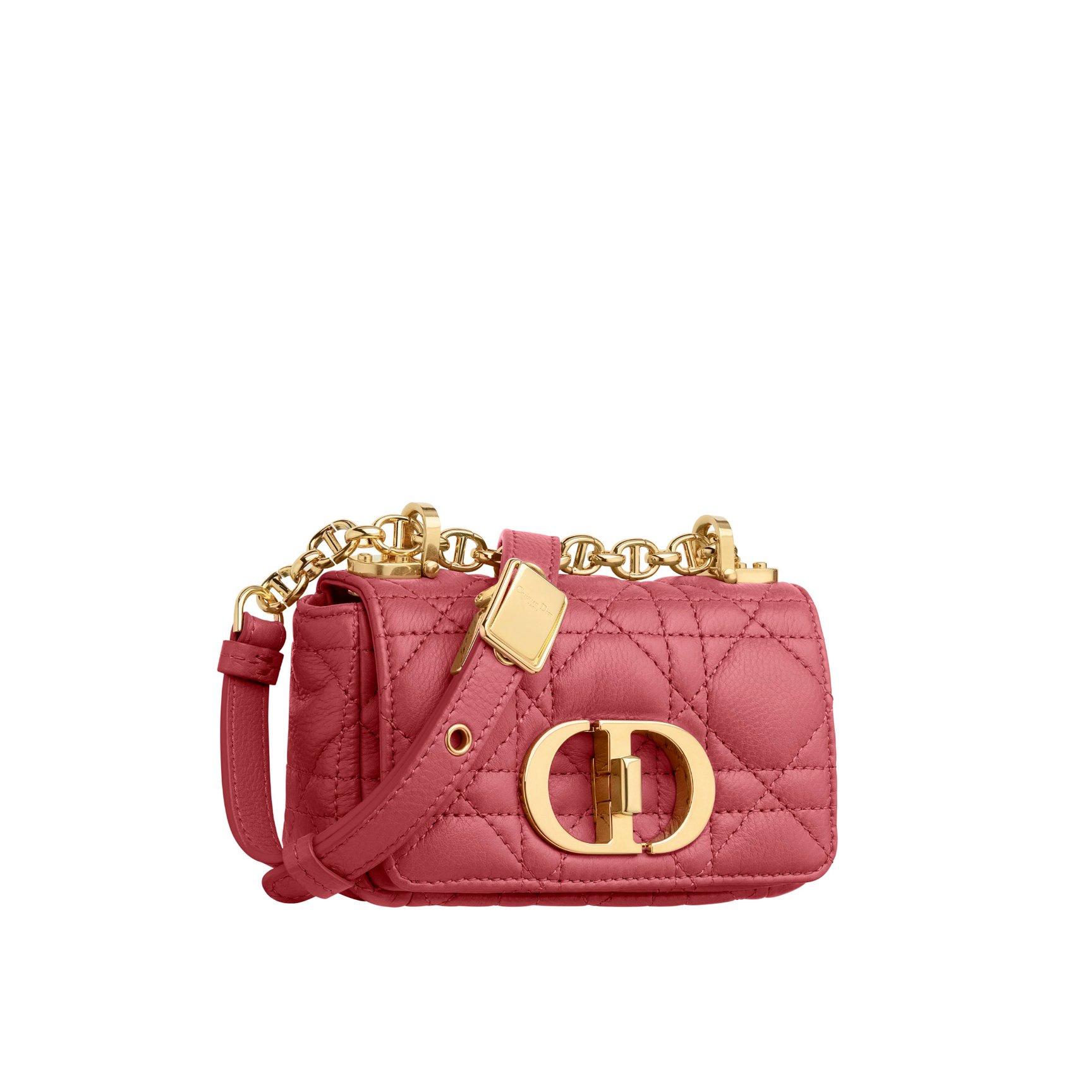 4つのバッグの中では一番の新顔となる、2021年クルーズ コレクションで登場した「ディオール カロ」。アイコニックな香水「ミス・ディオール」のミューズでもあり、ムッシュが愛してやまなかった妹・カトリーヌにオマージュを捧げており、彼女の愛称である「カロ」の名が付けられています。レディー ディオールと同様「カナージュ」ステッチが施されたモダンなデザインで、チェーンのショルダーストラップはまるでアクセサリーのよう。マイクロバッグのラインナップの中でも、ひときわキュートなサイズ感です。
