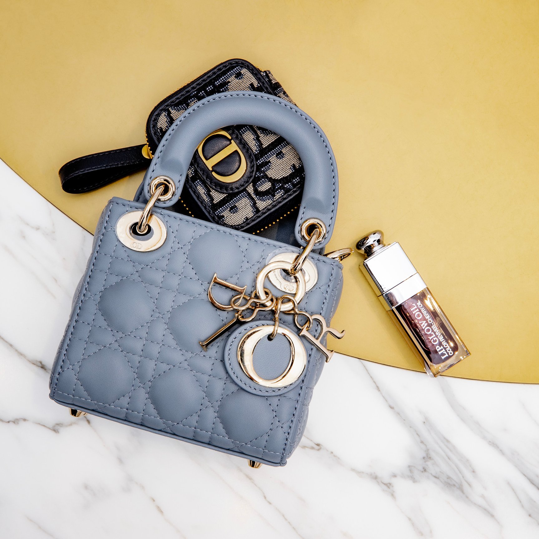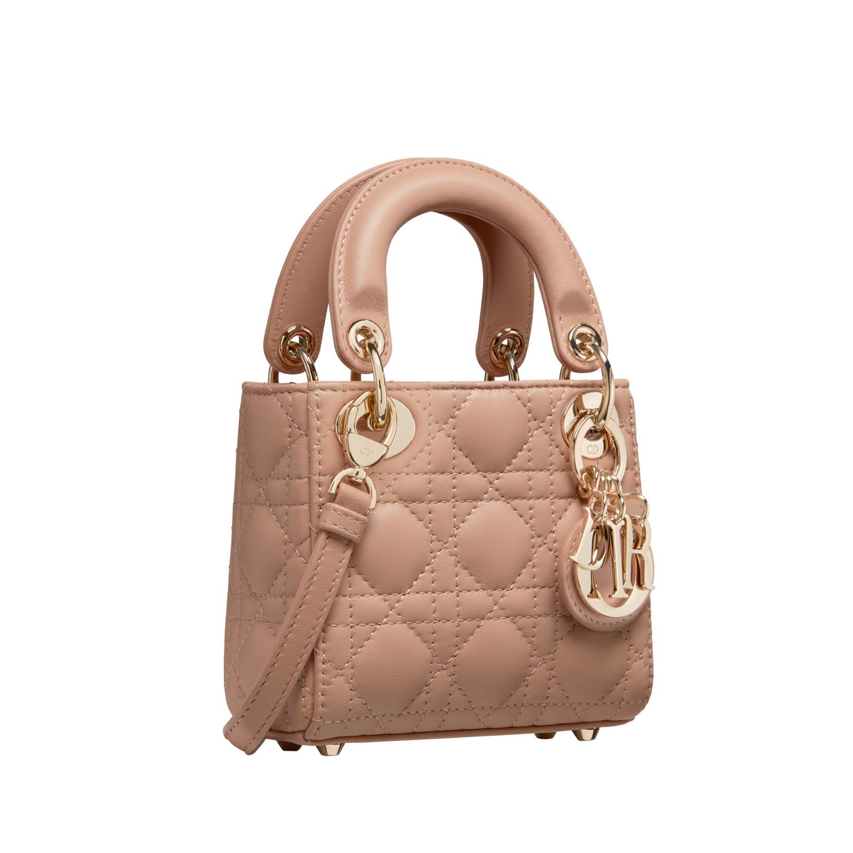 ムッシュ ディオールが最初に発表したオートクチュールコレクションのショーで、顧客のために選んだ籐椅子に施された編み目「カナージュ」はメゾンを象徴するコードの一つ。元々は「カナージュ キュイール」という名前のバッグでしたが、ダイアナ元妃に愛されたことから彼女に敬意を込めて1996年に「レディ ディオール」に改名されたことでも知られ、20年以上経った今でもタイムレスでエレガントな魅力を放つ、レディの憧れバッグです。上質なラムスキンに施されたぷっくりとしたキルティングのステッチはマイクロサイズでも顕在。まさにディオールならではの魅力が詰まった逸品です。