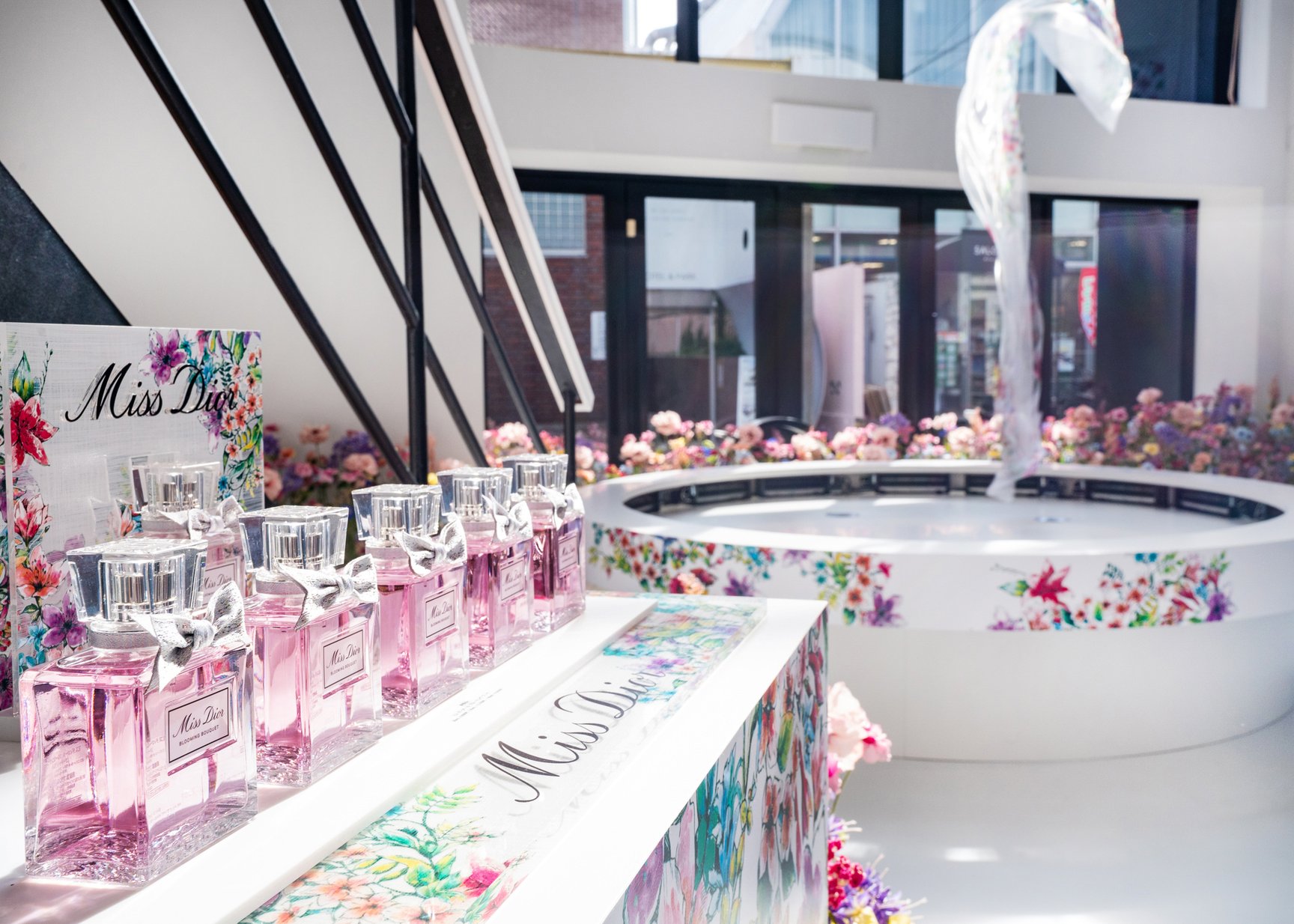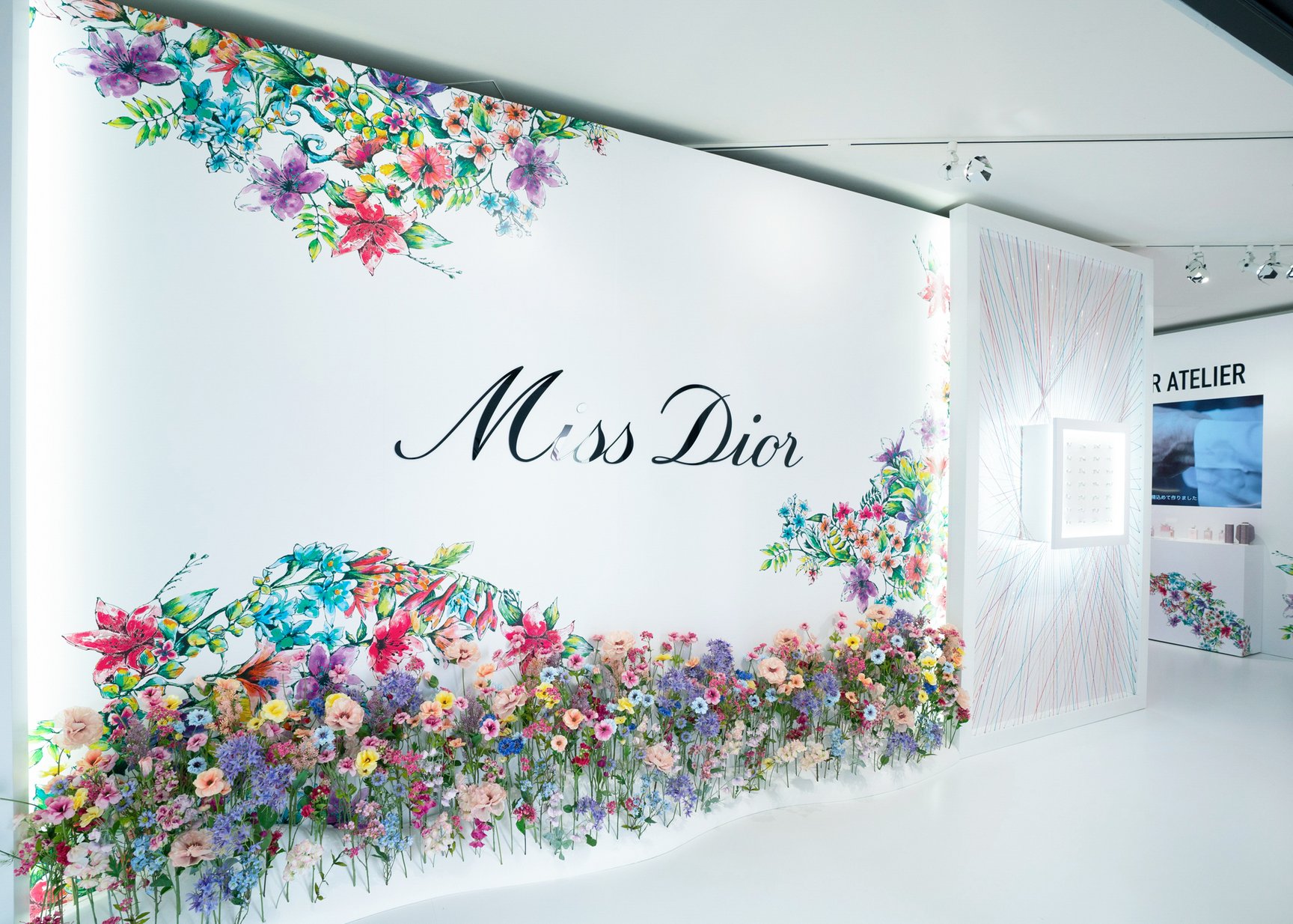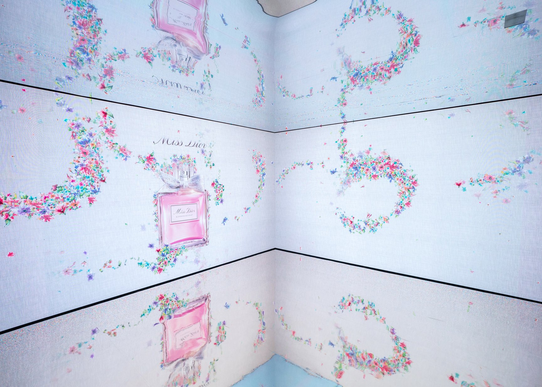 ミス ディオール ボディー ミルク、ヘアミストやハンドクリームなどを試した後は、イマーシブルームで舞い踊る花々に囲まれます。