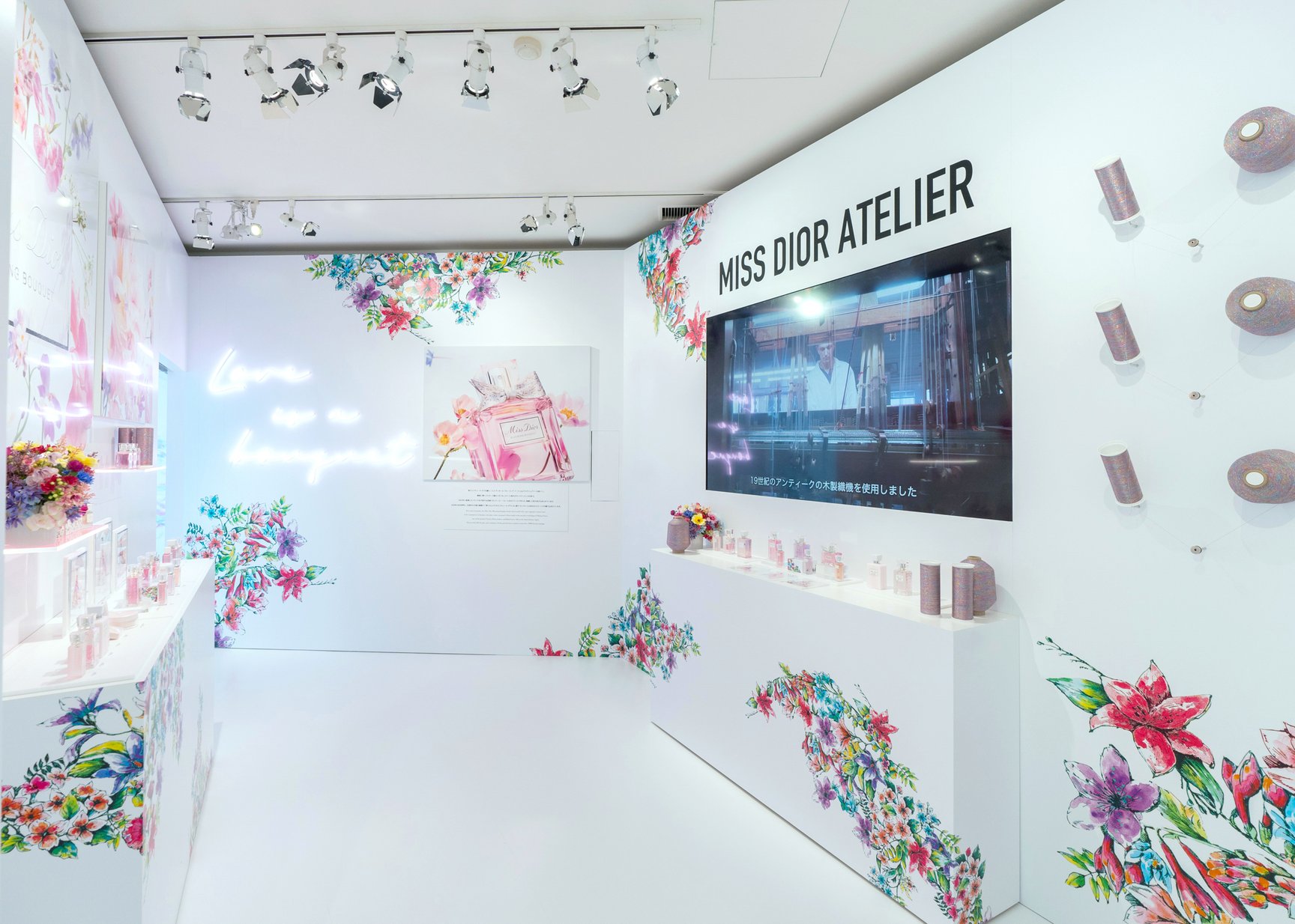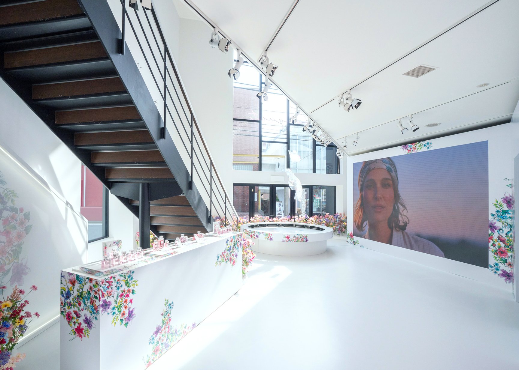 愛の喜びを描き出したミス ディオール ブルーミング ブーケの香りを、色鮮やかなあふれんばかりの花々で表現。バーチャル ブティックでは、ミス ディオールが映し出す愛の詩をナタリー・ポートマンが朗読するコンテンツがとっておきのひと時を演出します。2階のブティックでは心が躍る限定品や大切な人に贈りたいパーソナライゼーションサービスも。