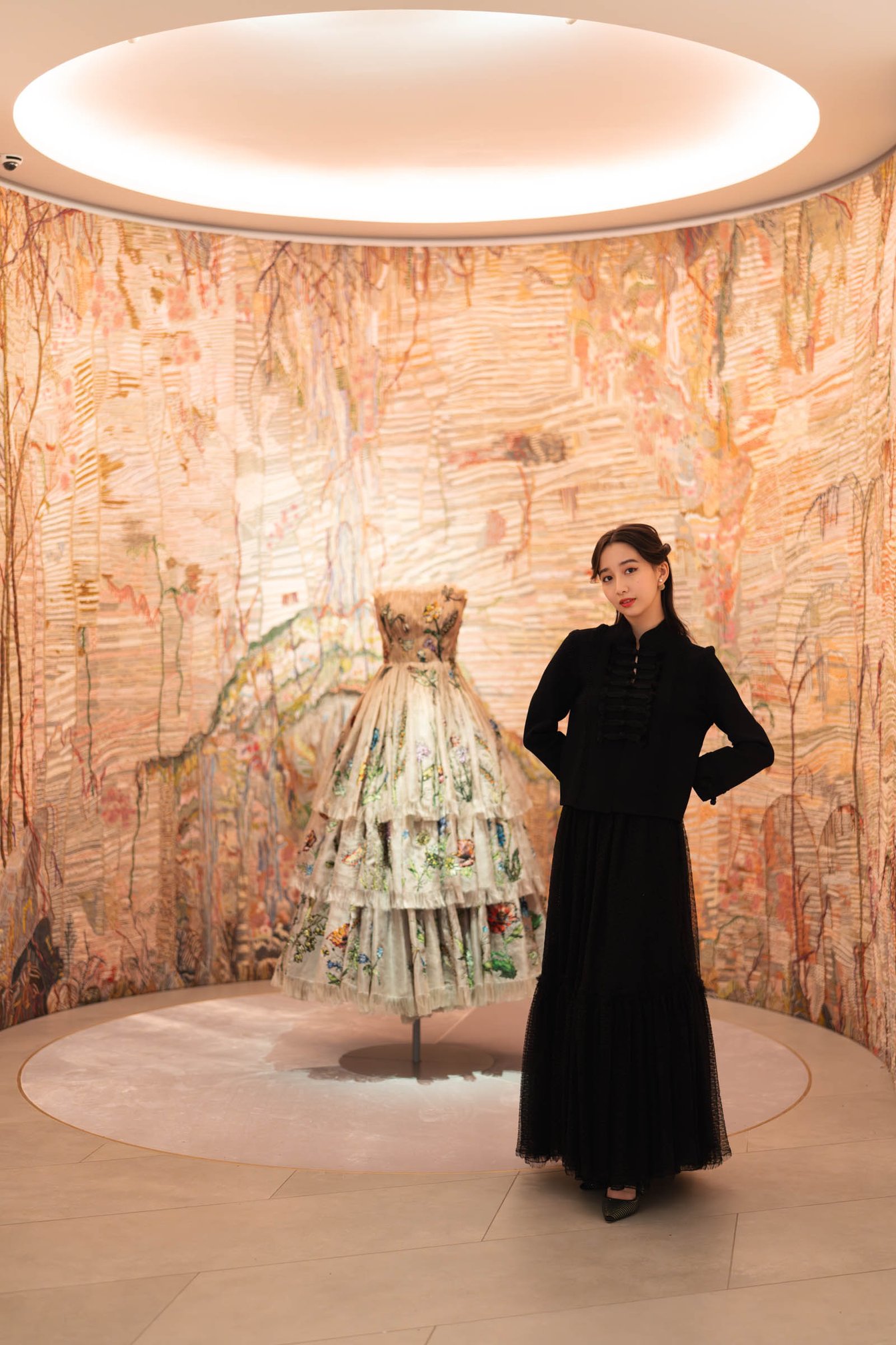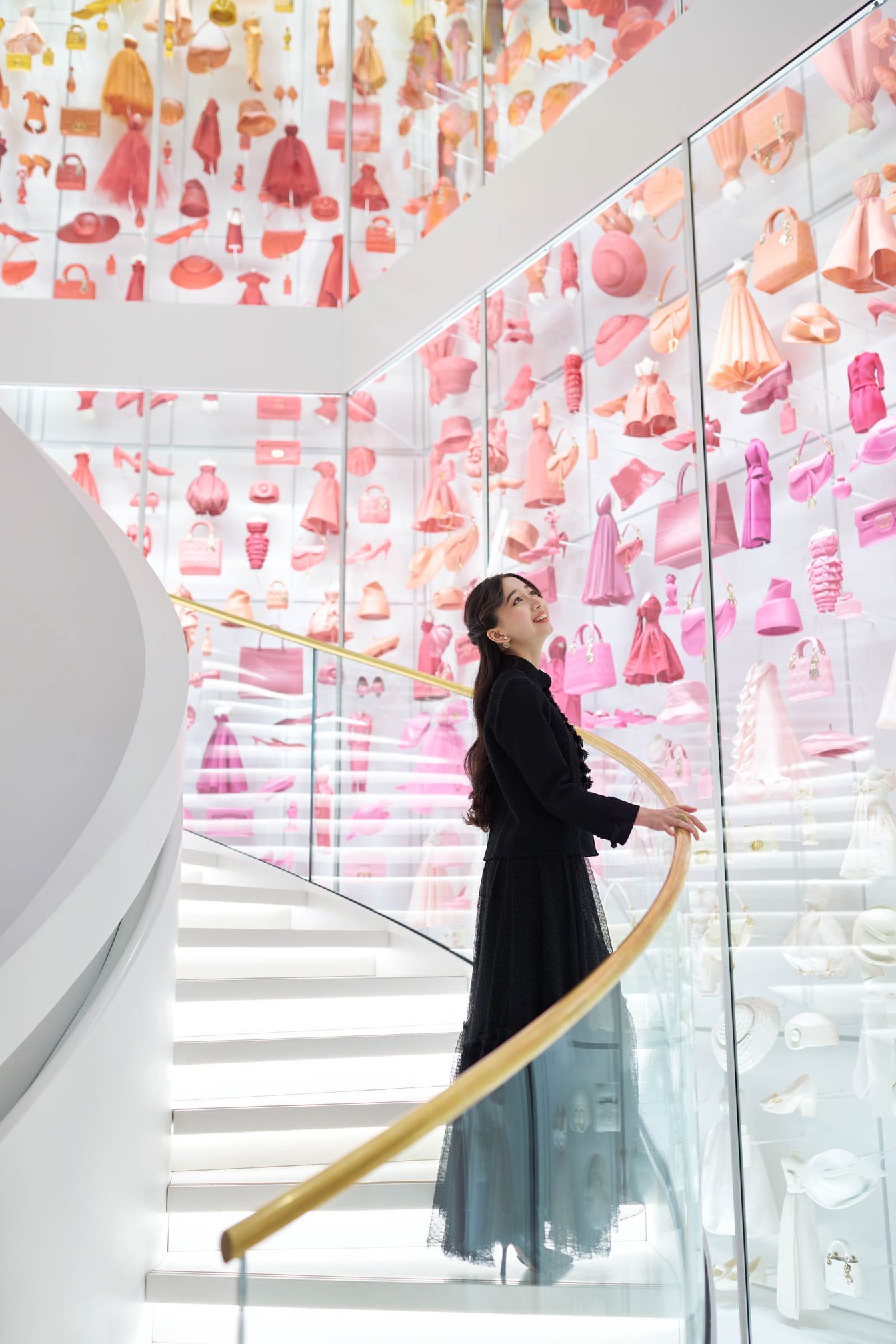 メゾンの貴重なアーカイヴを観賞できる「ラ ギャラリー ディオール」。ブティックに隣接した建物のエントランスを入ると、吹き抜けの螺旋階段を囲むように、約450点のドレスや1000点以上のアクセサリー・バッグのミニチュアが並ぶ。さまざまなテーマで構成された展示スペースには、1947年にクリスチャン・ディオールが当時のエレガンスの概念を一変させたシルエット「ニュールック」をはじめ、6人の後継者たち(イヴ・サンローラン、マルク・ボアン、ジャンフランコ・フェレ、ジョン・ガリアーノ、ラフ・シモンズ、マリア・グラツィア・キウリ)が作り上げたコレクションが広がる。さらにフレグランスや、ムッシュ・ディオールにまつわる展示の数々が続き、メゾンの中核をなす、職人技と革新性を余すことなく公開している。