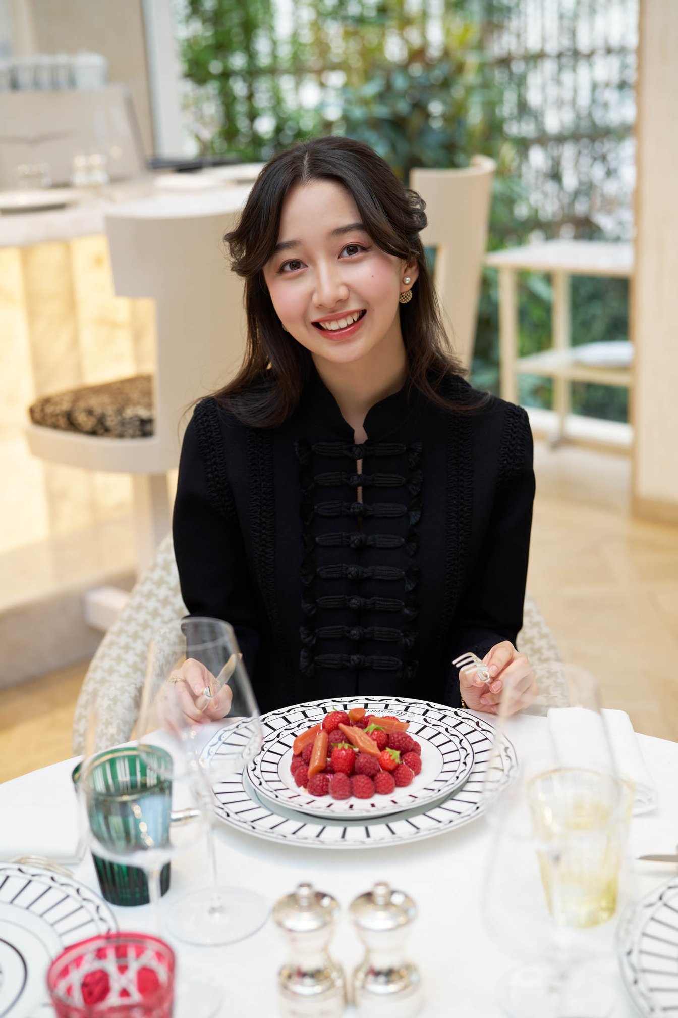 ショッピングの合間には「30 モンテーニュ」2階にあるレストラン「ムッシュ ディオール」でランチ。地元の食材を生かした前菜からメイン、スイーツまでさまざまなメニューから、Cocomiがデザートに選んだのはベリーをふんだんに使ったスイーツ。「甘いものが大好きなんです。ベリーが甘酸っぱくて、ほっぺたがとろけそうでした」(Cocomi)