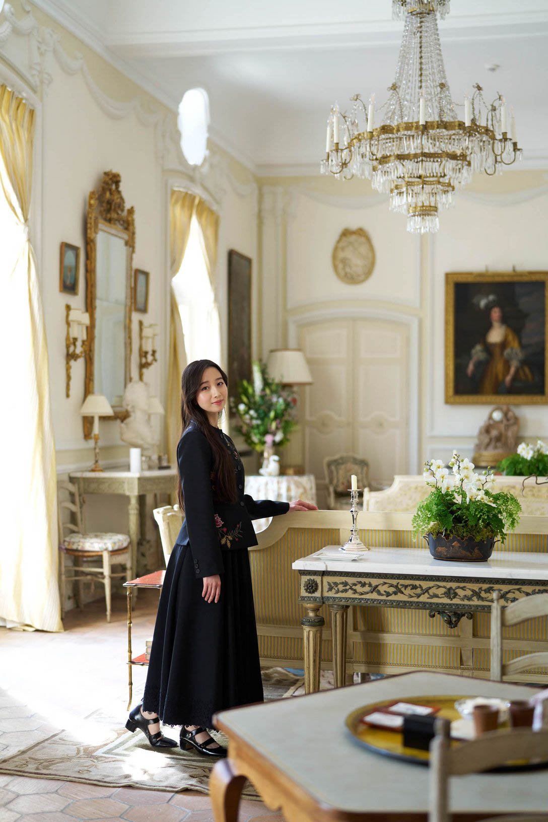 ムッシュ・ディオールがいた場所でCocomiを撮影。時代を超えても未だ、そのままの姿で残るラ コル ノワール城。「クラシック音楽をやっているからかもしれませんが、その時代の建物や家具、そして木々や花々も今なお、形を変えずにそこに自然と佇んでいることが、とても素晴らしいと思いました。歴史と美術が融合した空間。かっこ良すぎます」(Cocomi)。
