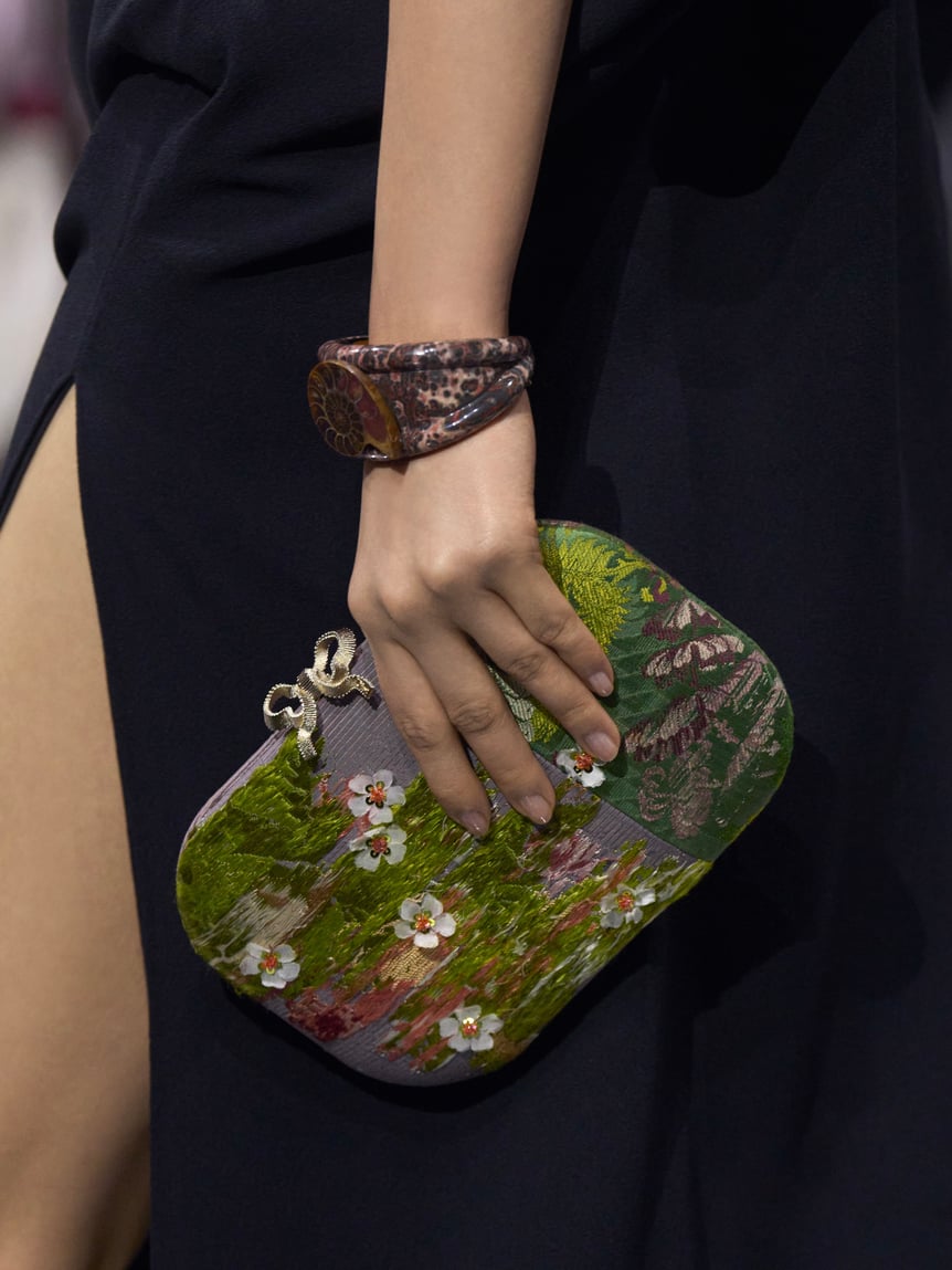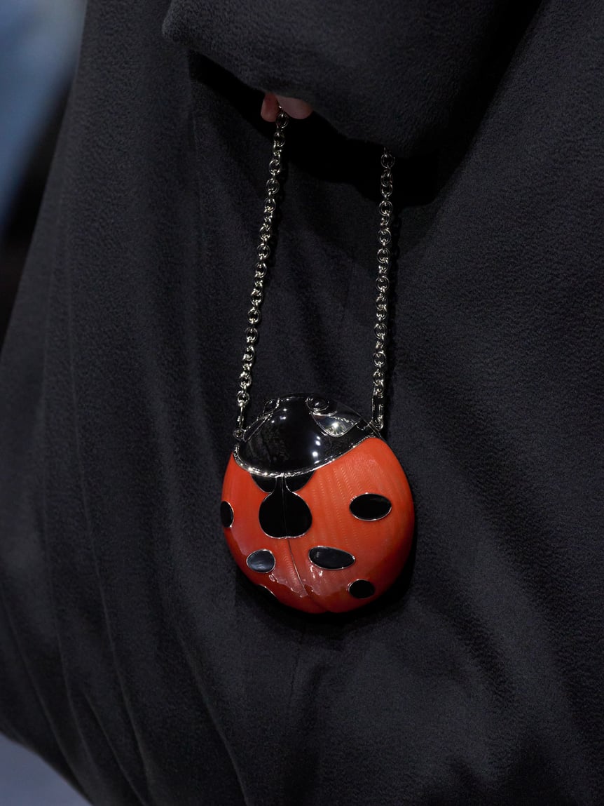 バッグやシューズにも物語が宿る。アイコニックな「レディ ディオール」は陶器のようなフォルムで再解釈され、アーカイヴのクッション、小動物やてんとう虫といった愛らしいモチーフも。