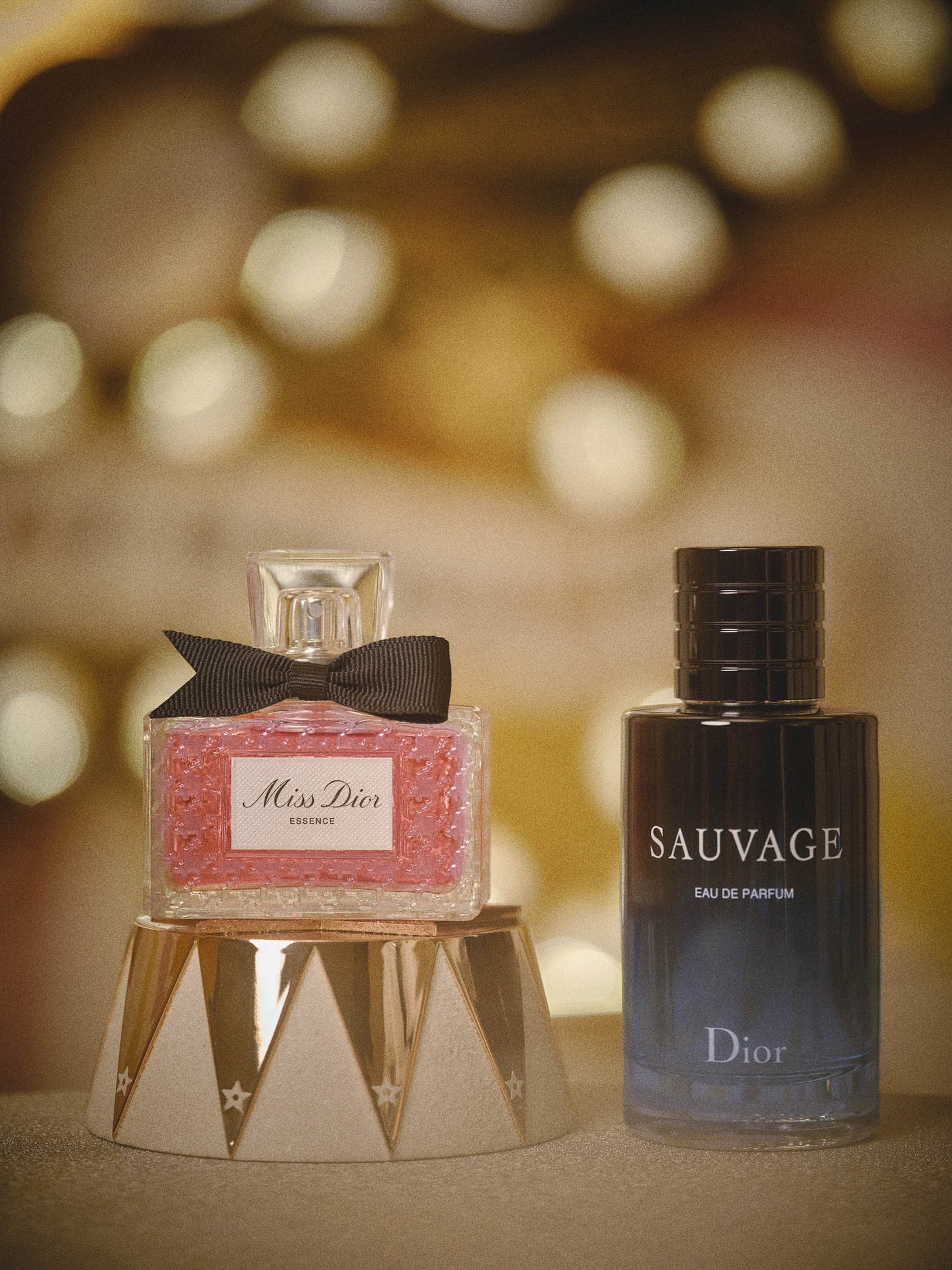「ディオール(DIOR)」の、ポジティブな気分にさせてくれる香り「ミス ディオール エッセンス」と、みずみずしくも温かく包み込むメンズフレグランス「ソヴァージュ オードゥ パルファン」が華やぎに満ちたホリデーシーズンを祝福する。