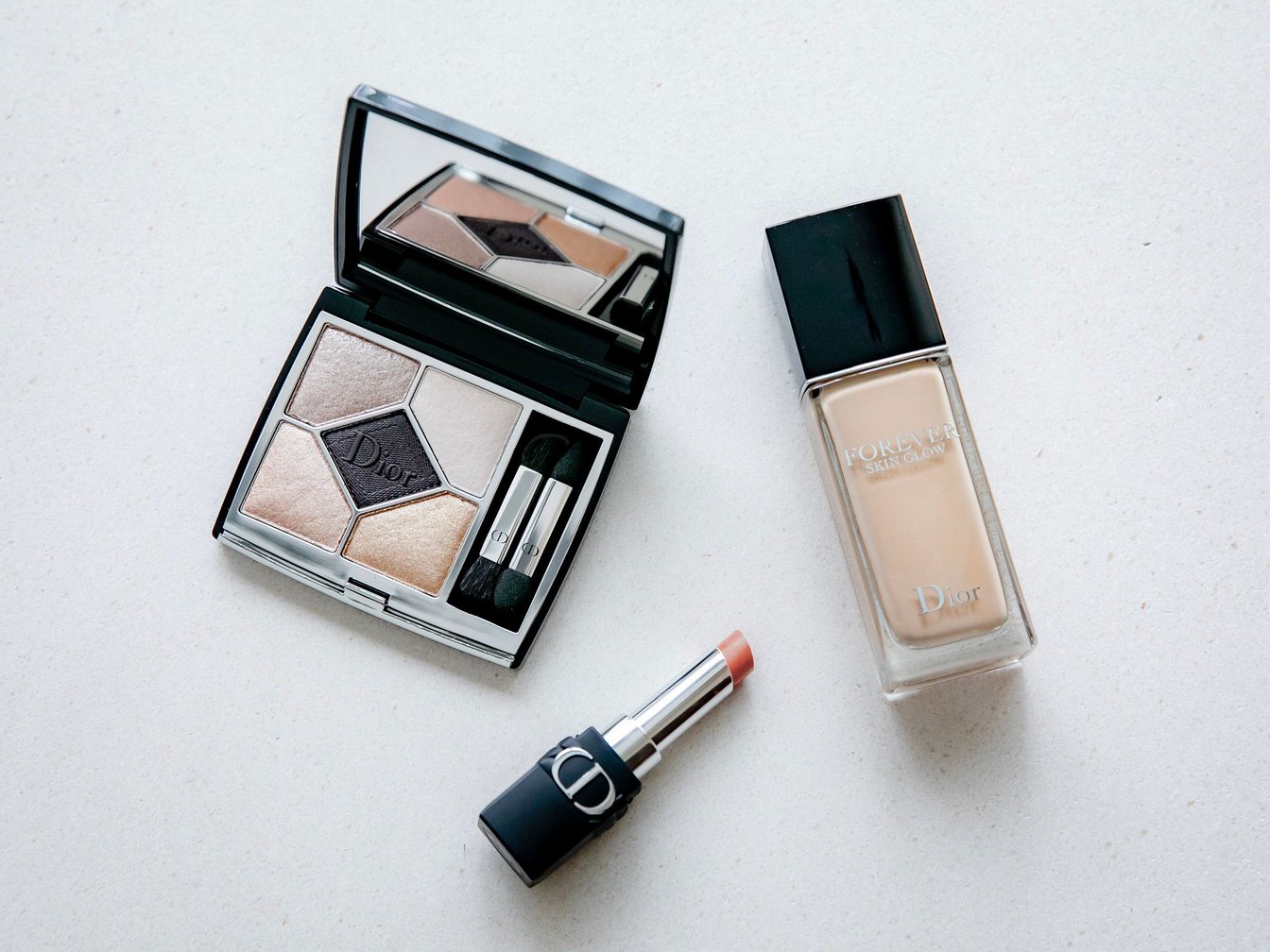 (左から時計回りに)サンク クルール クチュール 539 ¥8470/ディオールスキン フォーエヴァー フルイド グロウ(SPF 20/PA+++)¥7040/ルージュ ディオール フォーエヴァー スティック 458 ¥5500