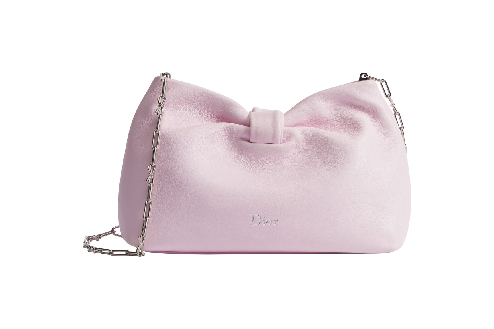 コレクションを彩る新たなバッグ「ディオール ボウ(Dior Bow)」は、メゾンコードである「リボン」の形をしたユニークな構造と、実用性を兼ね備えたフォルムが特徴。フロントに“Dior”ロゴをあしらい、メタル製リボンを編み込んだチェーンや隠しクロージャーを備える。スモールとミディアムの2サイズ展開で、ブラック、ドリーミーピンク、トルマリン、バターカップイエロー、エルミタージュ、 ラテホワイトといった多彩なカラーパレットや、「バターカップ ガーデン」などのモチーフを刺繍したスペシャルモデルもラインナップする。
