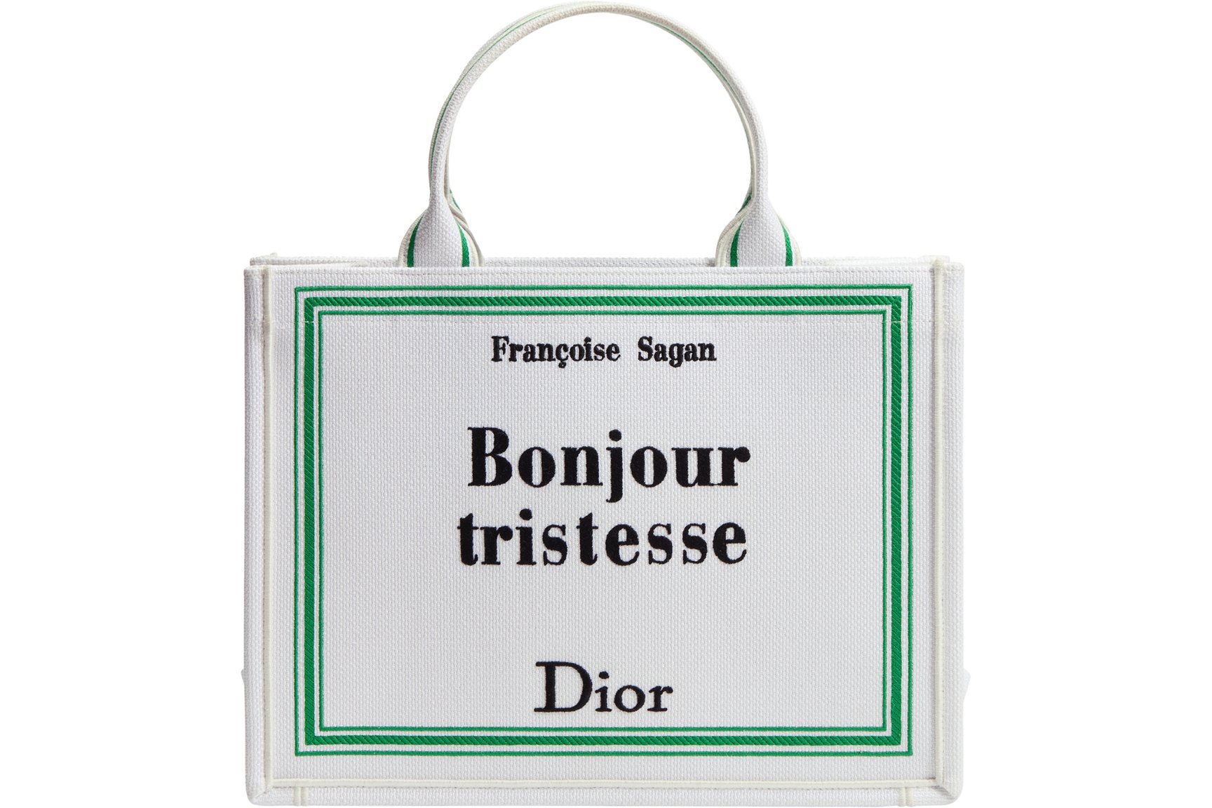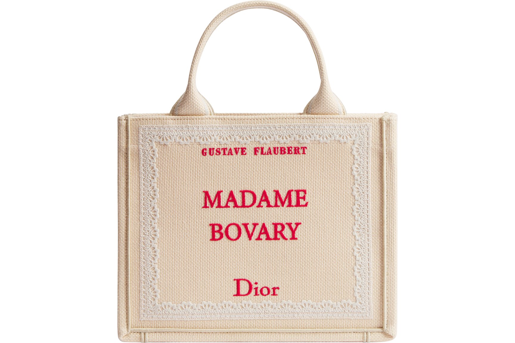 アイコンバッグ「ディオール ブックトート(Dior Book Tote)」からは、ジョナサンの新たな解釈により“本の表紙”をオマージュした「ブック カバーズ」シリーズが登場。ムッシュ ディオールの自伝「Dior by Dior」をはじめ、ピエール・ショデルロ・ド・ラクロの「危険な関係」やギュスターヴ・フローベールの「ボヴァリー夫人」、ギュスターヴ・フローベールの「悲しみよこんにちは」といった名作古典小説の装丁を刺繍で表現した。そのほか、ヴィンテージ加工を施し、繊細なレースの縁取りをあしらった「ディオール オブリーク」や、花の刺繍で新ロゴを表現したモデルなど、メゾンやムッシュ ディオールのヘリテージを物語るアイテムが揃う。
