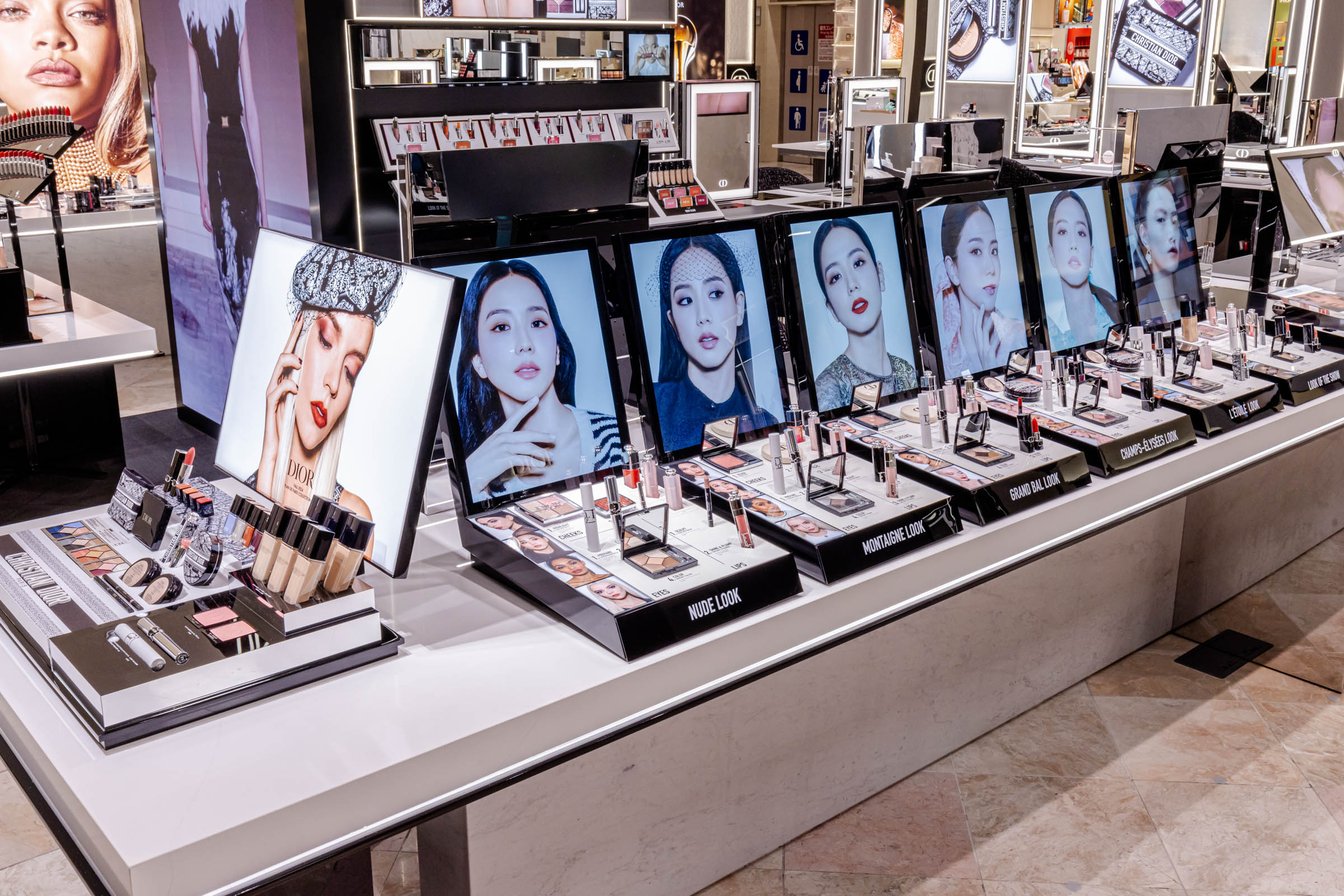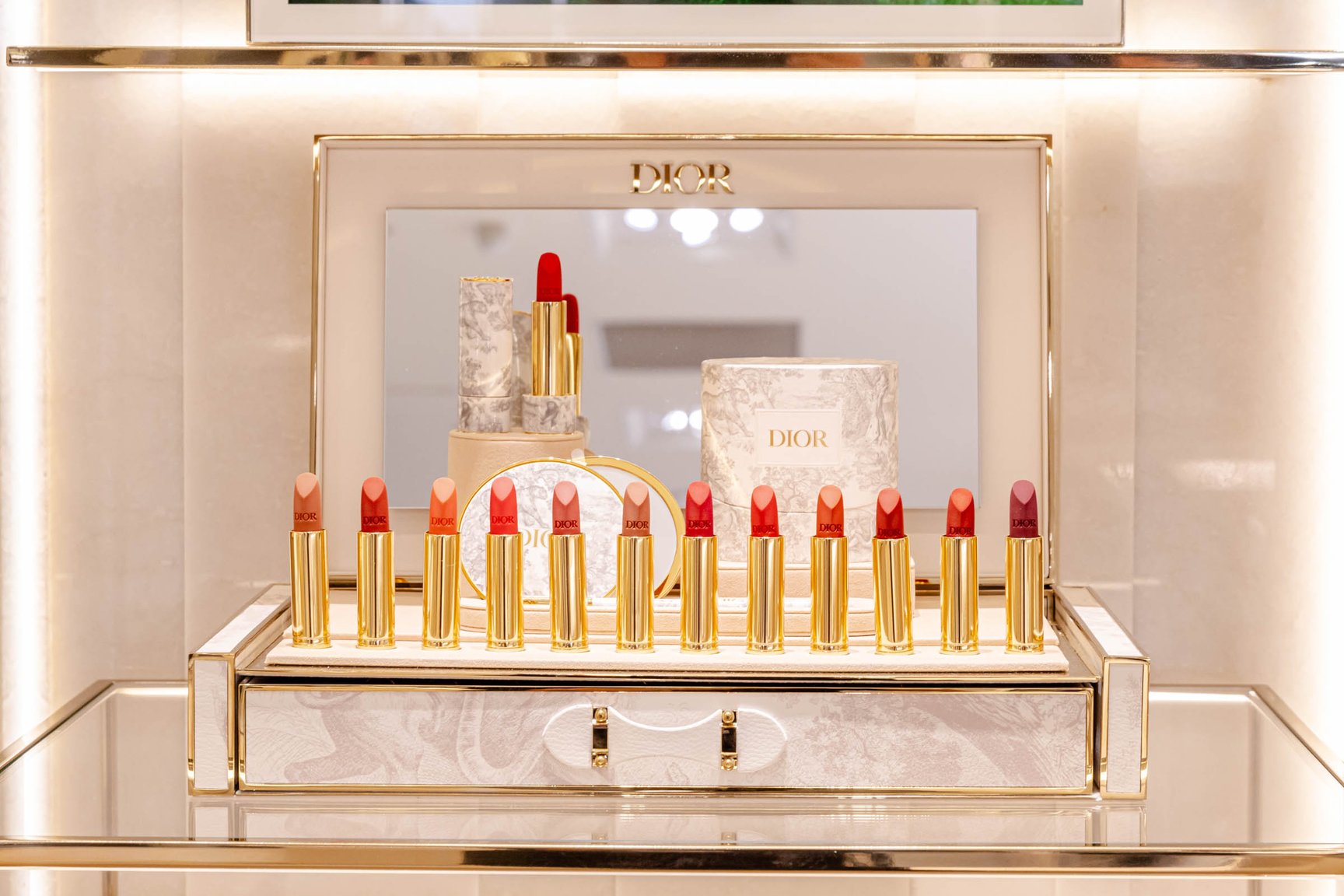 ディオール メイクアップ クリエイティブ&イメージ ディレクターのピーター・フィリップスの色彩に対する専門性とメゾンの革新的な精神を映し出した最新ルックが揃うメイクアップエリア。大きなカウンターや、ディオールの最新ランウェイ ショーを映し出すスクリーンはメゾンの世界観をより視覚的に演出する。ランウェイショーや季節をテーマにしたメイクを施した、グローバル アンバサダーのアニャ・テイラー=ジョイやBLACKPINKのジスなどのヴィジュアルと共に、各ルックを忠実に再現できるリップやアイシャドウ、チーク、マスカラなどを並べたコーナーも。ラグジュアリーなファブリックのチェアを置いたタッチアップスペースや、人気アイテムからシーズンコレクション、限定アイテムなどが一堂に揃うカウンターも必見。