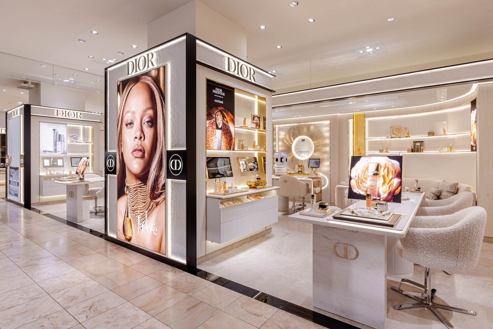 プレミアム スキンケア シリーズ「プレステージ」や、「ディオール カプチュール トータル」、「ディオール スノー」などジェンダーレスにも提案可能な幅広いアイテムを揃えるスキンケアエリア。広々としたラグジュアリーな空間で、先進テクノロジーを活用したカウンセリングを提供し、一人ひとりに合わせたスキンケア ルーティンを届ける。