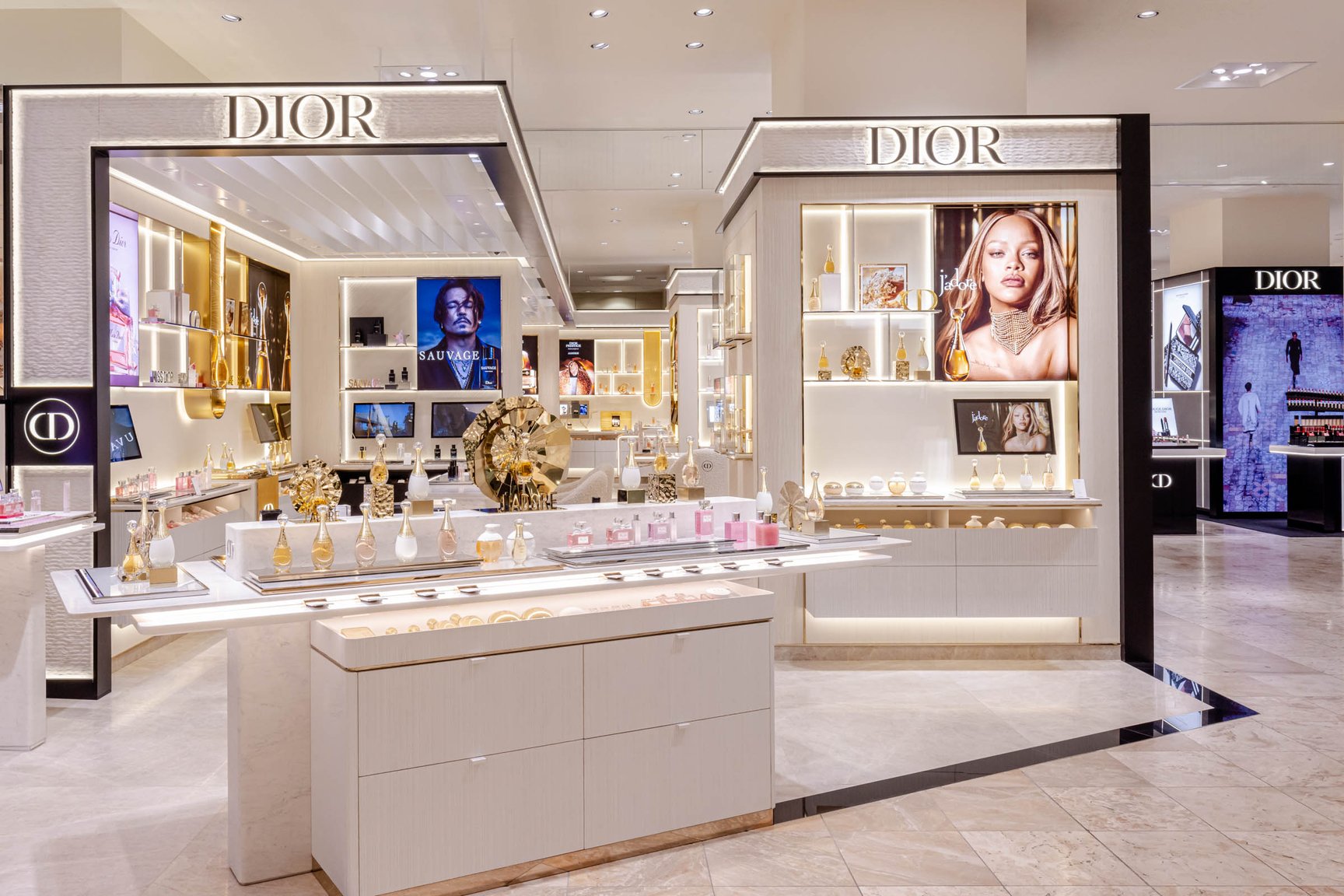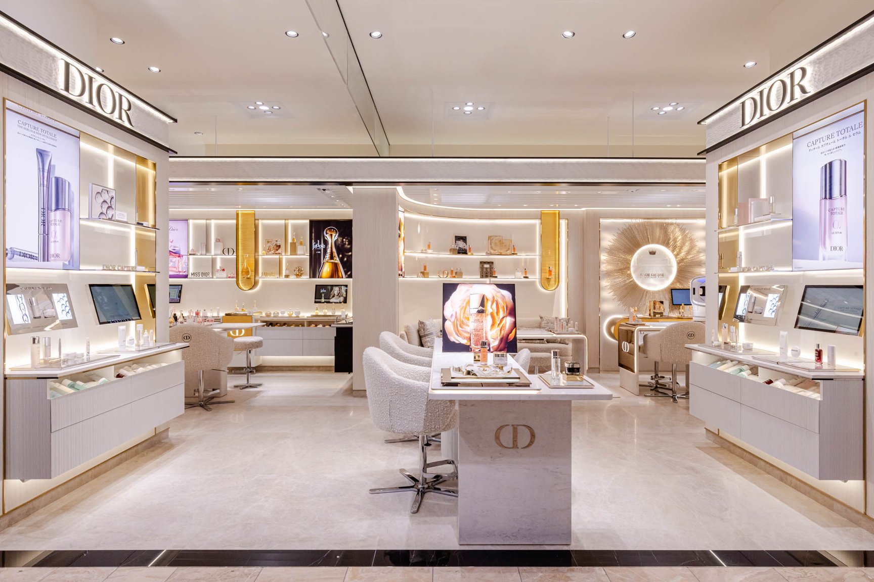 ディオールの最初のコレクションで発表された「ニュールック」をコンセプトに掲げる新店舗は、メゾンの伝説的な場所、パリ モンテーニュ通り30番地に息づく真髄に共鳴した、ラグジュアリーで洗練されたブティック デザインを採用。大理石の高貴さと洗練されたファブリックの繊細さの融合、さらには漆喰とゴールドの輝きが交差する空間は、フレグランスとビューティの世界を際立たせ、ディオールのクチュールエッセンスを映し出している。