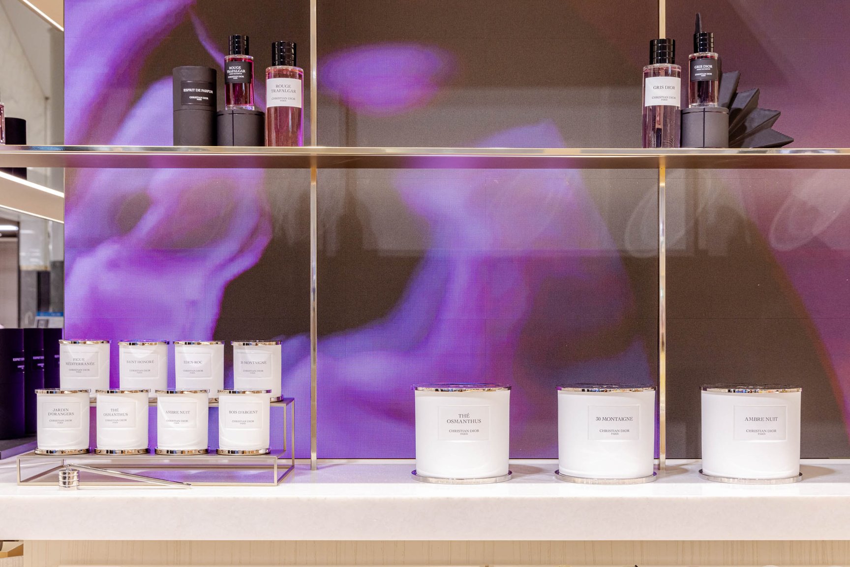 ディオールの歴史、クチュールの世界観、そして卓越したサヴォワールフェールにインスパイアされた新しいブティック コンセプト「ニュールック」を体現する店舗へと進化した「ディオール ビューティー ジェイアール京都伊勢丹」。日本最大規模の広々としたラグジュアリーで温かみのある空間に、「メゾン クリスチャン ディオール」のほか、「ジャドール」や「ミス ディオール」といったフレグランス、最新ルックのメイクアップやスキンケアなども展開する。