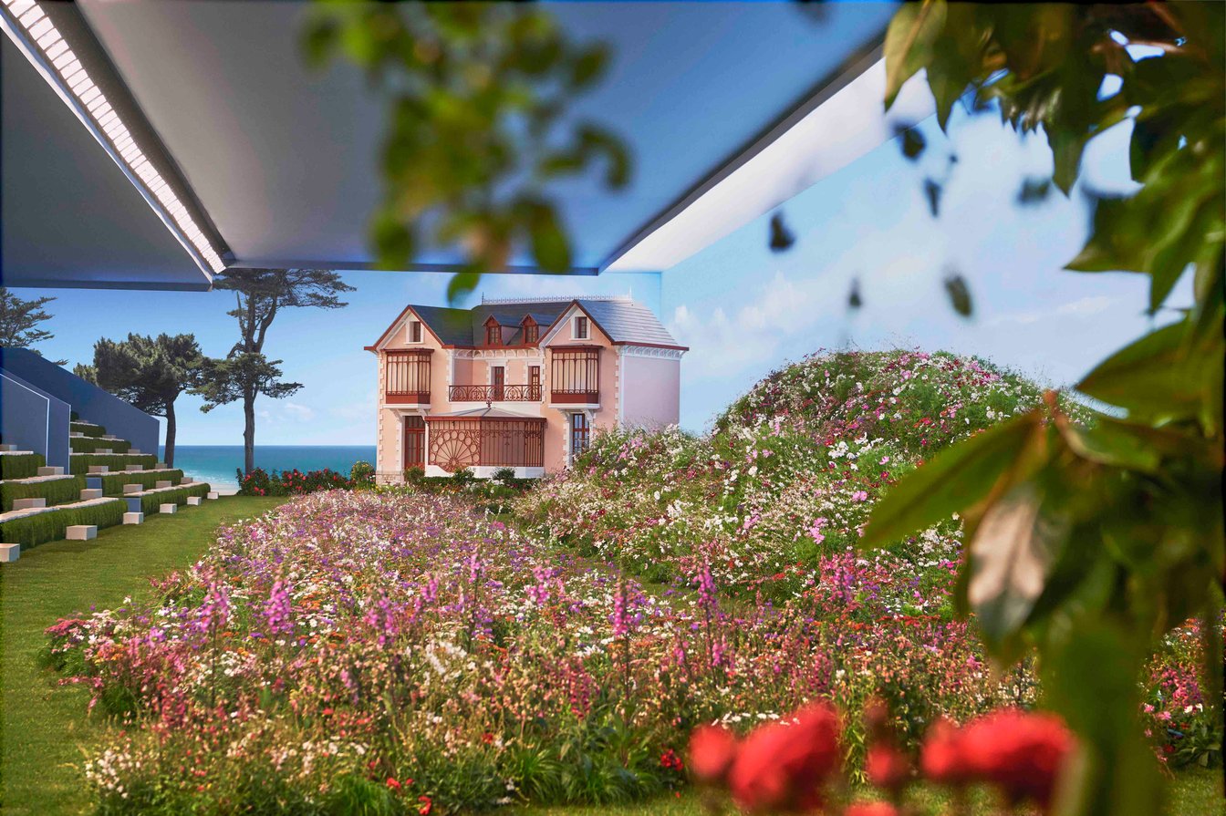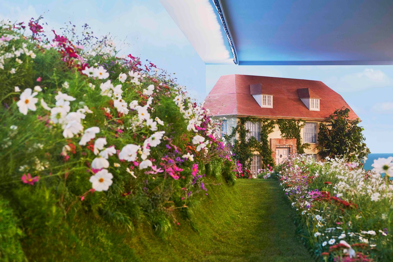 ショーの会場はパリ5区、リュクサンブール公園の近くに位置するヴァル・ド・グラース王立修道院。特設の会場内にはフラワーガーデンのセットが設置され、奥には海のイメージが広がっている。モデルたちは舞台上にある2つの家を行き来し、グランヴィルとチャールストン ファームハウスとの時空を超えた繋がりを表現した。