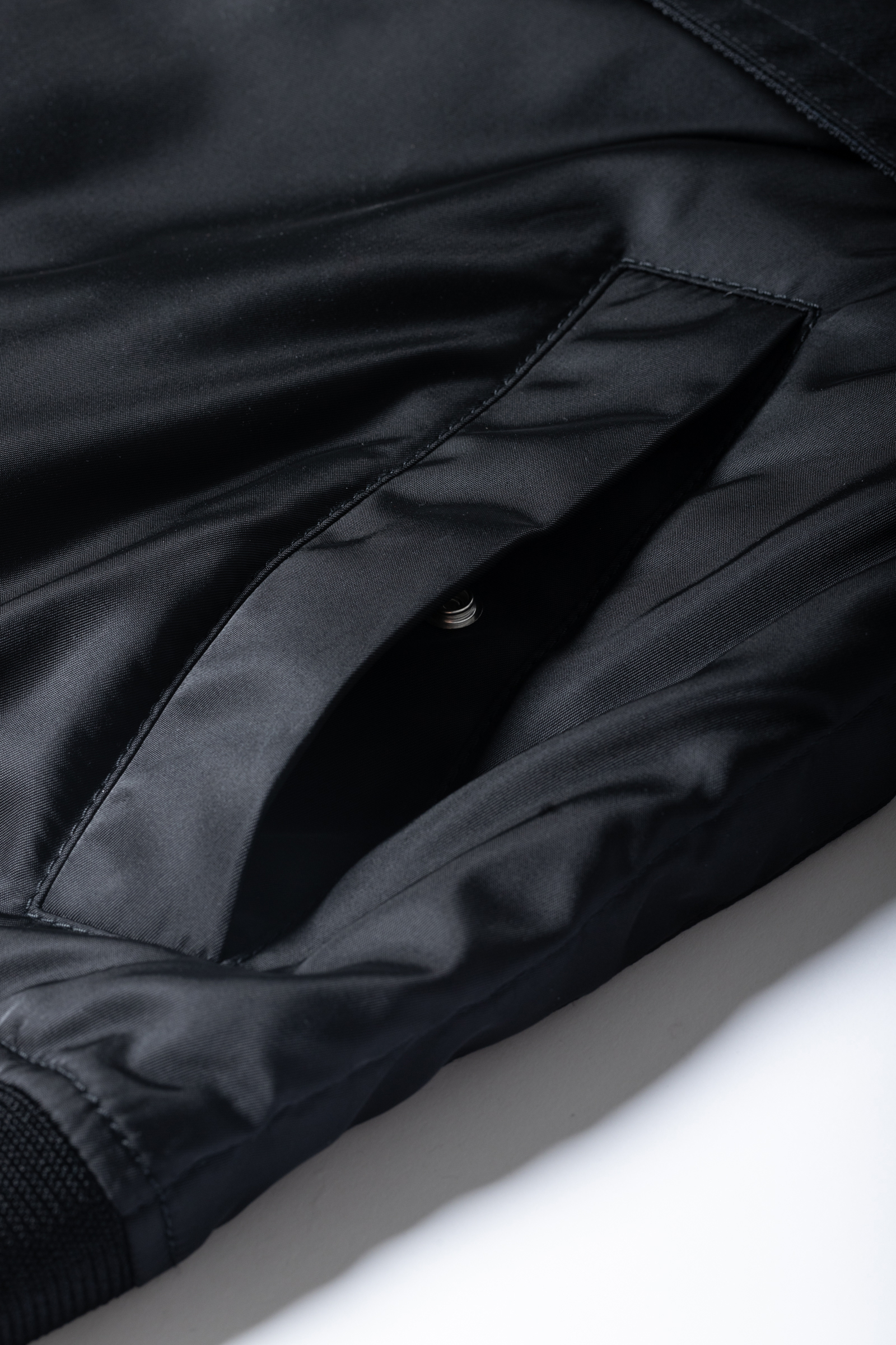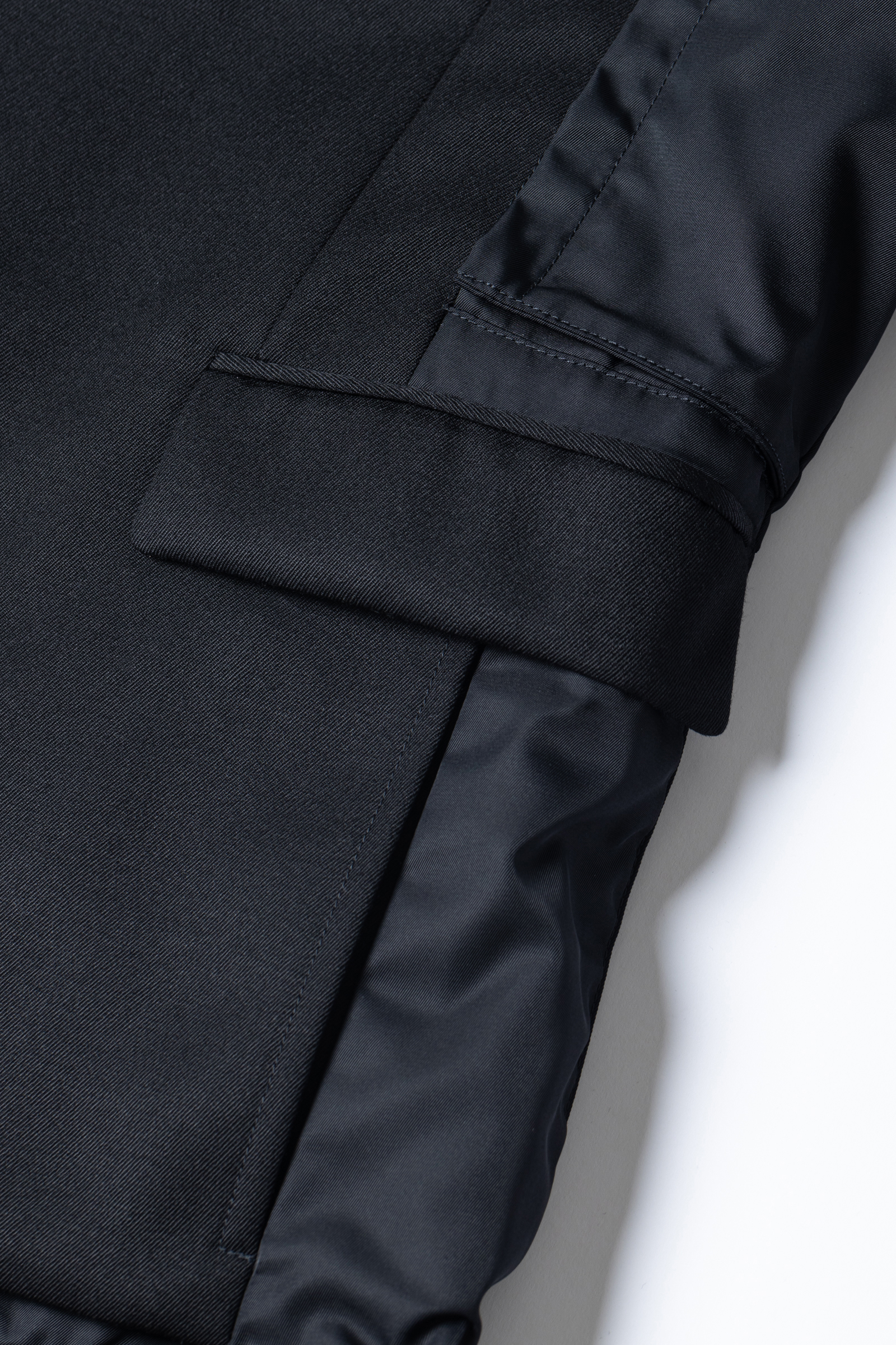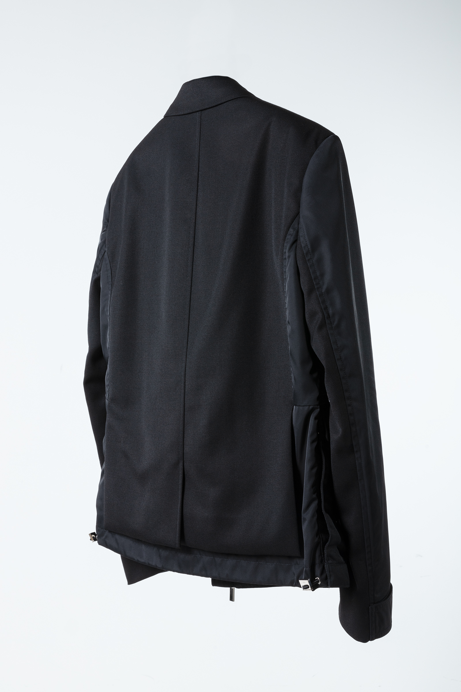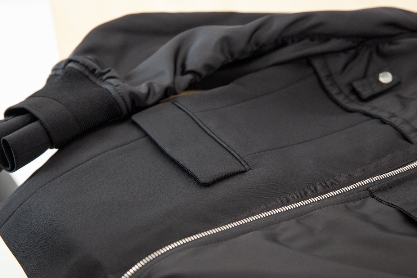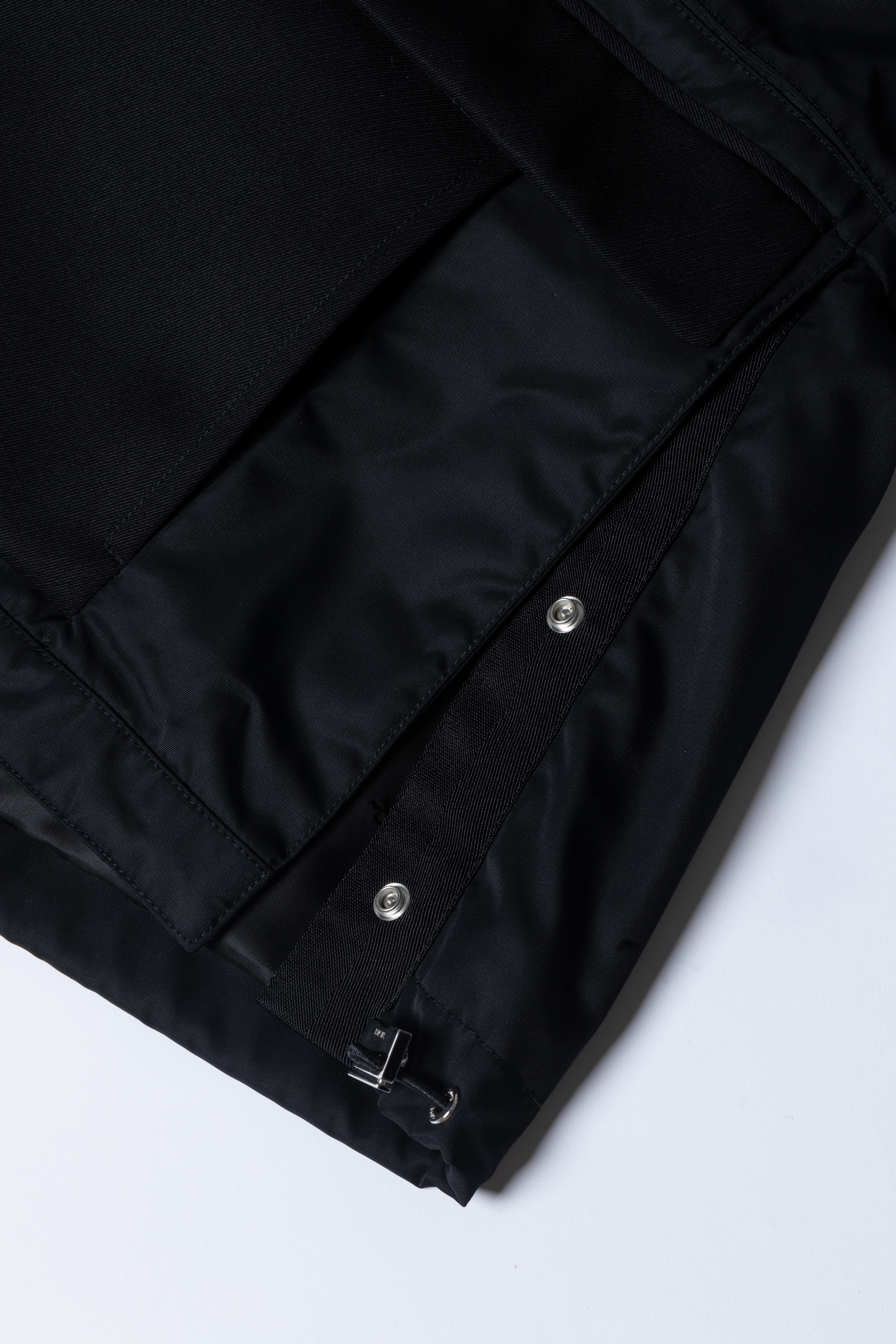 編集K:腕の外側と内側のパーツで素材を変えていたり、脇のパネルラインにポケットが仕込まれていたり。そしてこちらも、サイドを開閉できるスナップボタンと裾のドローコードでシルエットが変えられます。