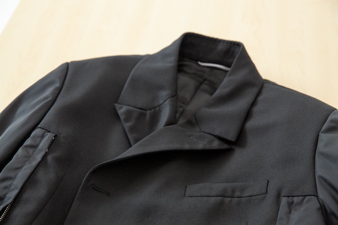 編集K:フォーマルとカジュアルの程よいバランス。公式のヴィジュアルではセットアップで着用していて、右側の襟だけ立てている着方にもサカイのムードが感じられました。